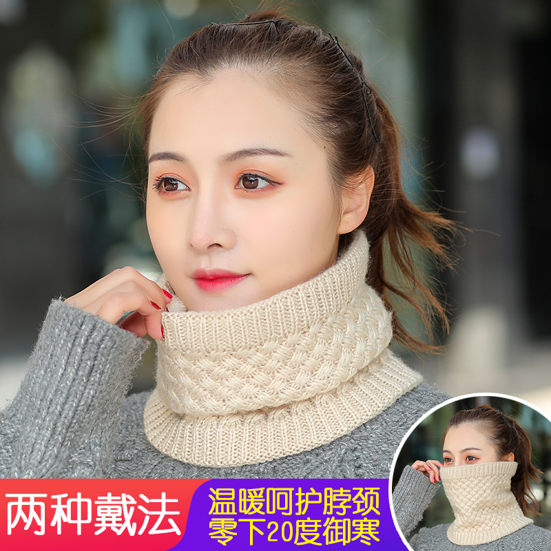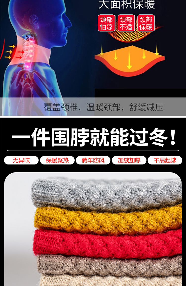Шарф-платок, зимний цветной универсальный комплект, удерживающий тепло трикотажный шерстяной утепленный шарф, с защитой шеи