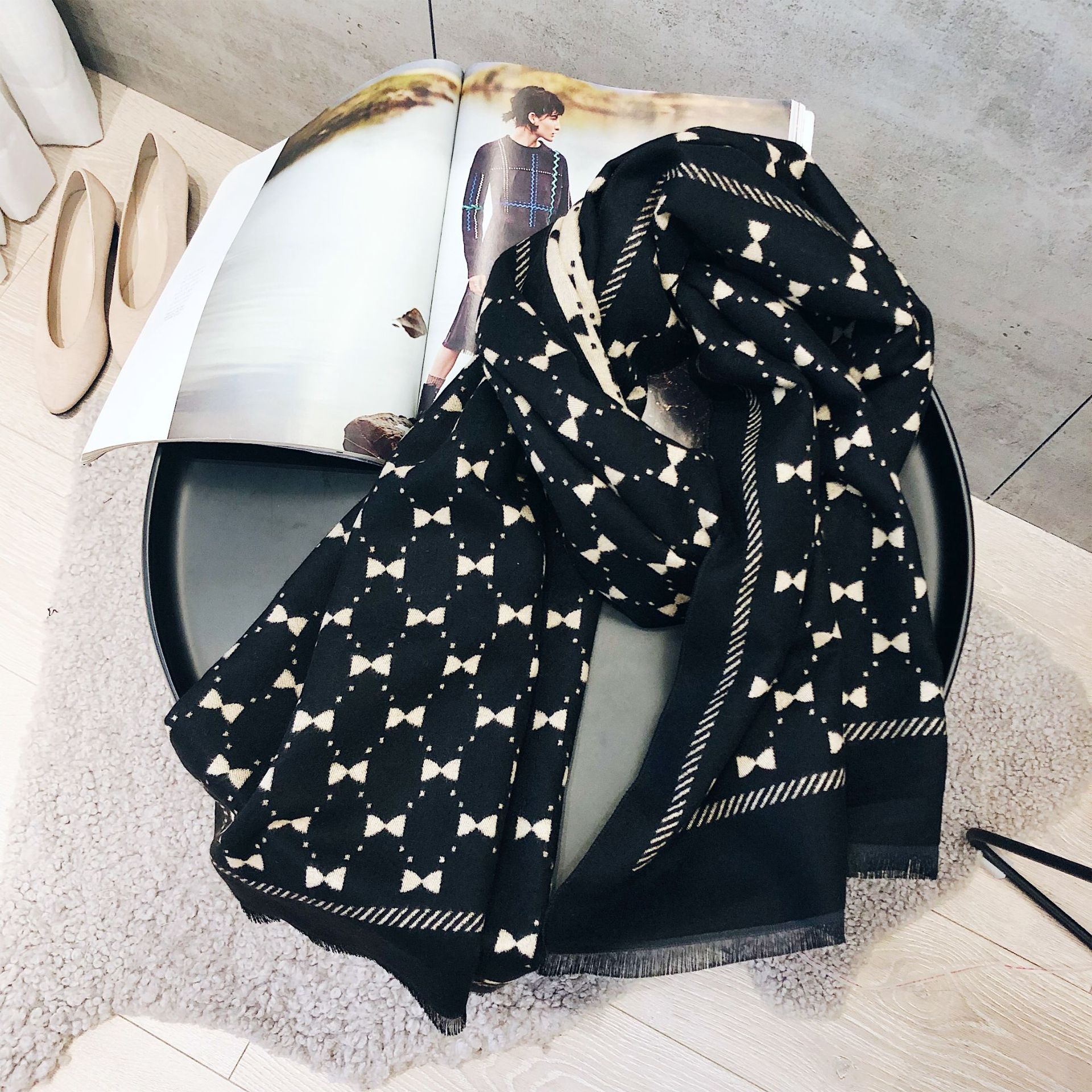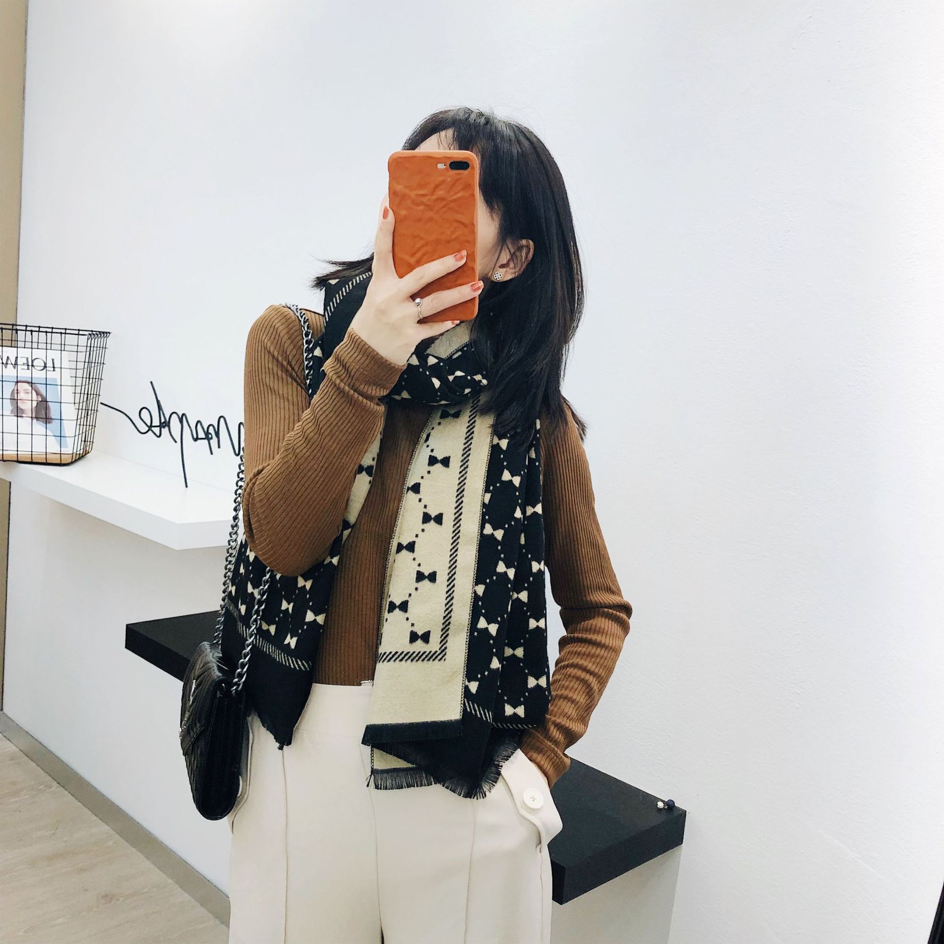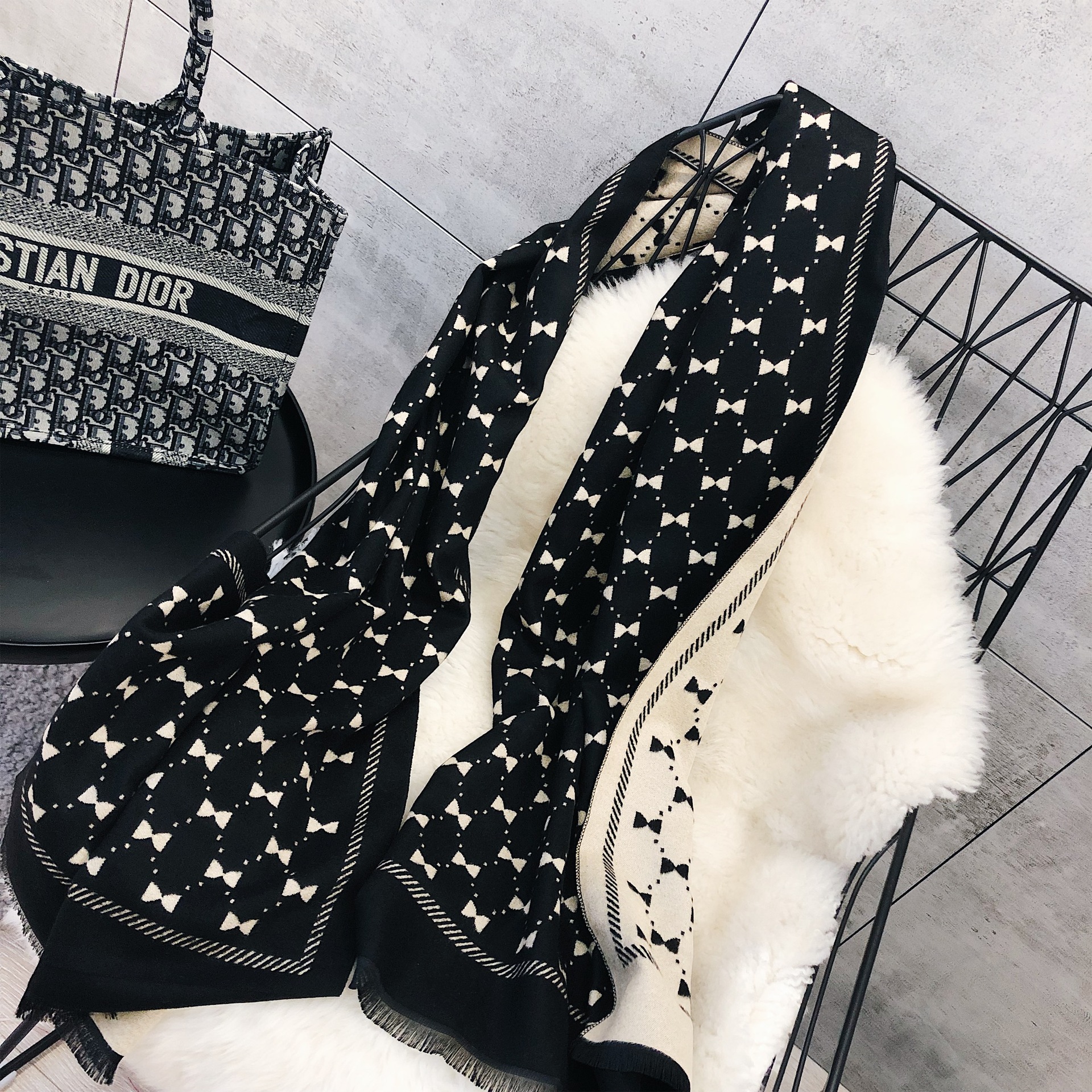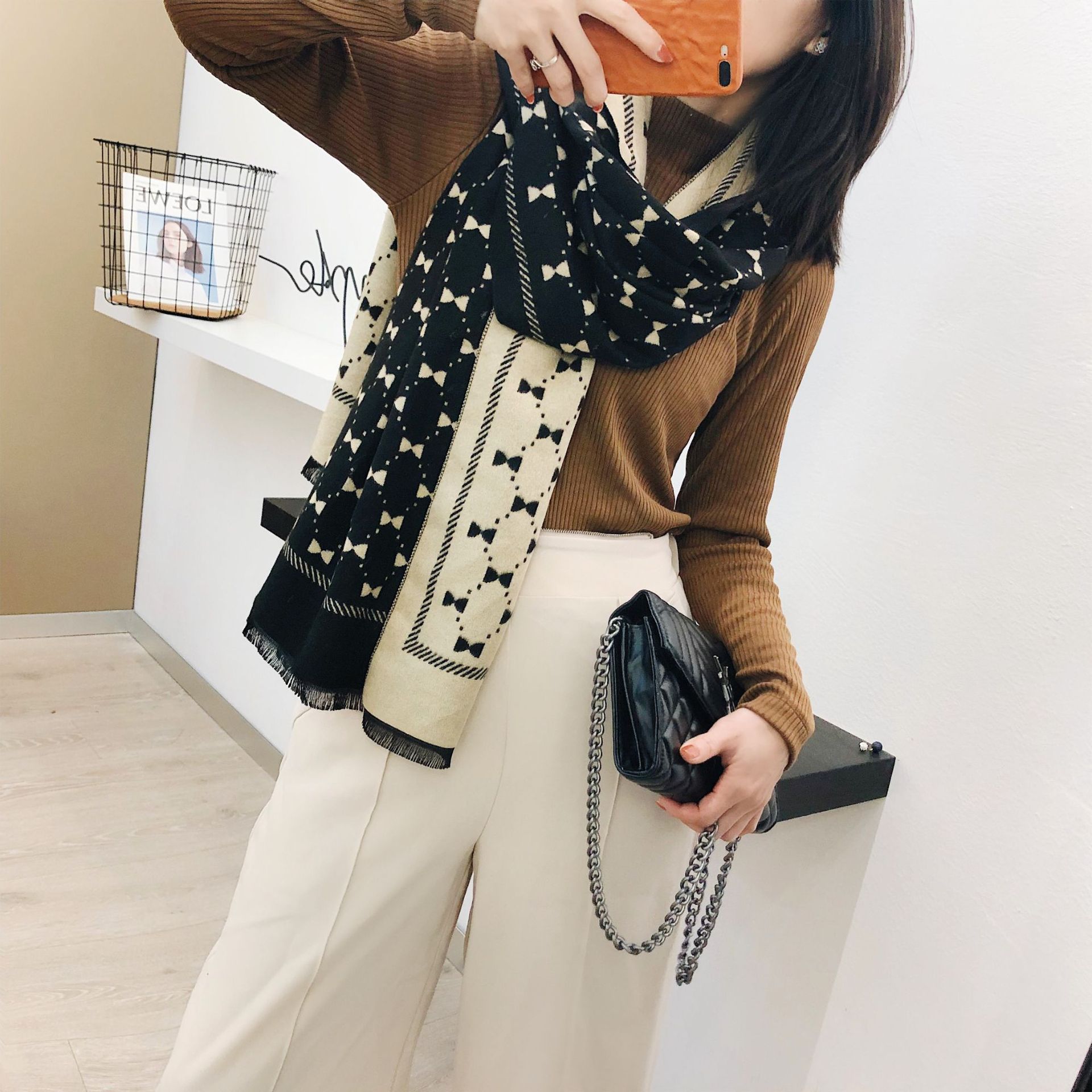 Двусторонний демисезонный модный универсальный летний удерживающий тепло шарф с бантиком из искусственного меха, в корейском стиле