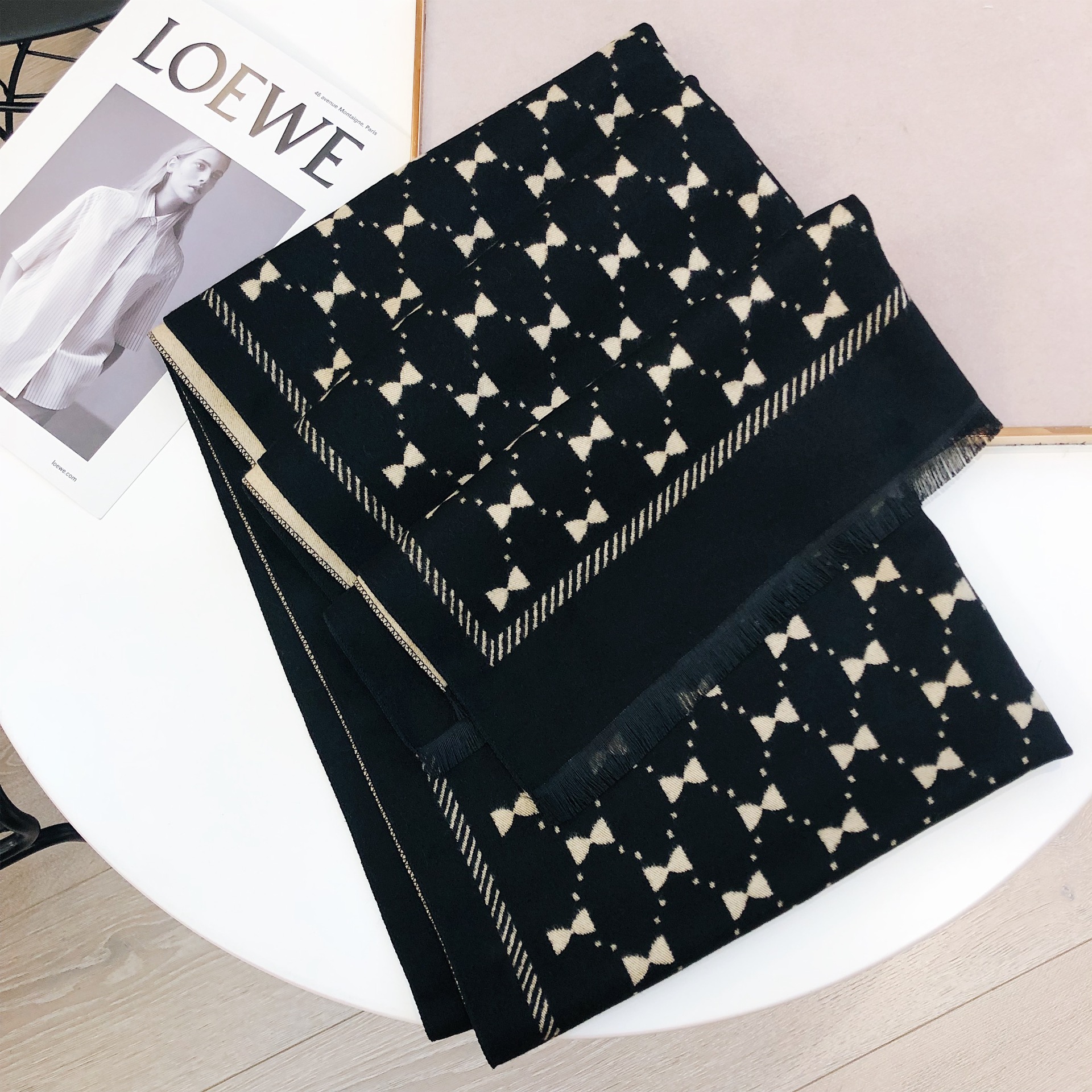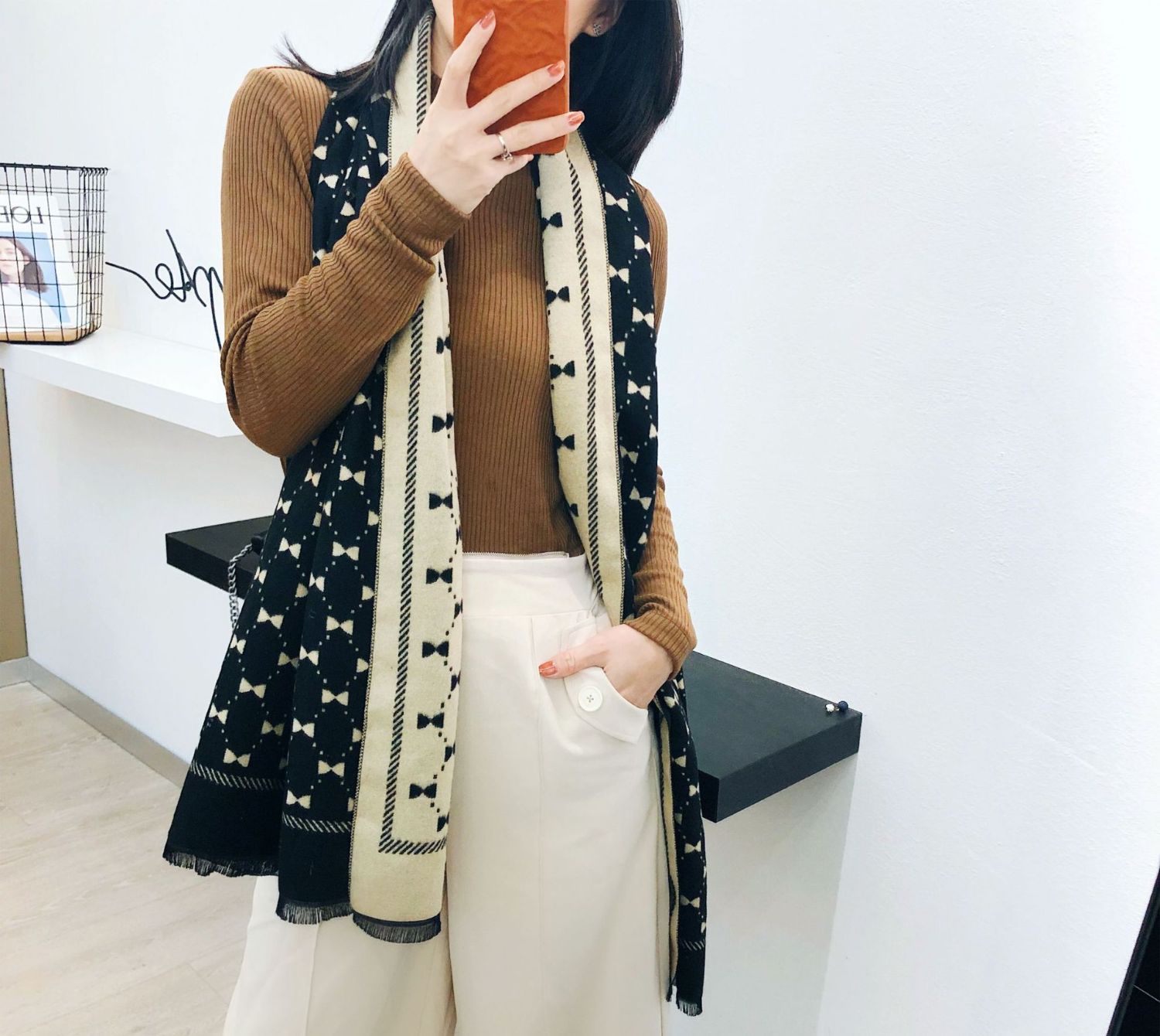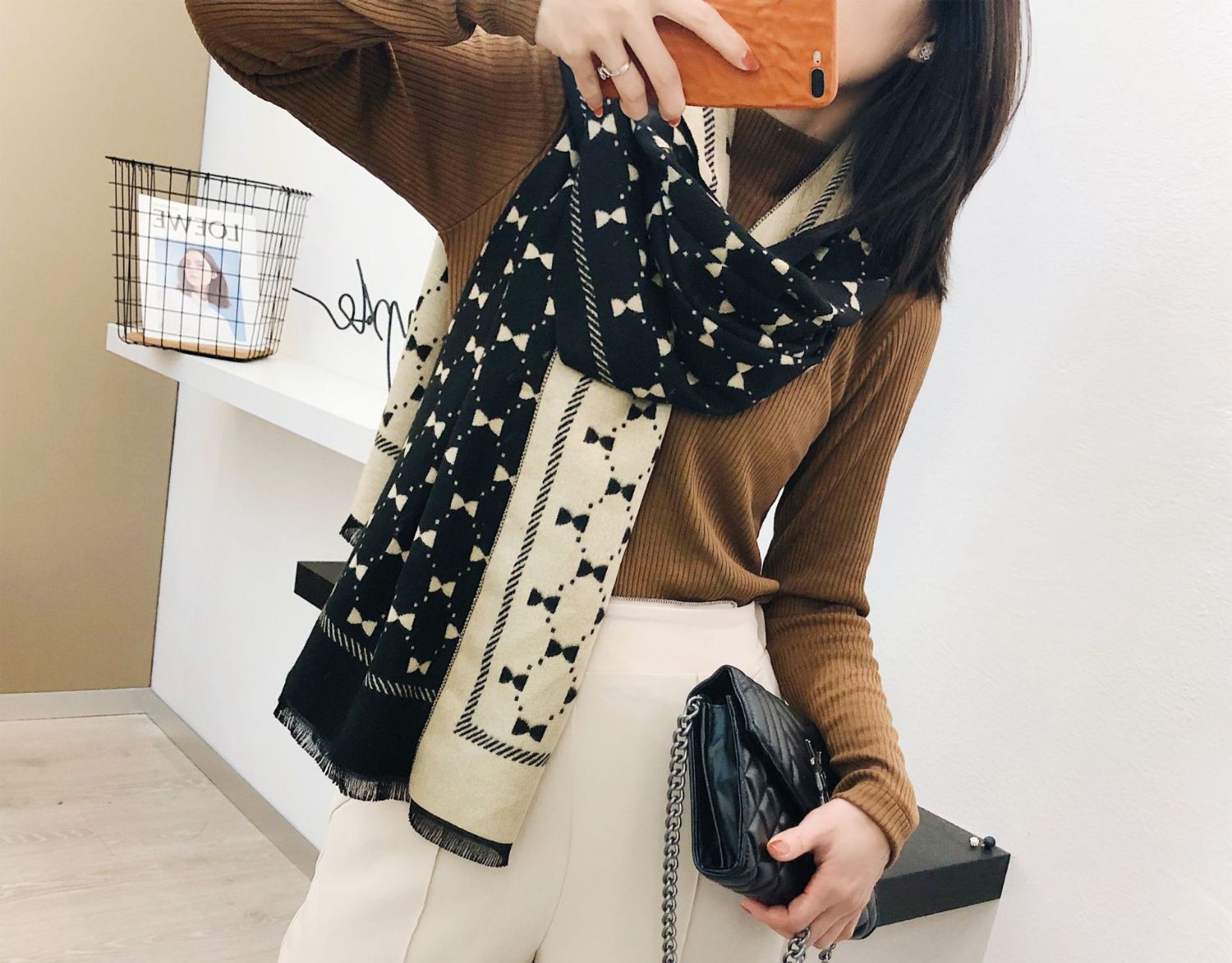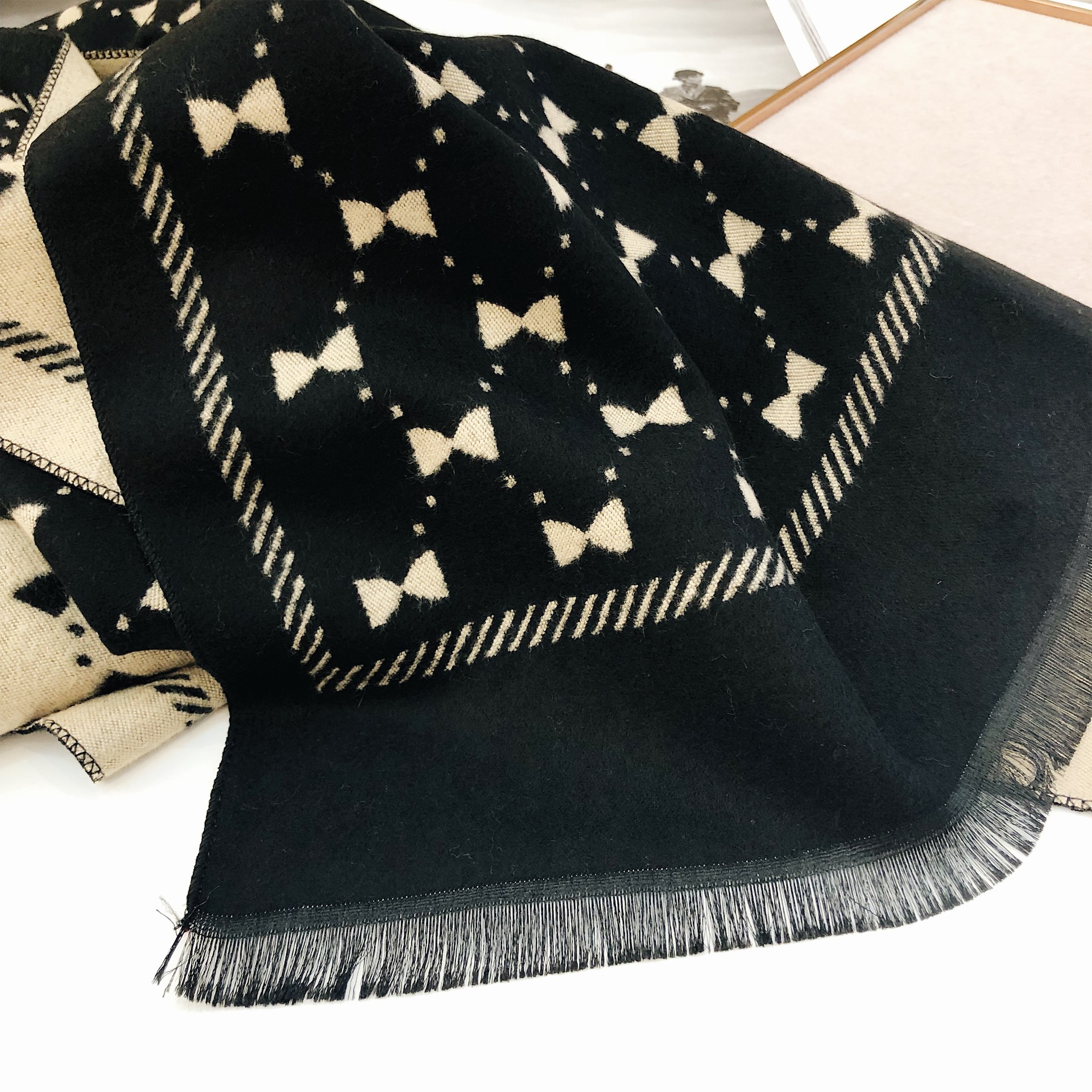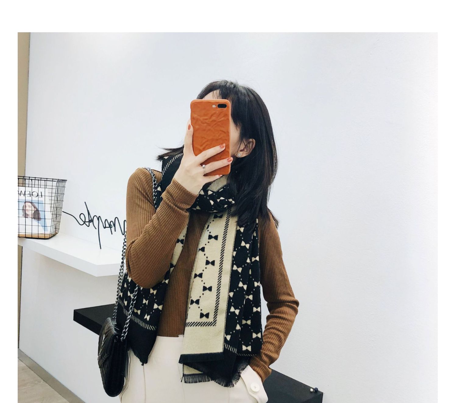Двусторонний демисезонный модный универсальный летний удерживающий тепло шарф с бантиком из искусственного меха, в корейском стиле