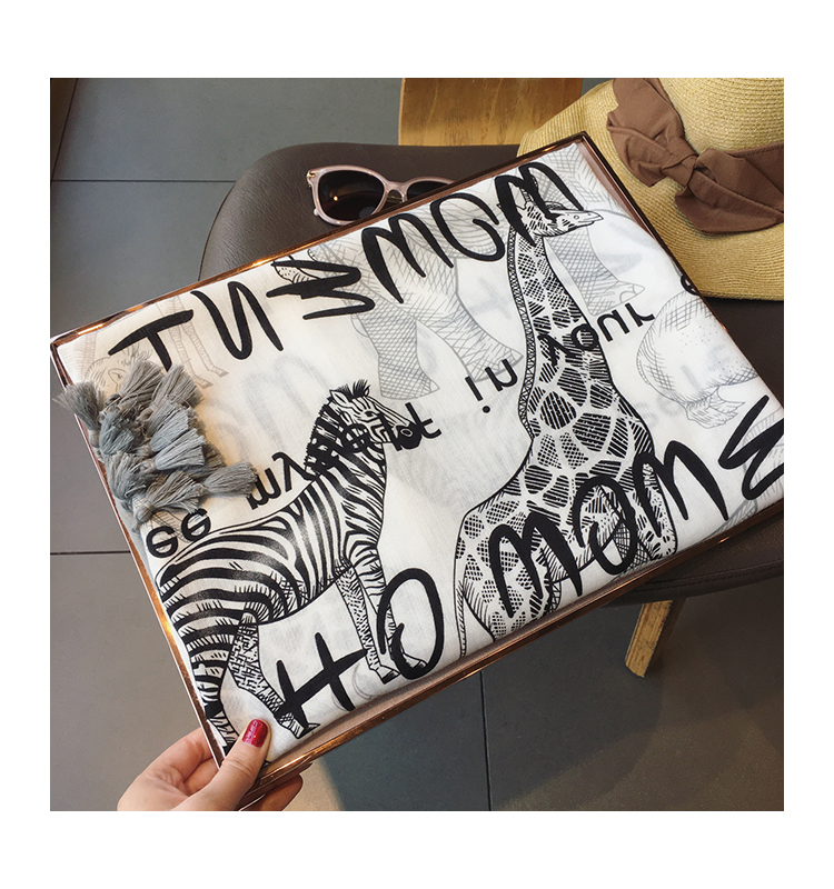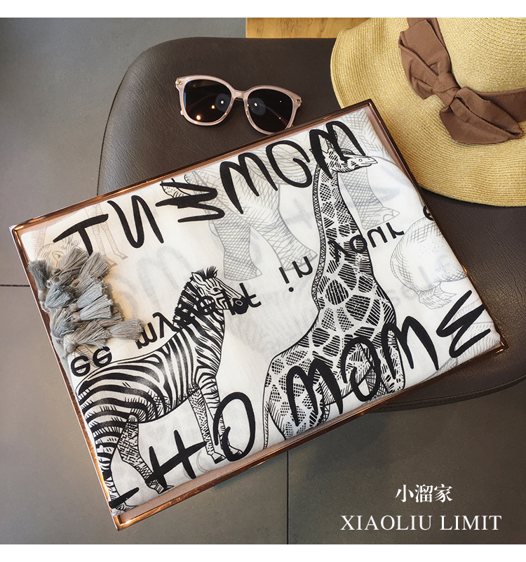 Демисезонная универсальная зебра, пляжная накидка, шарф, в корейском стиле, жираф, защита от солнца, из хлопка и льна