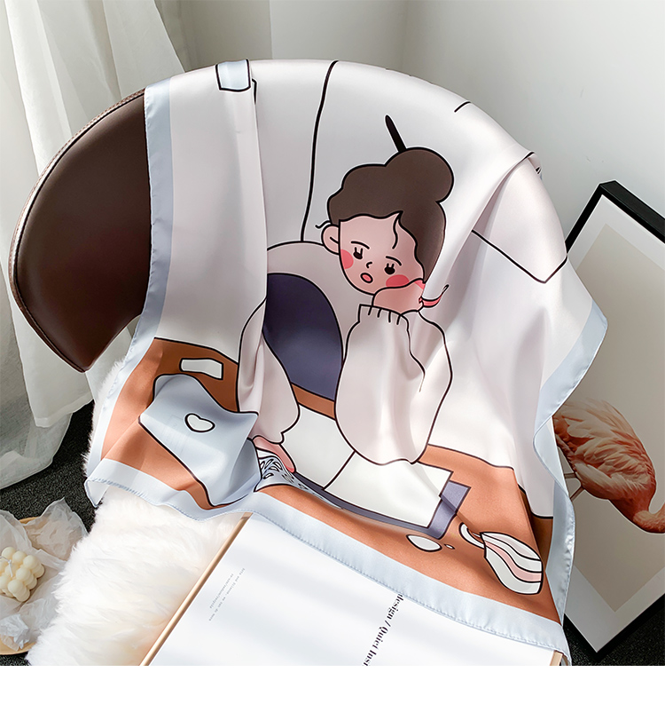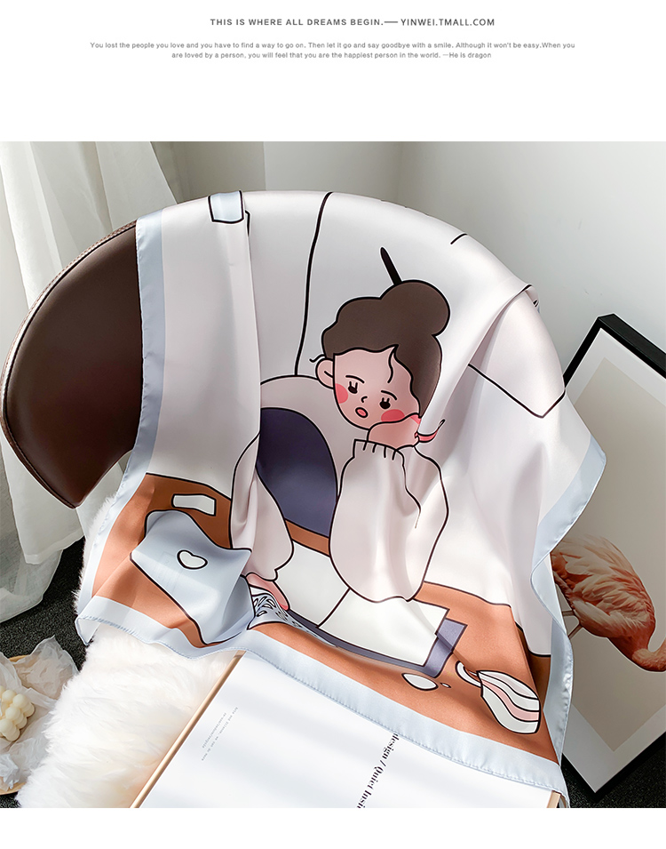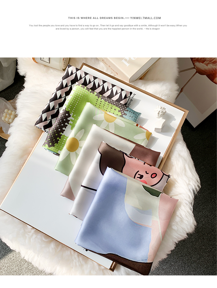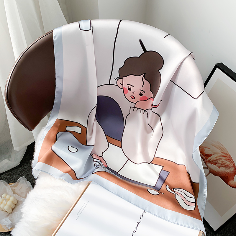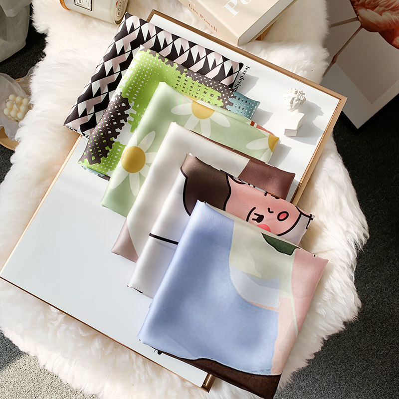 Мультяшный милый носовой платок, универсальное шелковое украшение для ногтей, шейный платок, Южная Корея, новая коллекция, осенний