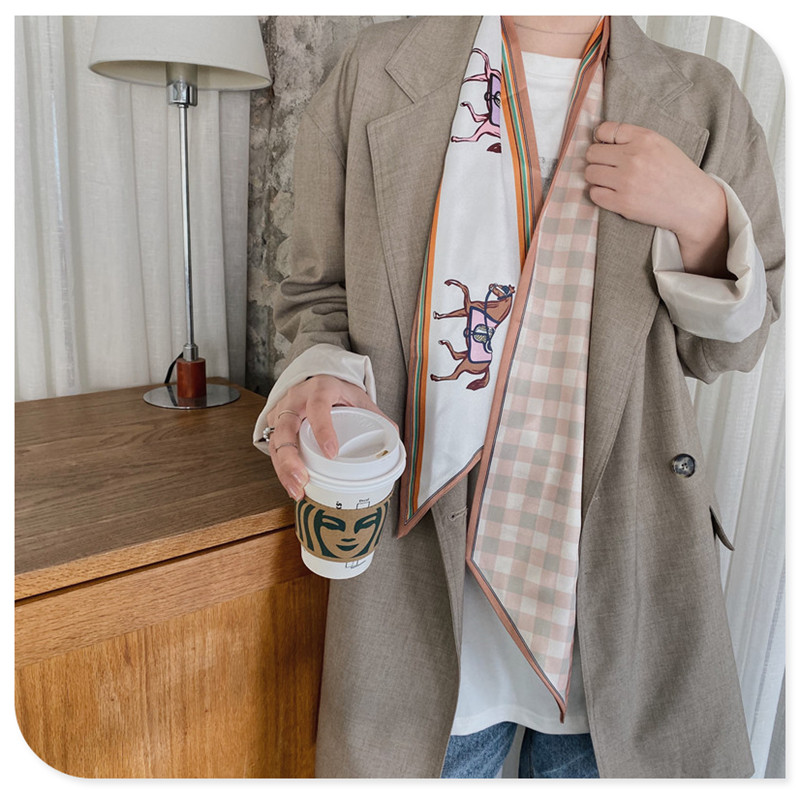 Двусторонний ретро универсальный шейный платок, брендовый дизайнерский ремень, шарф, в корейском стиле