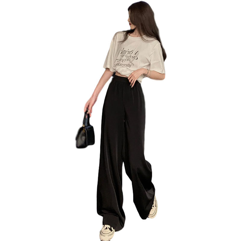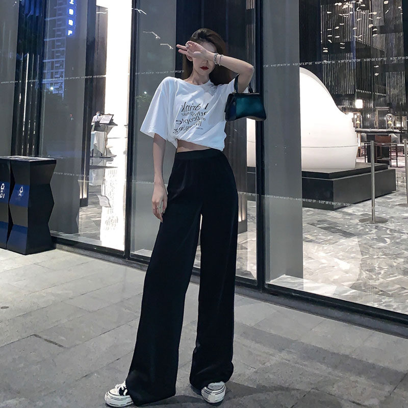 Летние штаны, брендовый черный костюм для отдыха, большой размер, высокая талия, свободный прямой крой