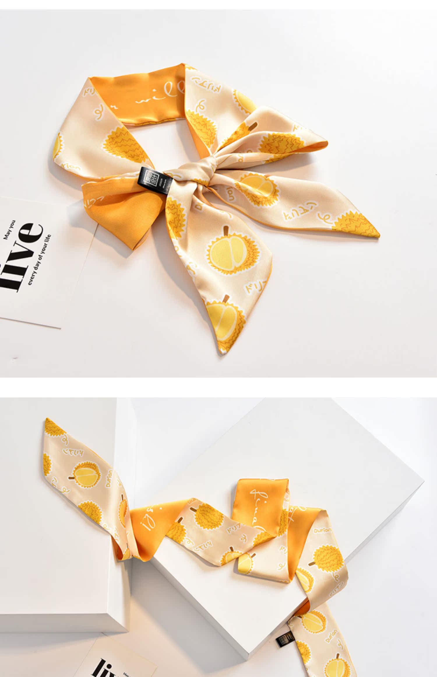 Оригинальный свежий желтый универсальный летний шейный платок, шарф, ручная роспись