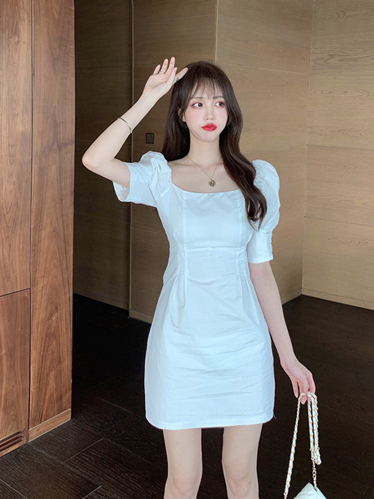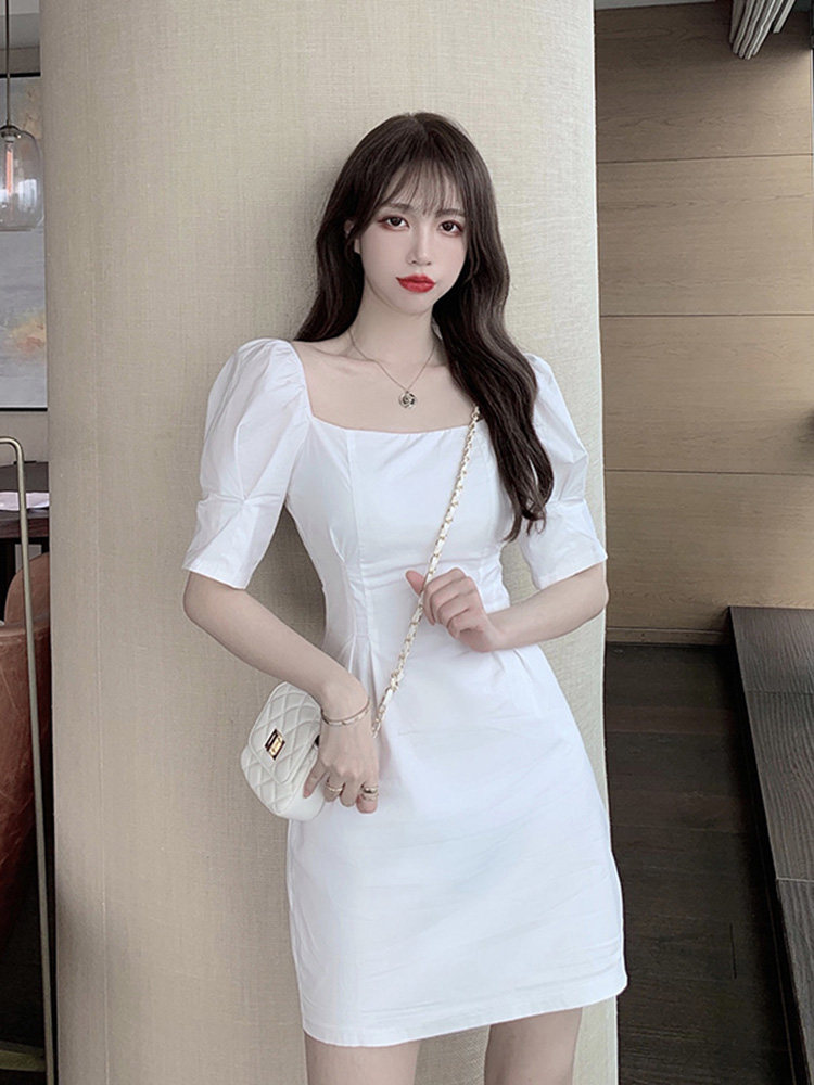 Белая женская юбка, ретро белое платье, яркий броский стиль, французский стиль