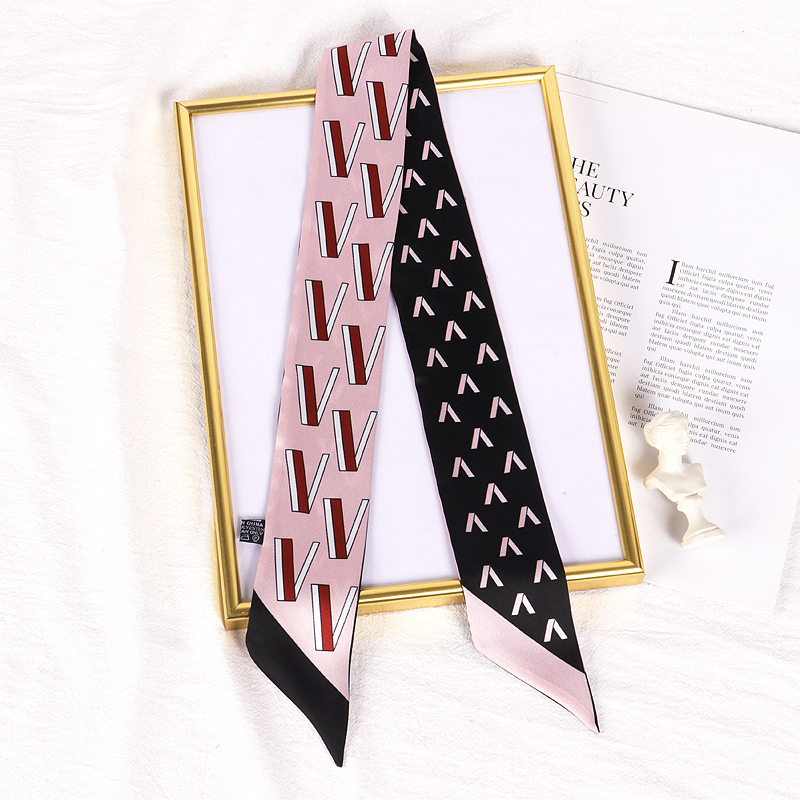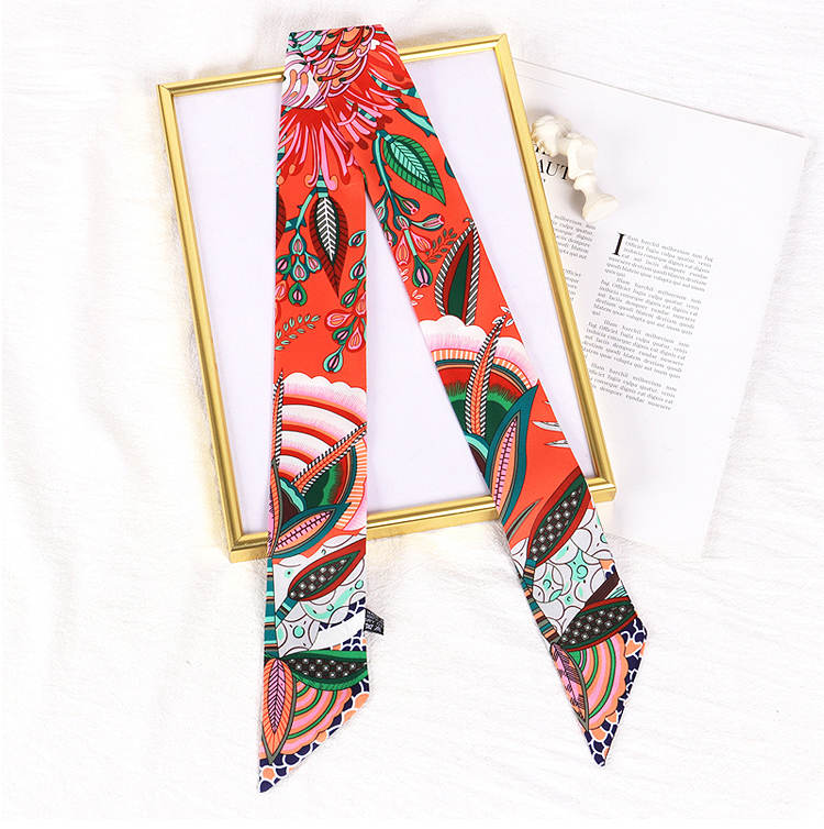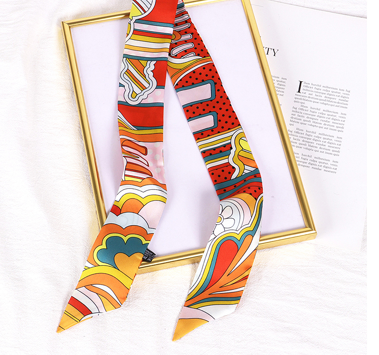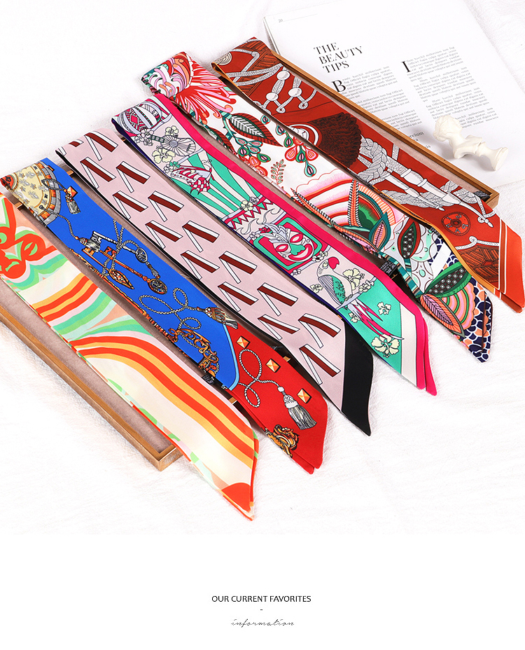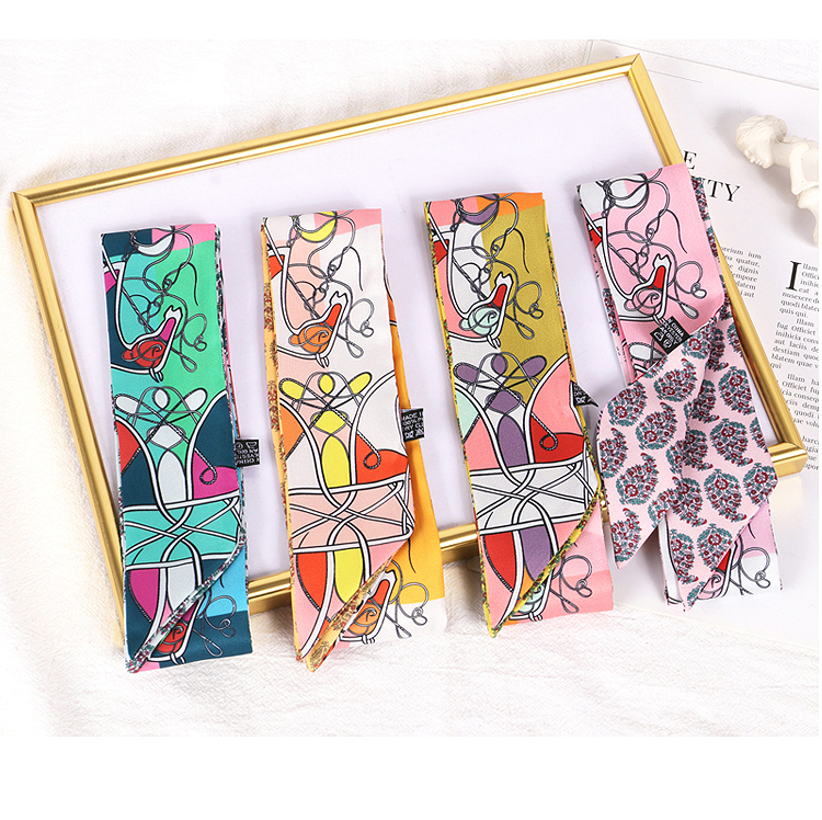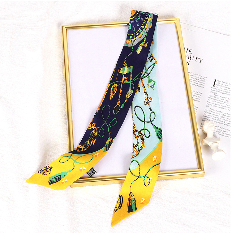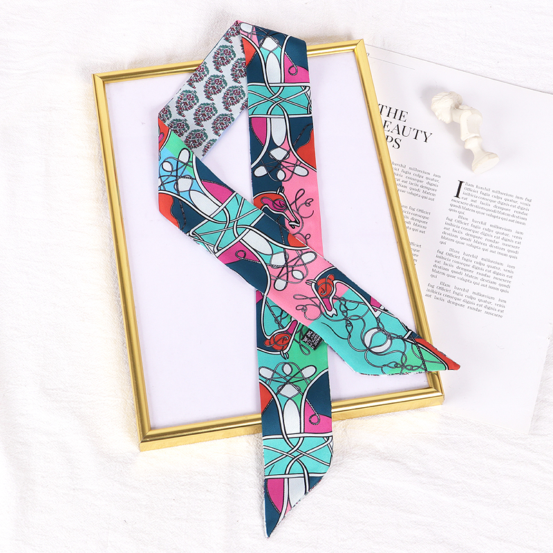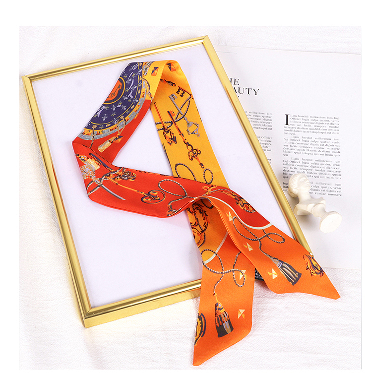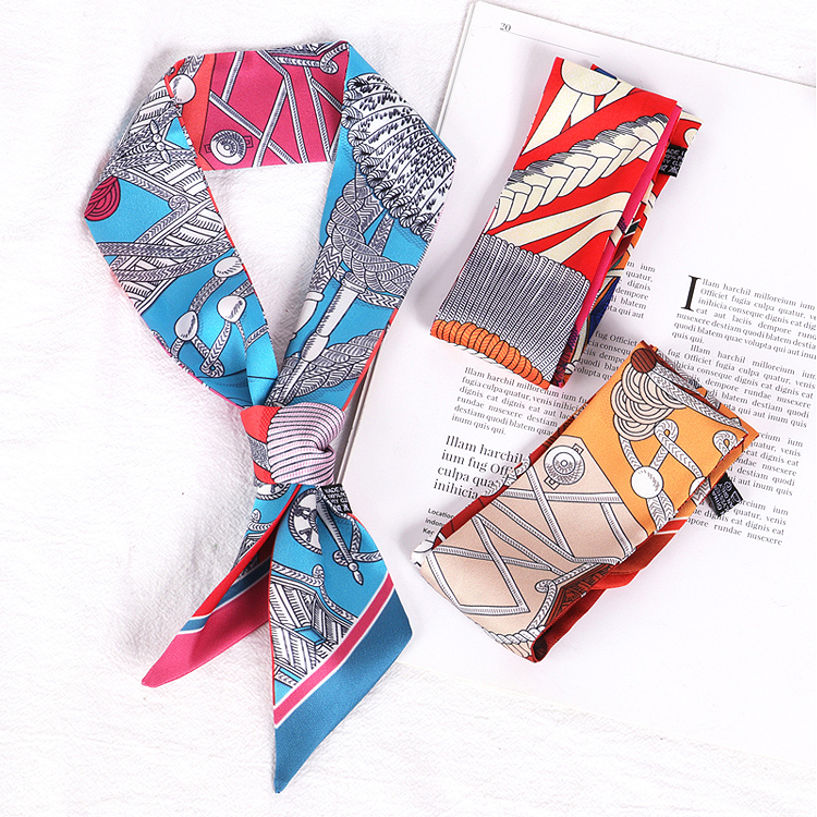 Весенне-осенний шелковый шарф, небольшой длинный европейский и американский многоцелевой шарф, сумка, пояс, повязка на голову, декоративная лента, тонкий шарф