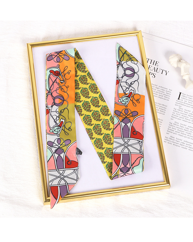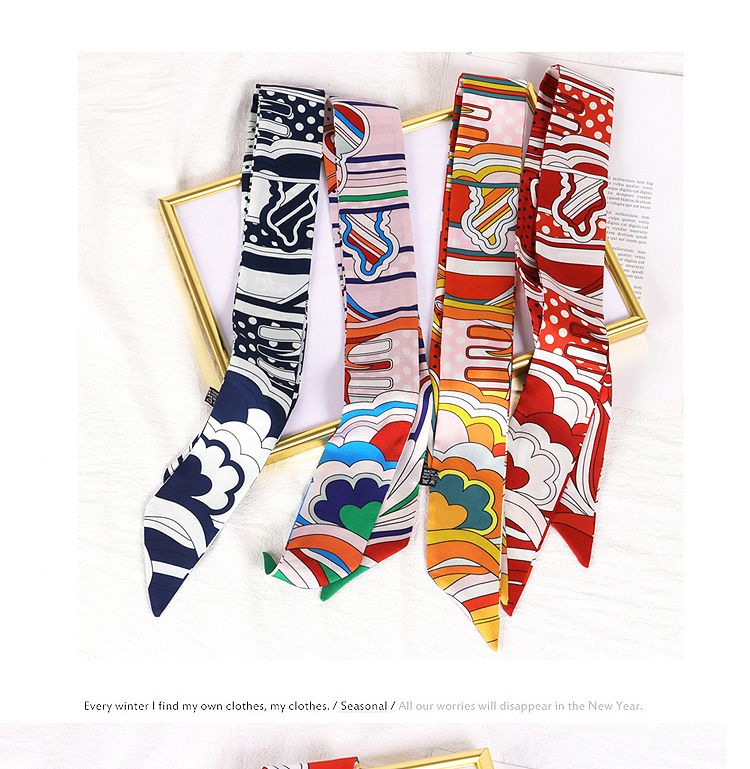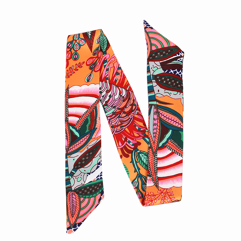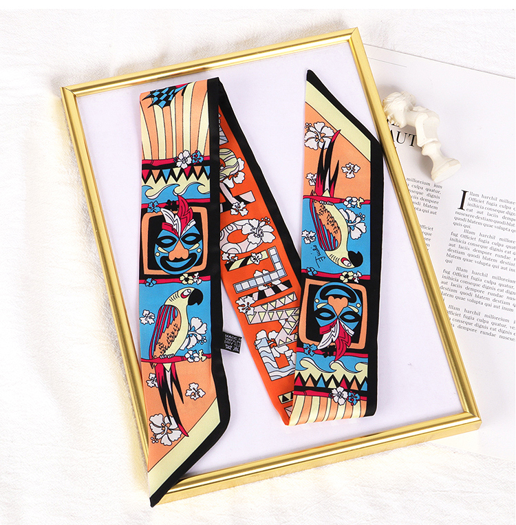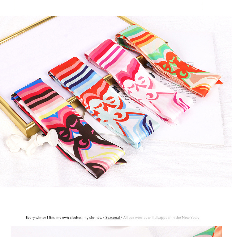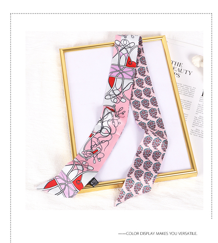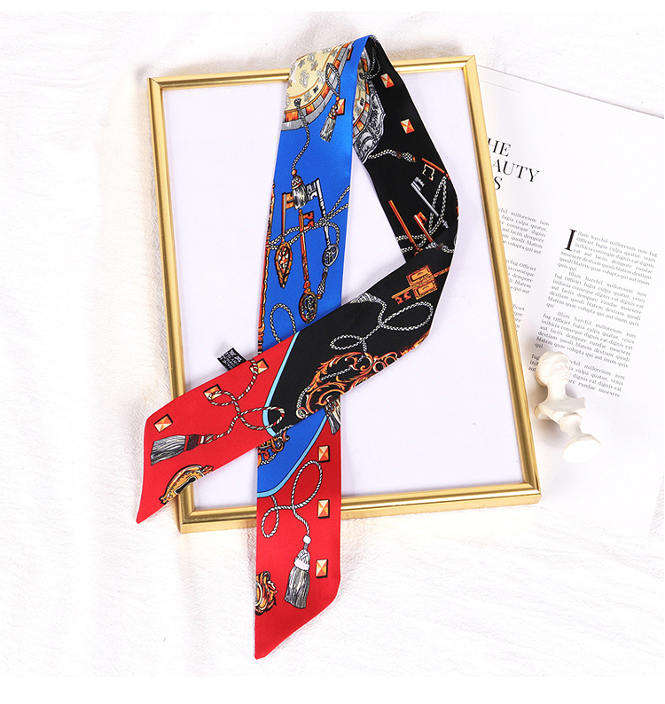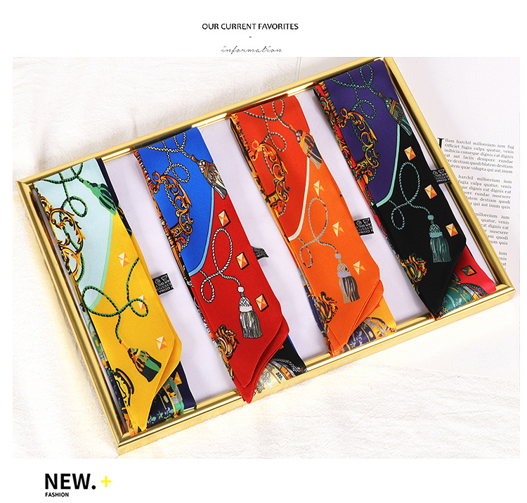 Весенне-осенний шелковый шарф, небольшой длинный европейский и американский многоцелевой шарф, сумка, пояс, повязка на голову, декоративная лента, тонкий шарф