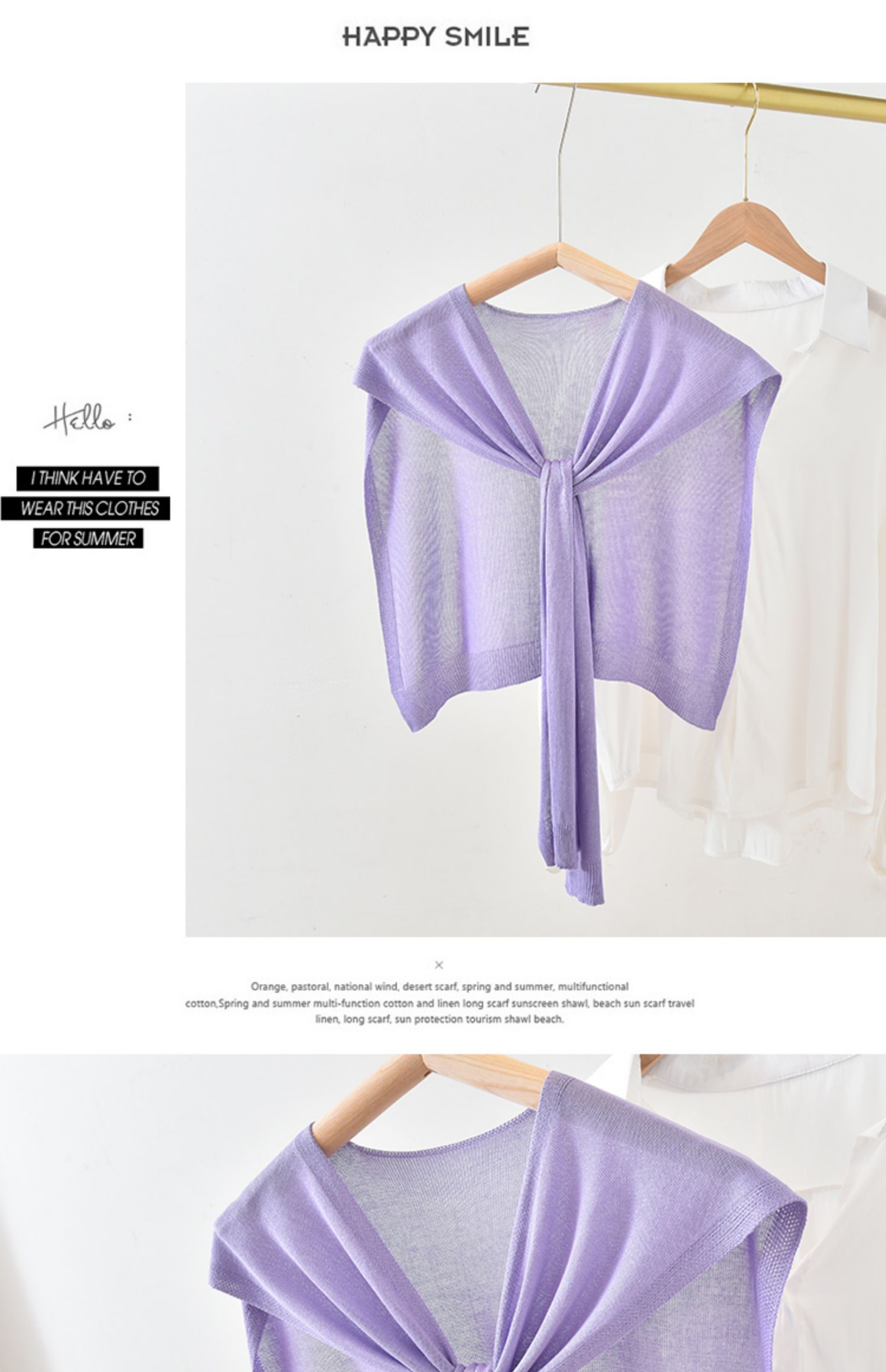 Летняя трикотажная универсальная короткая накидка, фальшивый воротник