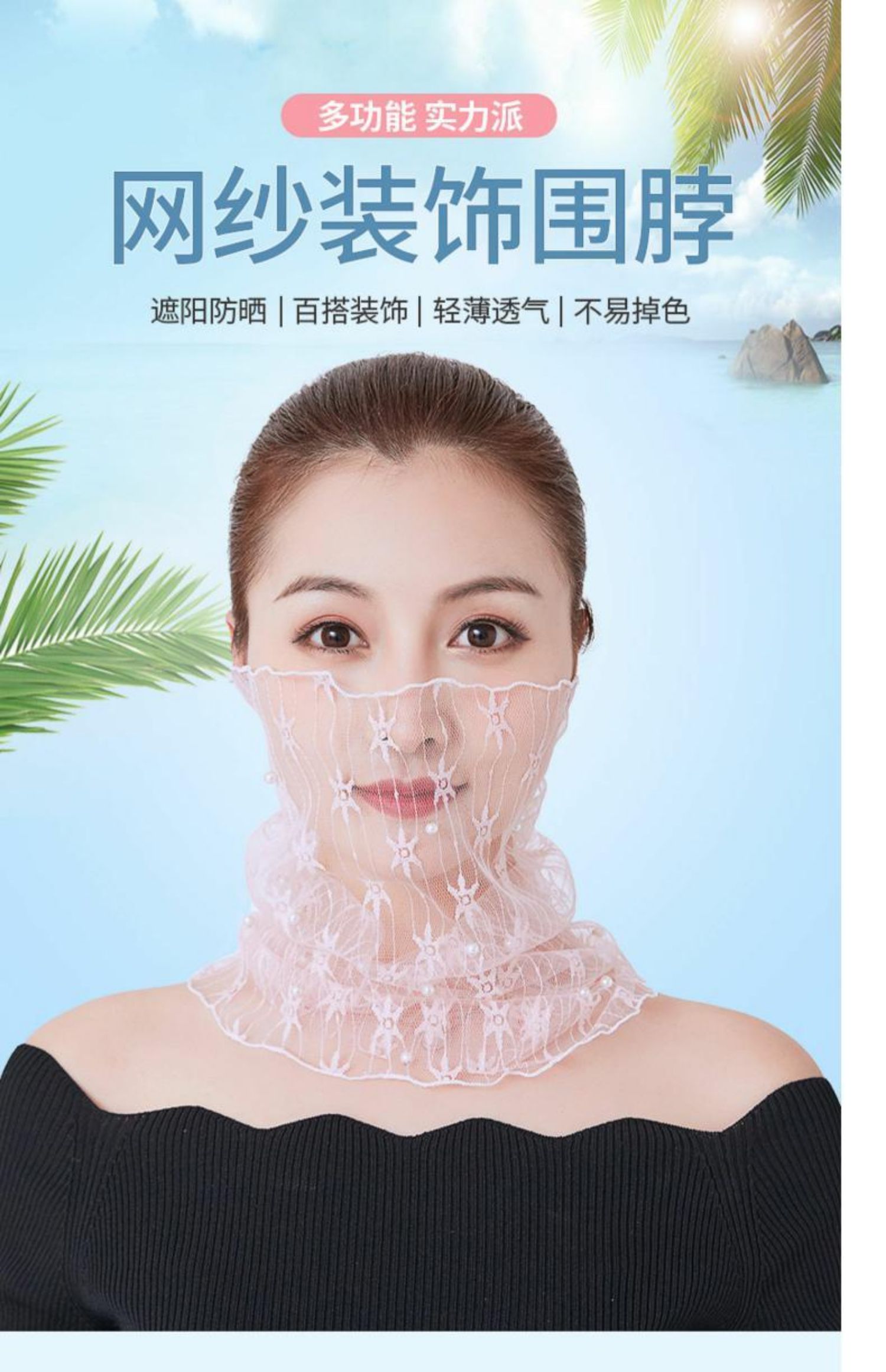 Кружевной шарф-платок, тонкий шарф, летняя вуаль, с защитой шеи, защита от солнца