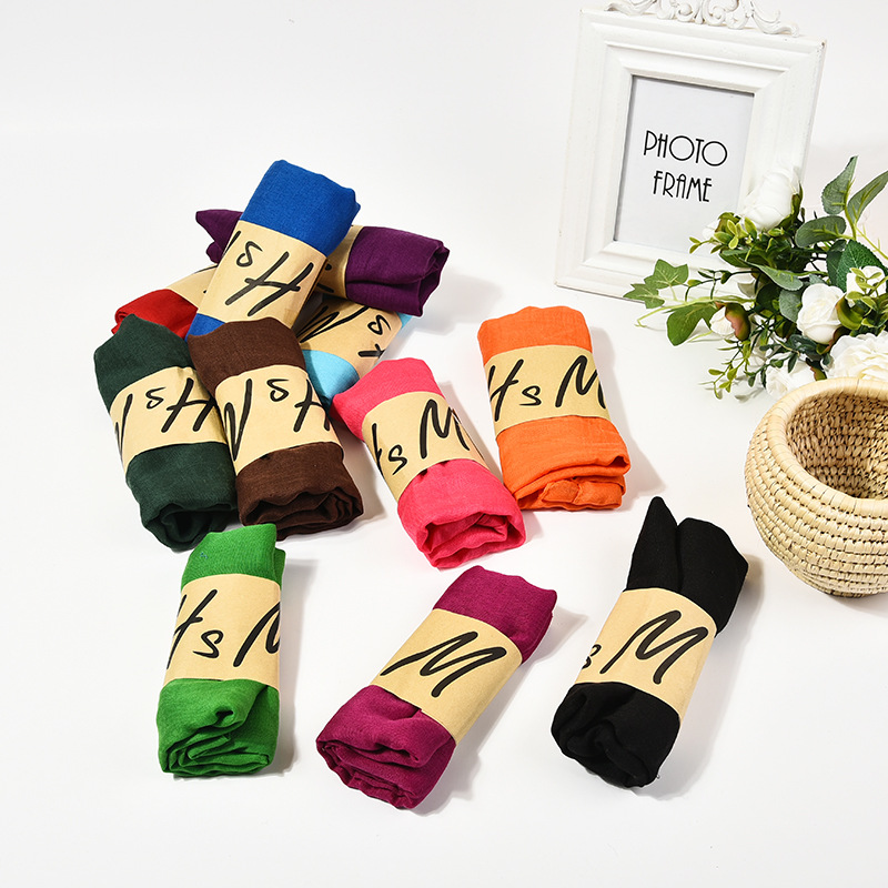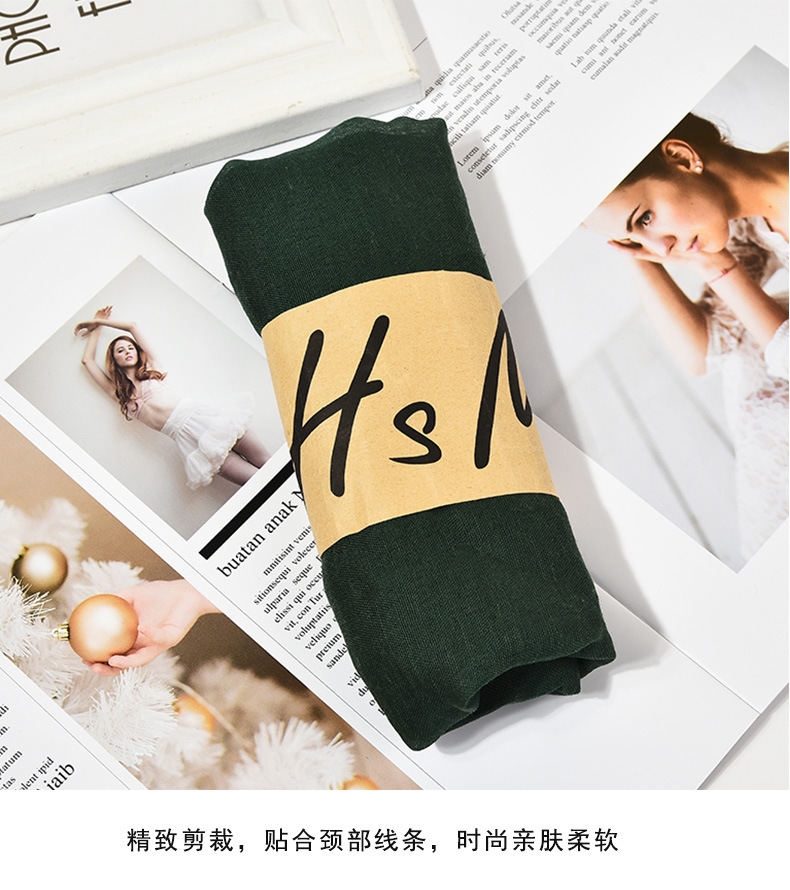 Трендовый шарф, из хлопка и льна, подарок на день рождения, в корейском стиле