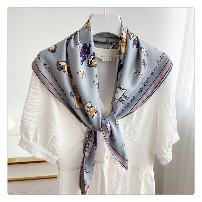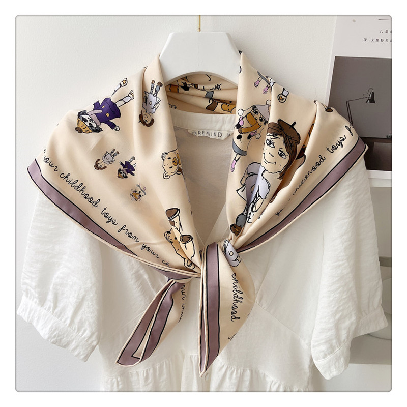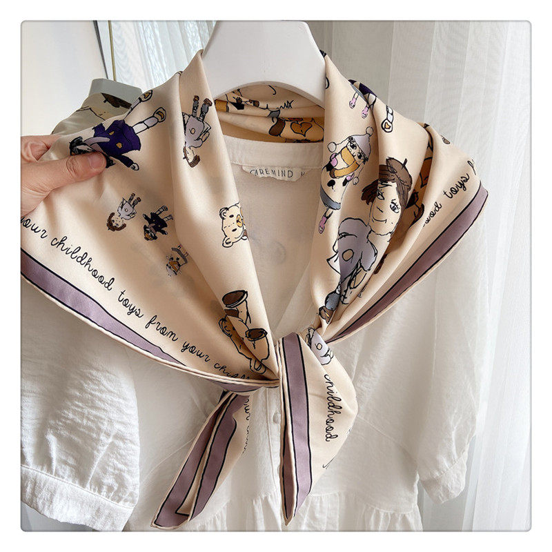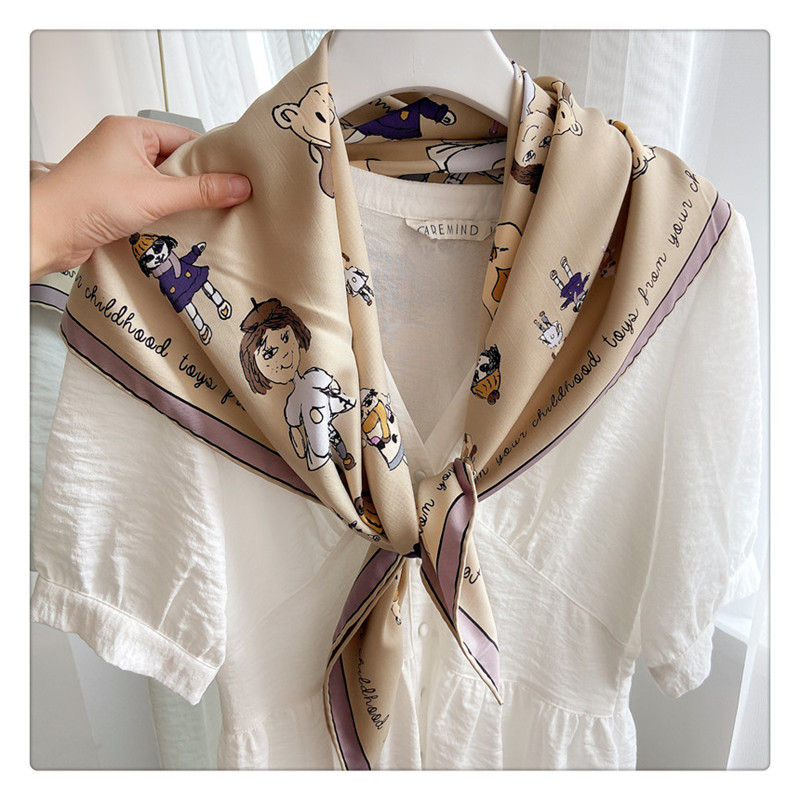 Летний универсальный шелковый тонкий шарф, 90см, с защитой шеи