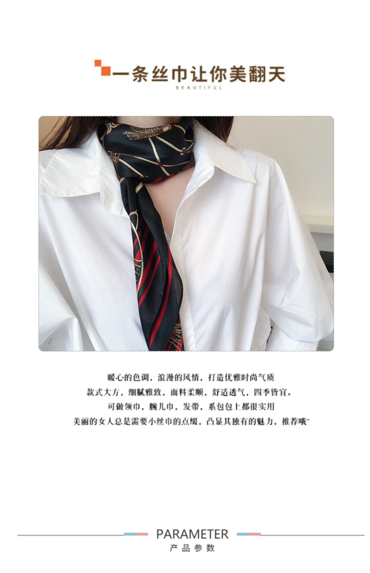 Универсальный модный летний шарф, тонкий шейный платок, в корейском стиле, 70см, в западном стиле