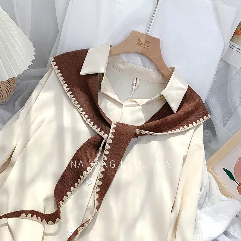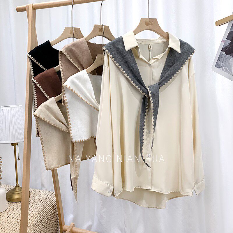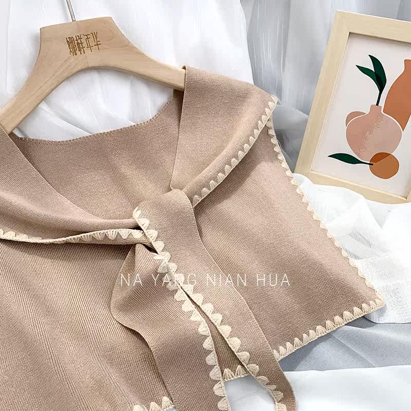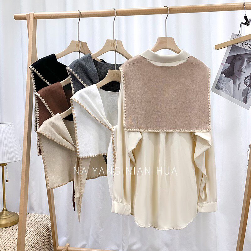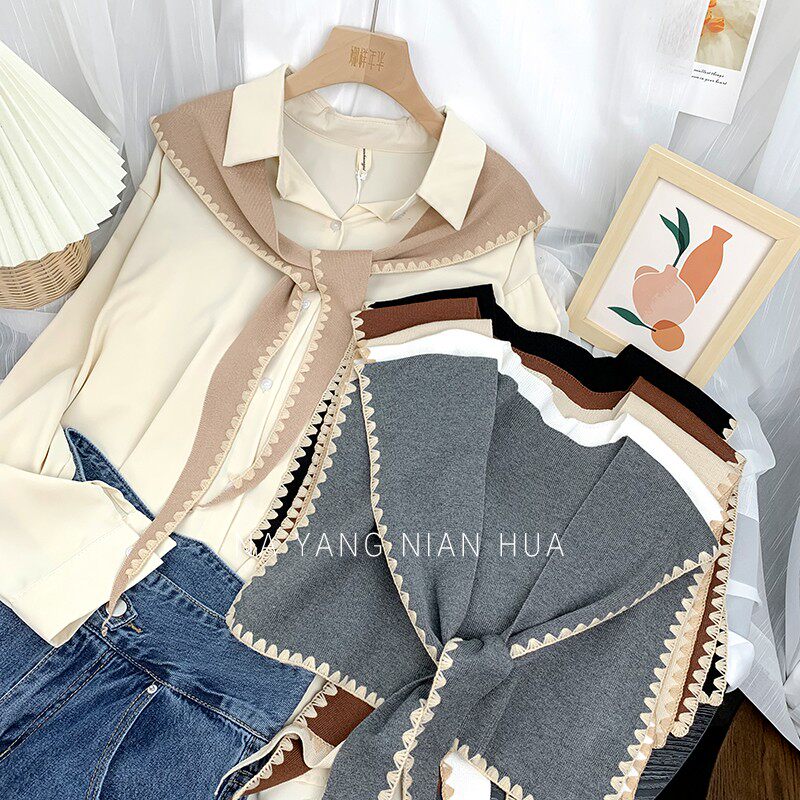 Tide, универсальная подходит с юбкой, трикотажная рубашка, демисезонная накидка, шарф, жилет, в корейском стиле, в западном стиле