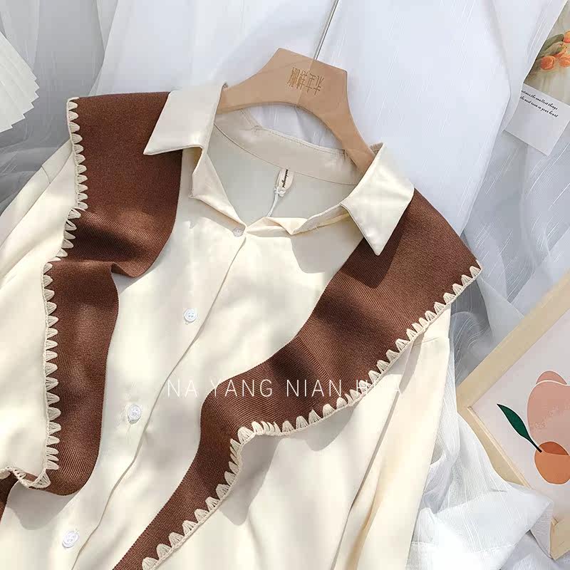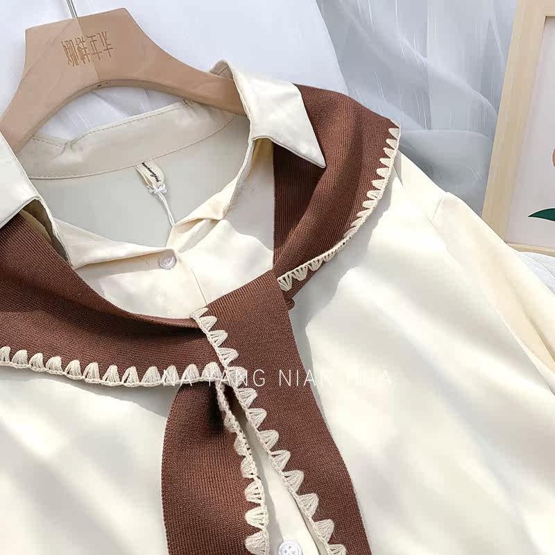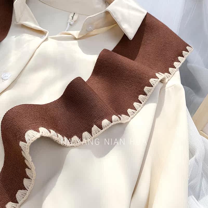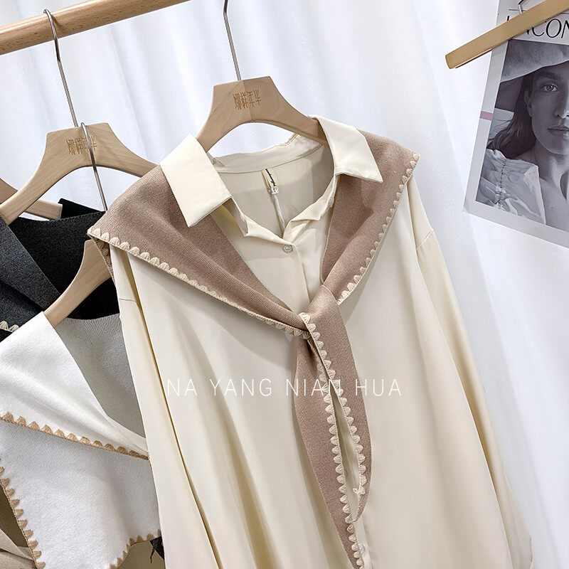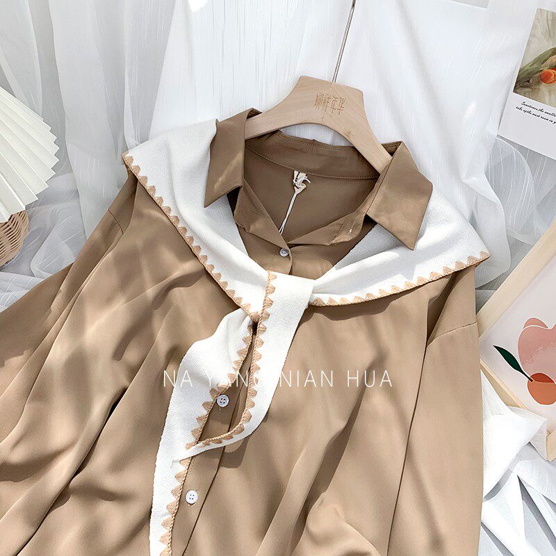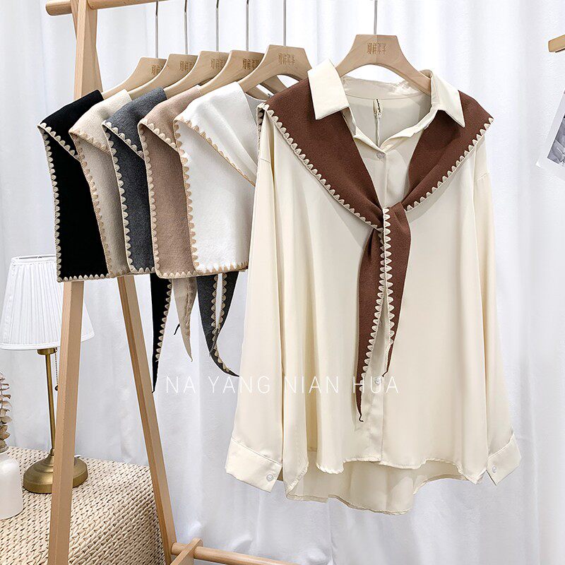 Tide, универсальная подходит с юбкой, трикотажная рубашка, демисезонная накидка, шарф, жилет, в корейском стиле, в западном стиле