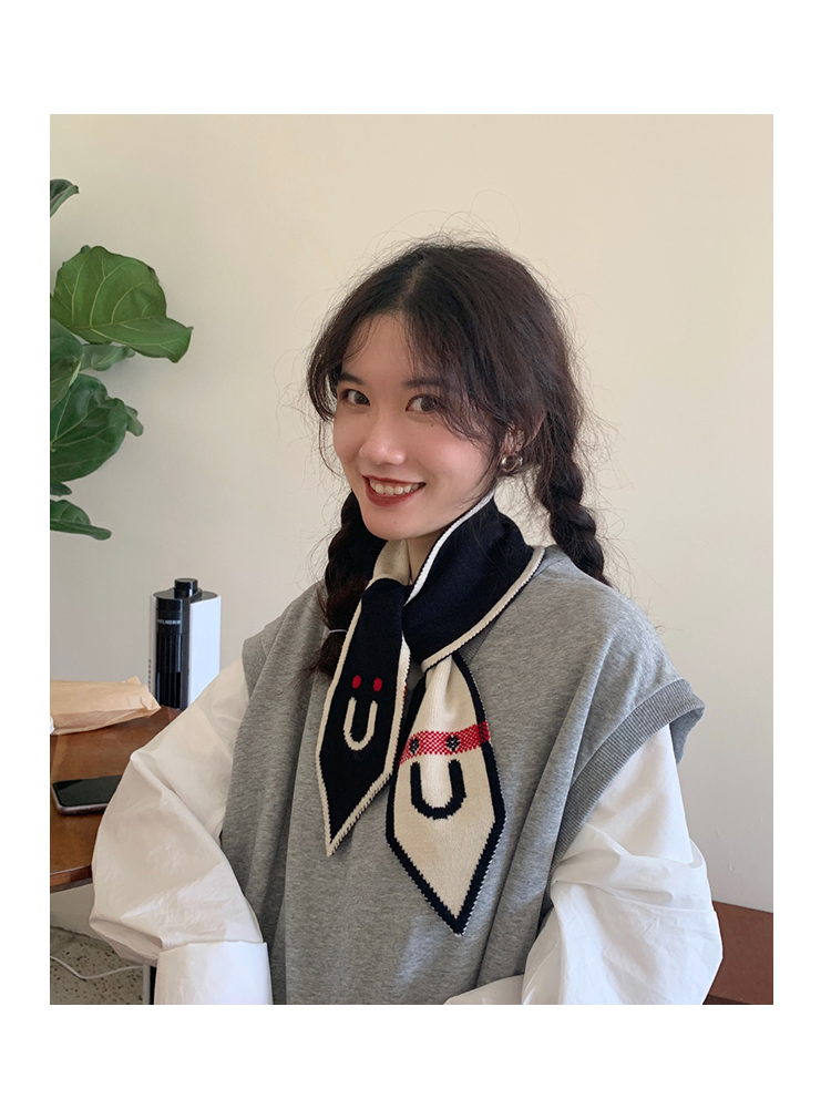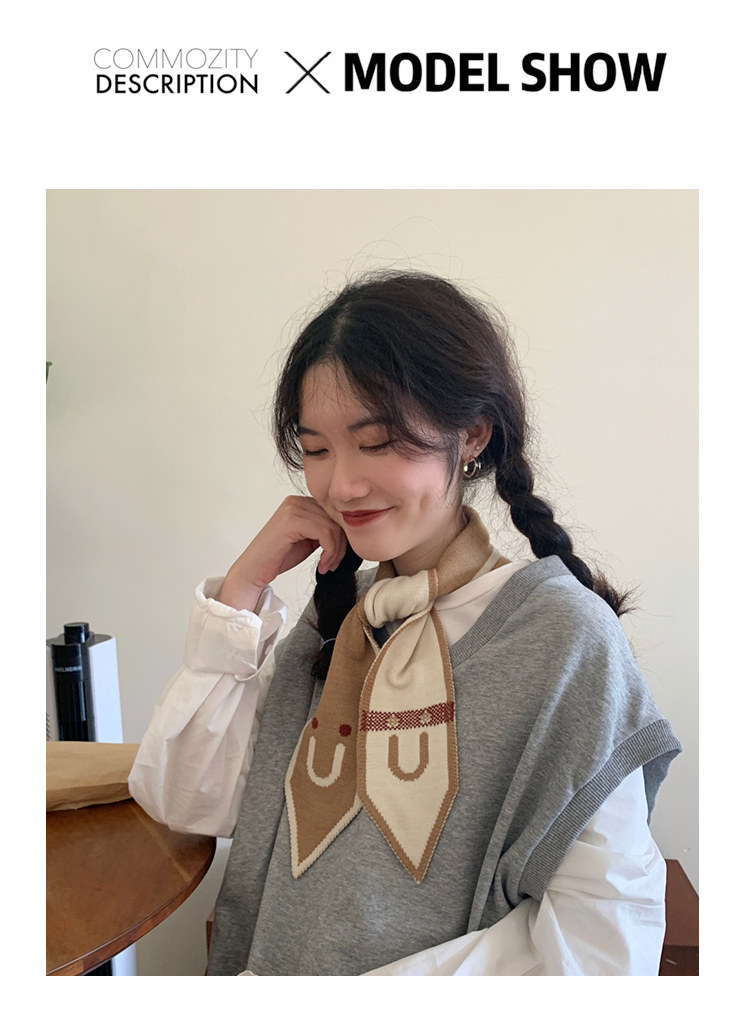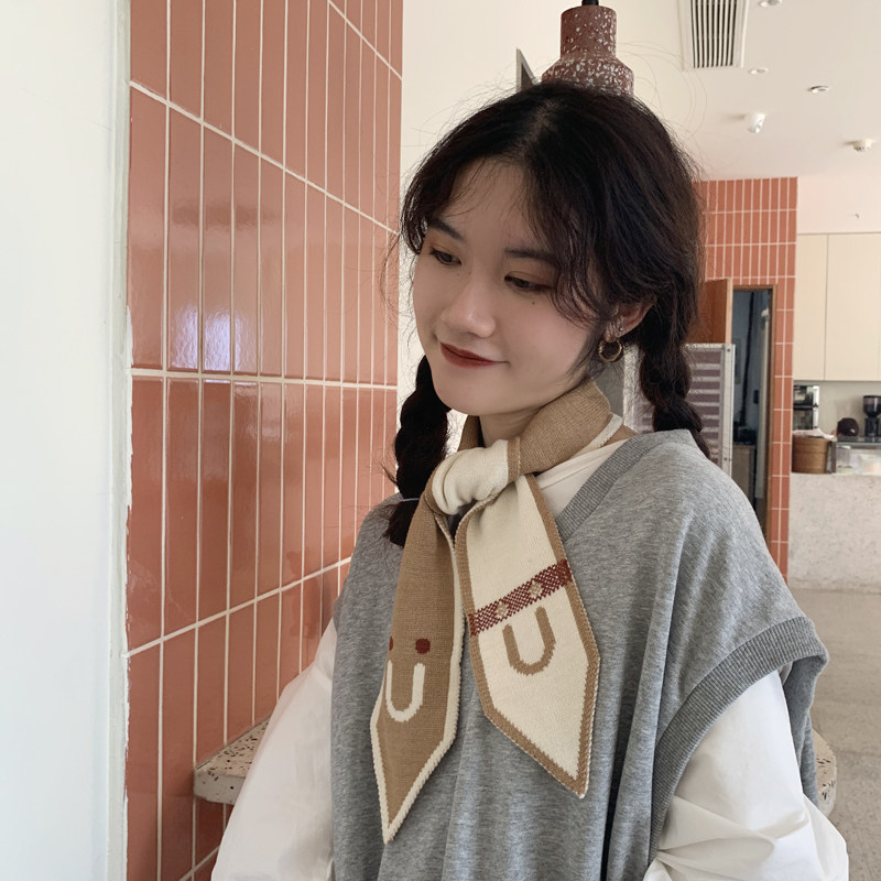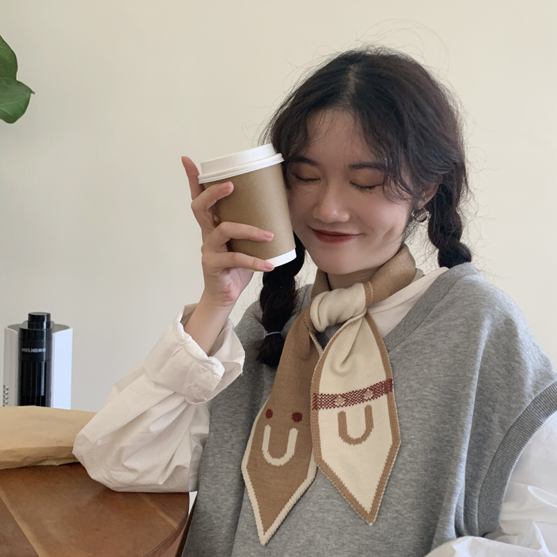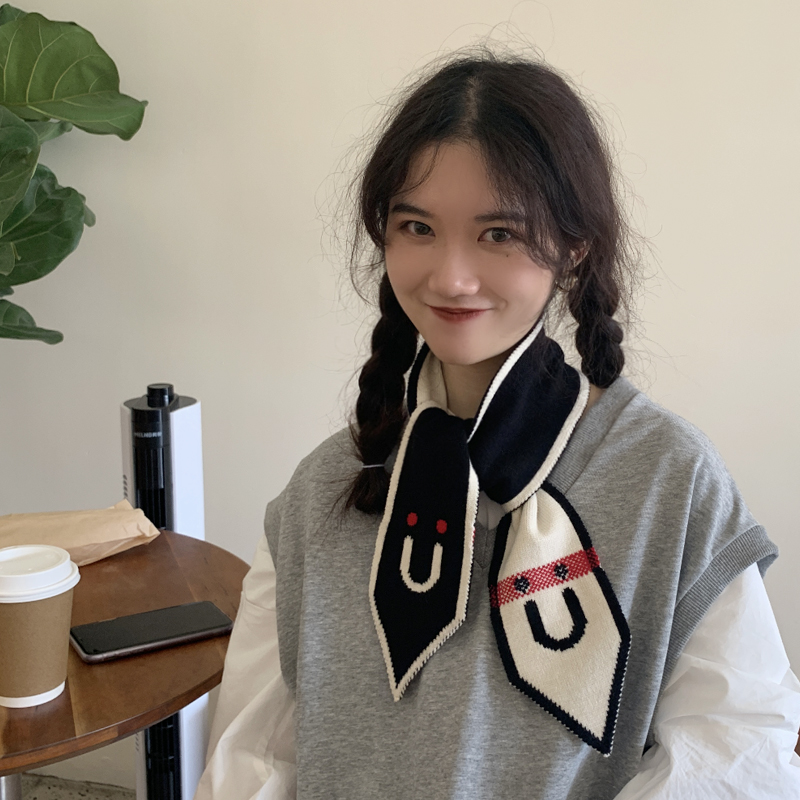 Демисезонный трикотажный короткий милый удерживающий тепло тонкий японский универсальный шарф