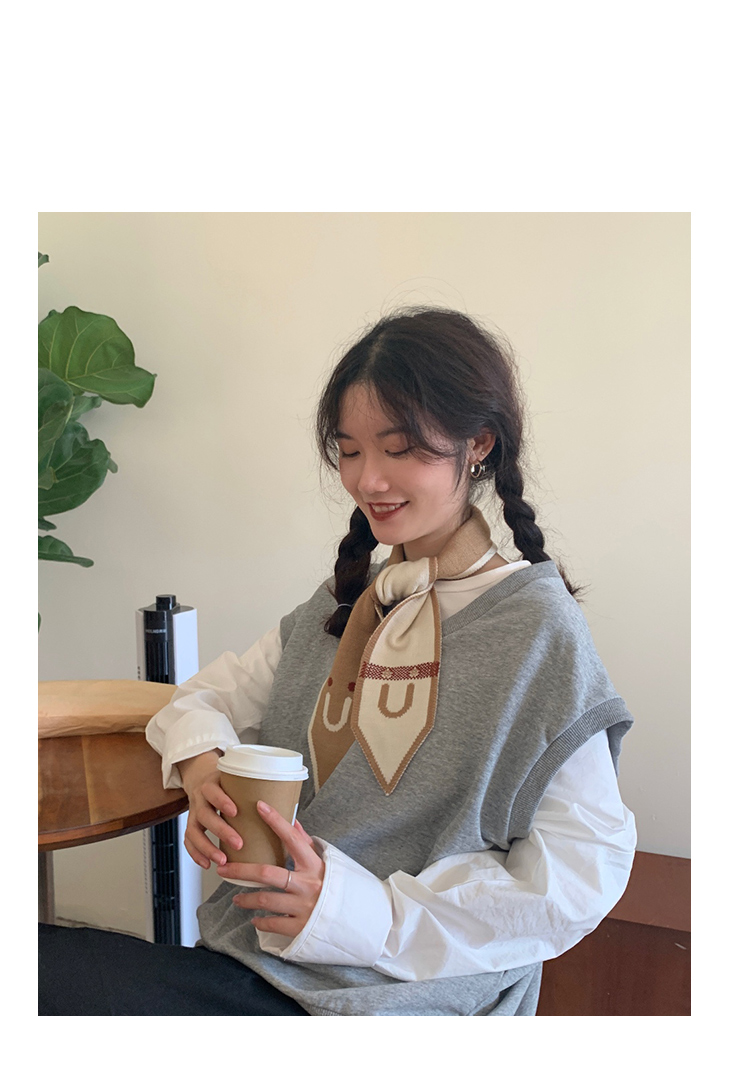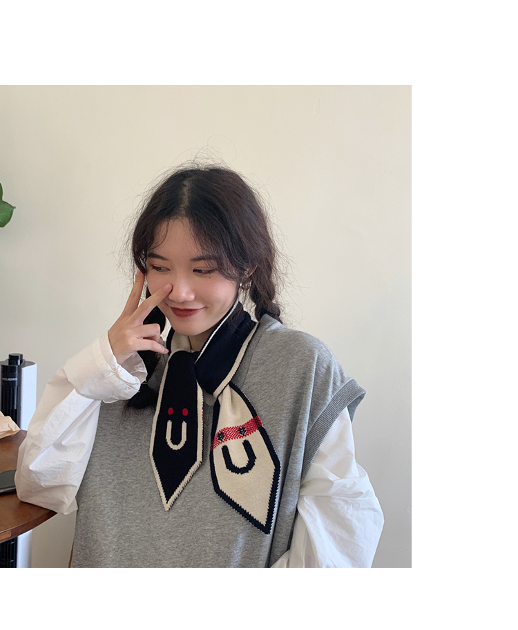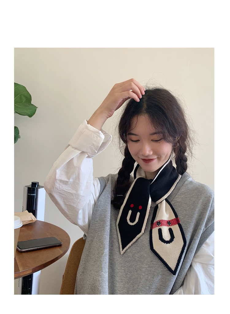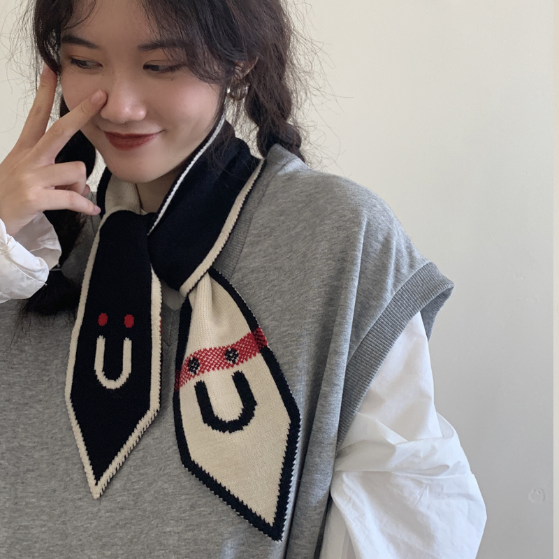 Демисезонный трикотажный короткий милый удерживающий тепло тонкий японский универсальный шарф