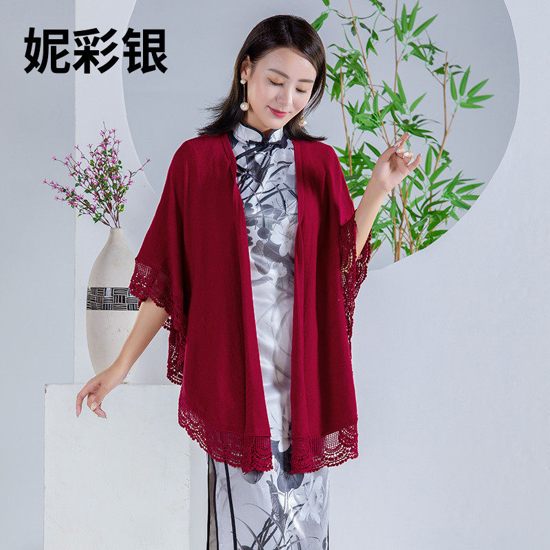 Накидка для матери, осенняя куртка, шерстяной плащ, ципао, длинный кружевной кардиган, средней длины