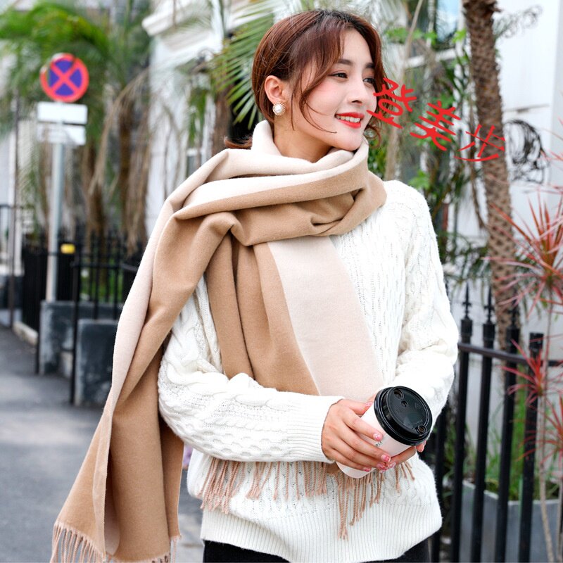 Кашемировый двусторонний двухцветный длинный демисезонный шарф с кисточками, универсальная накидка, в британском стиле