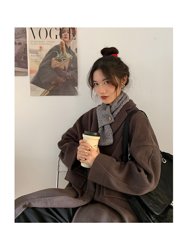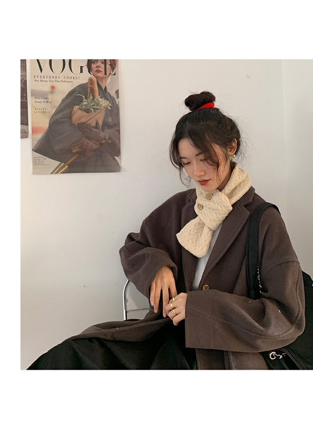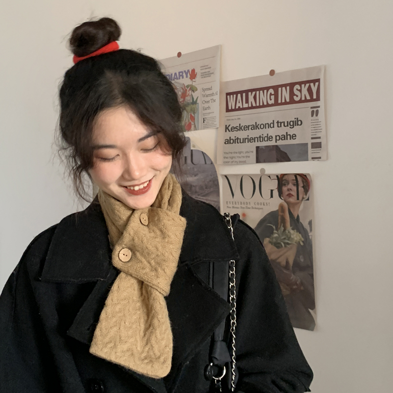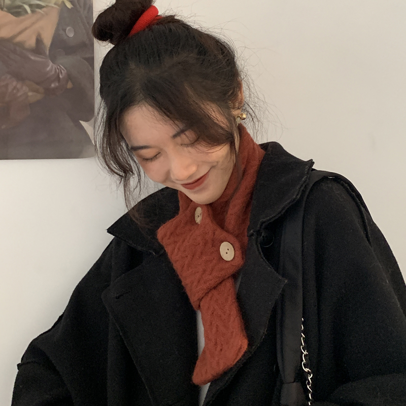 Трикотажный демисезонный милый удерживающий тепло универсальный короткий шарф, в корейском стиле