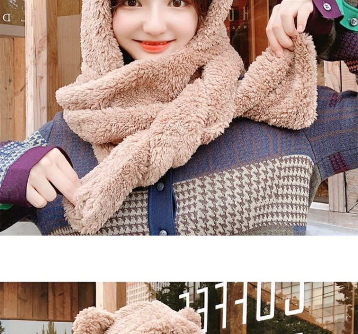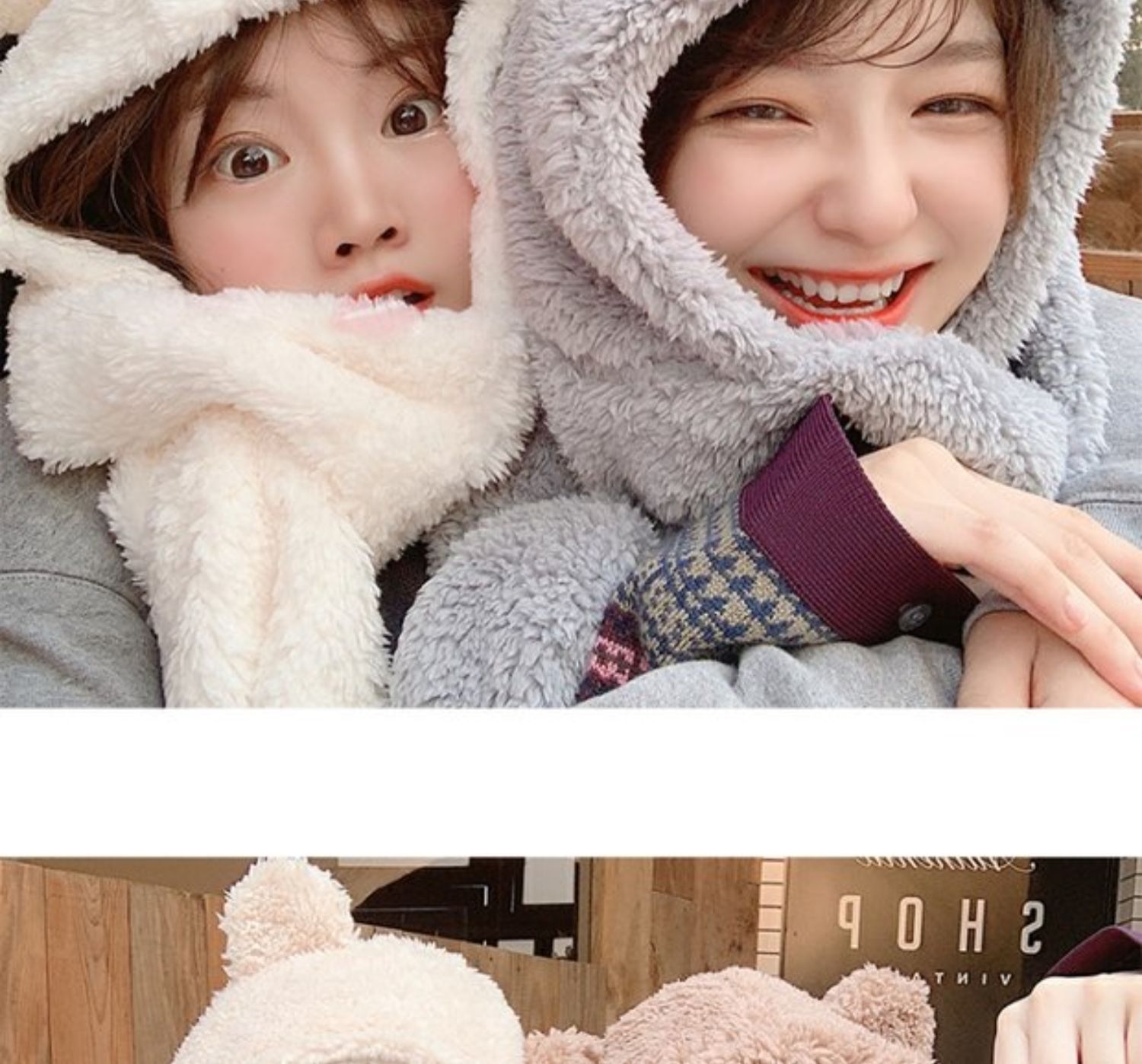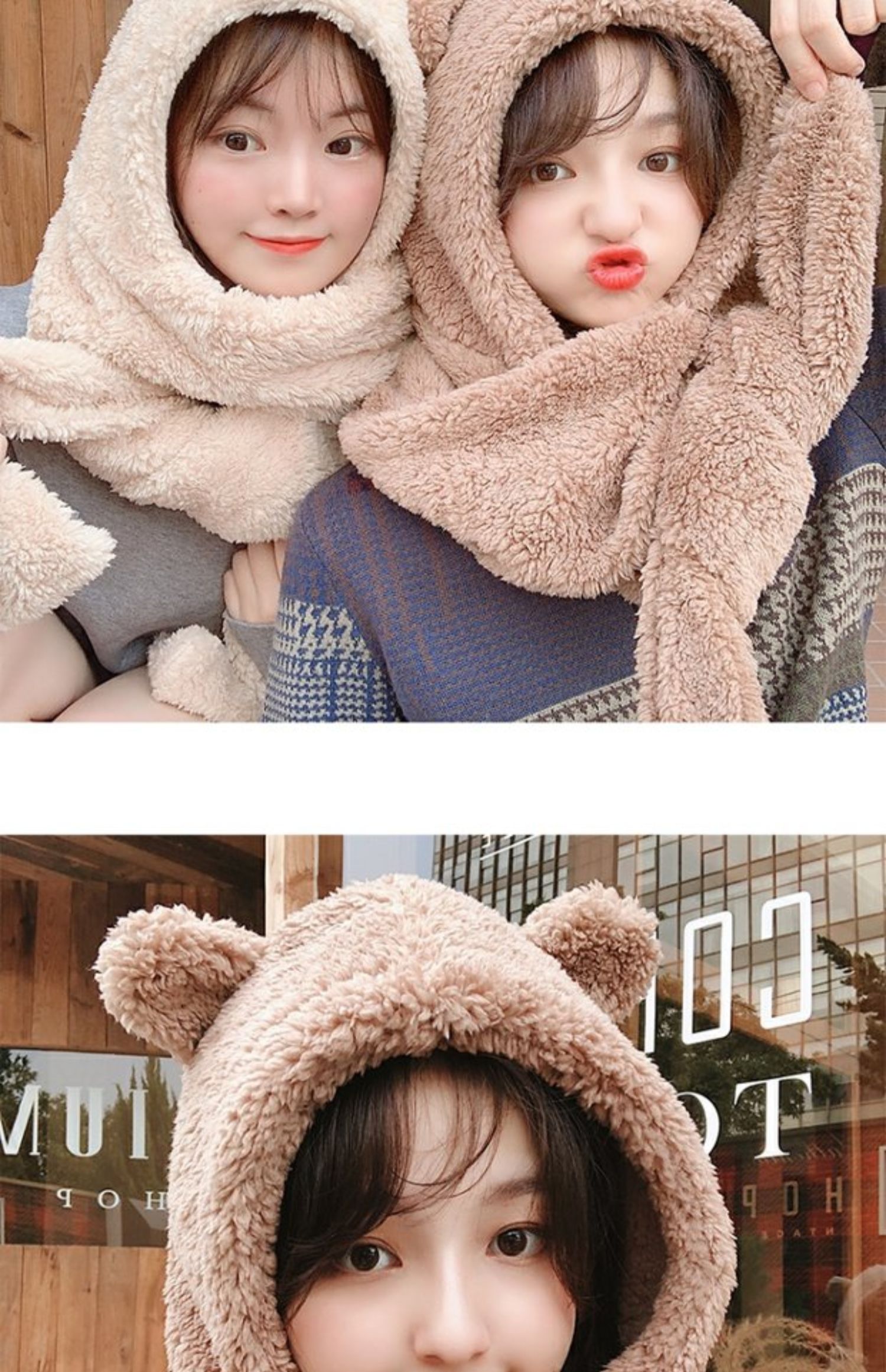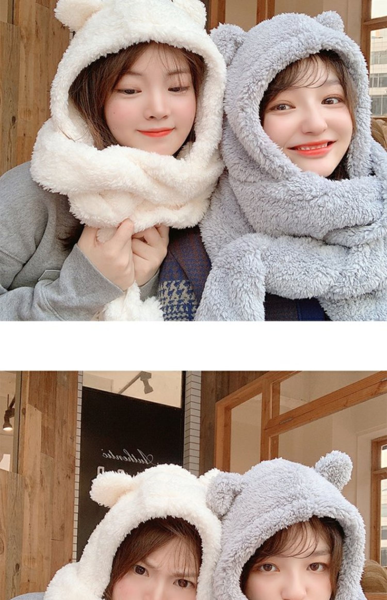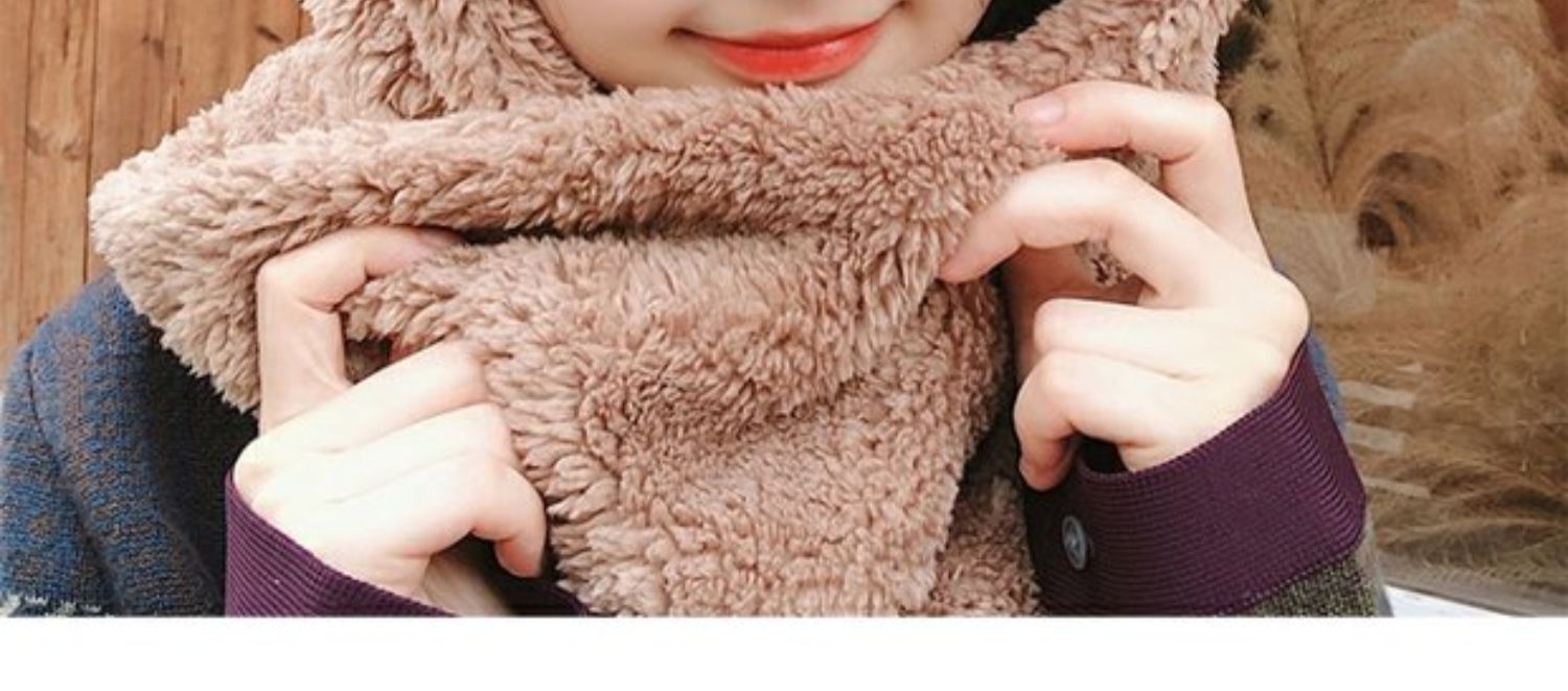 Зимний шарф, бархатная милая универсальная зимняя брендовая шапка с капюшоном, с медвежатами