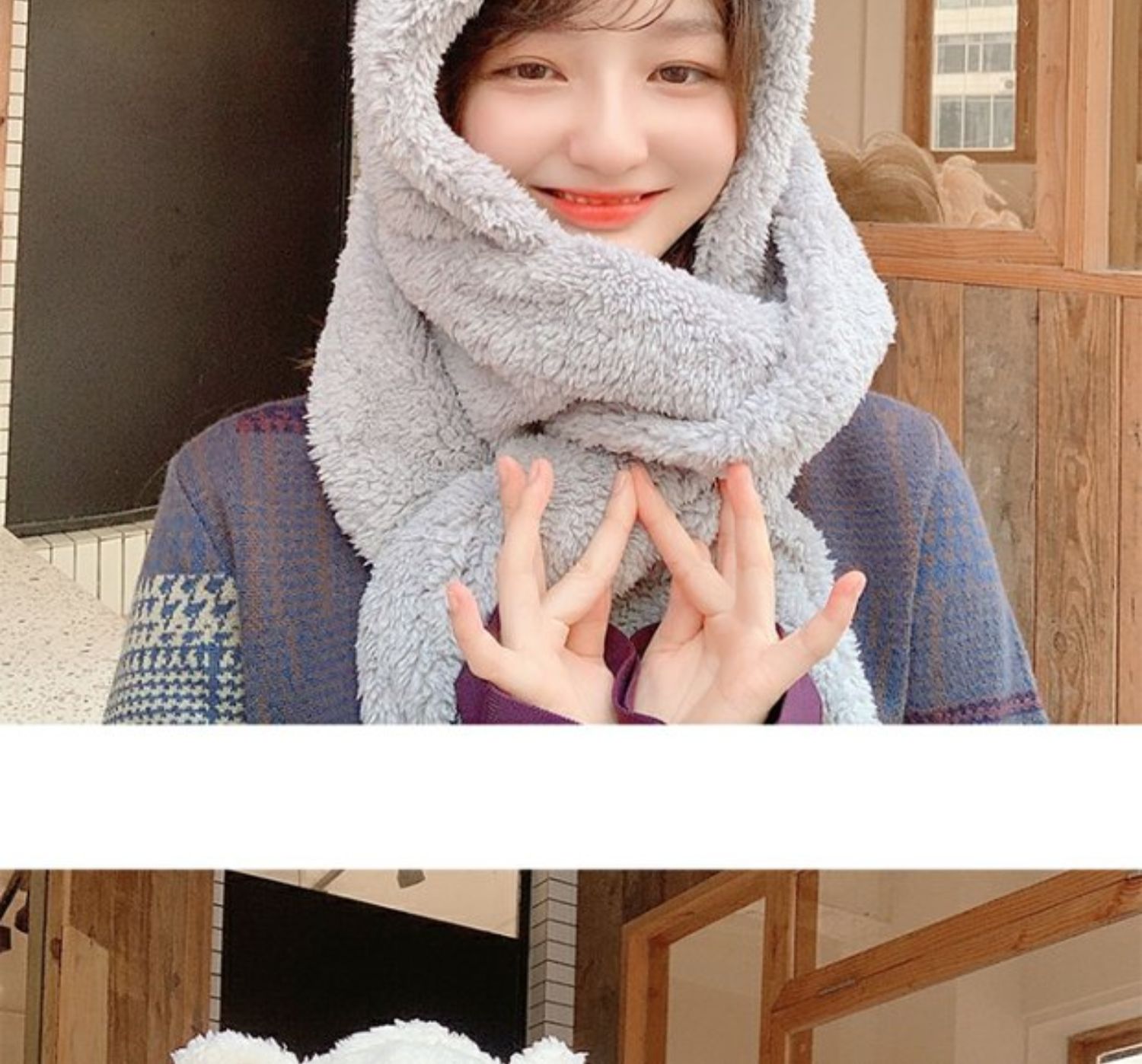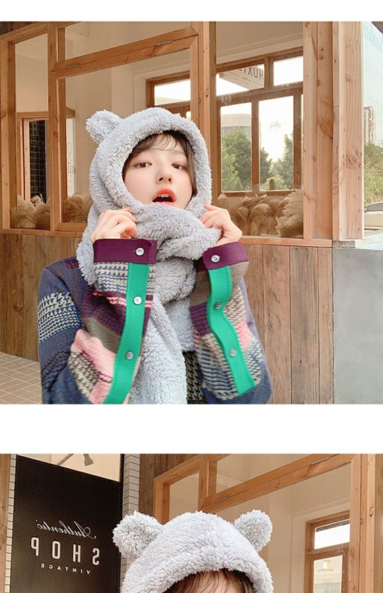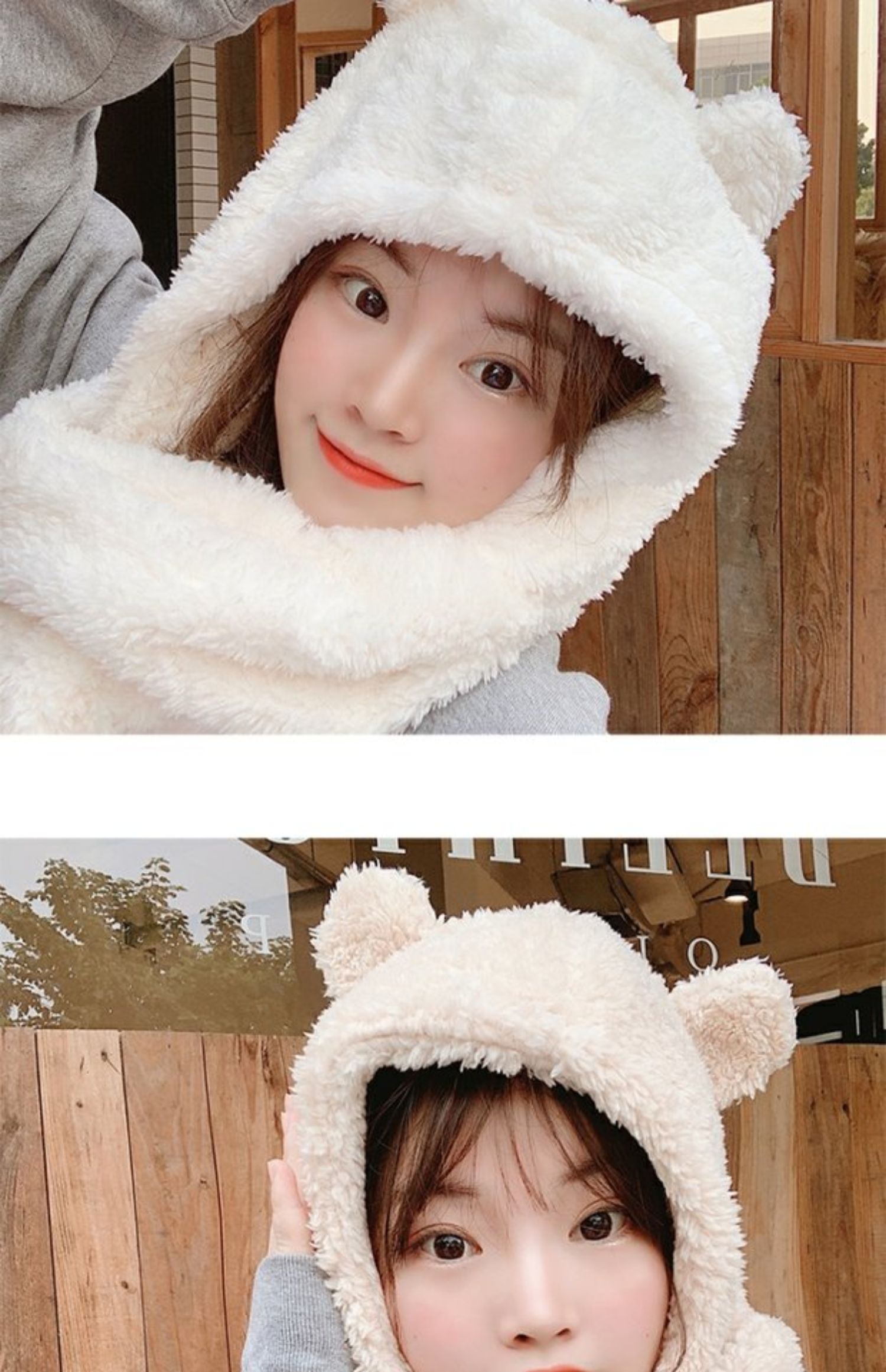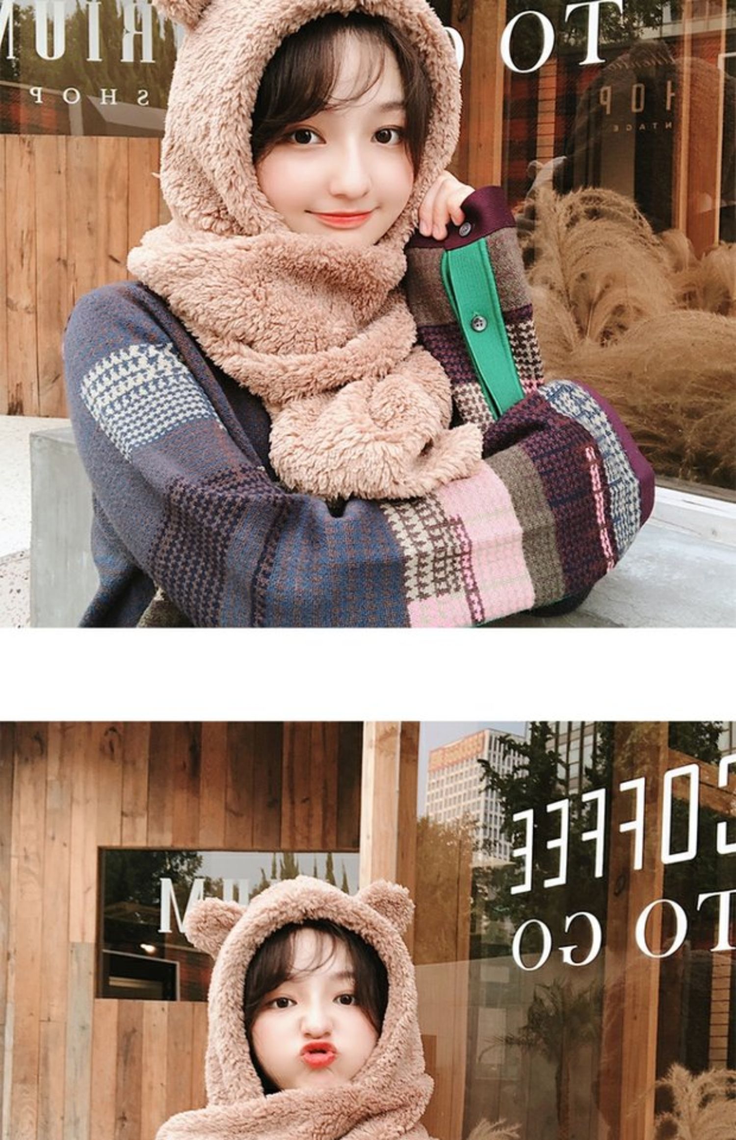 Зимний шарф, бархатная милая универсальная зимняя брендовая шапка с капюшоном, с медвежатами