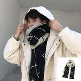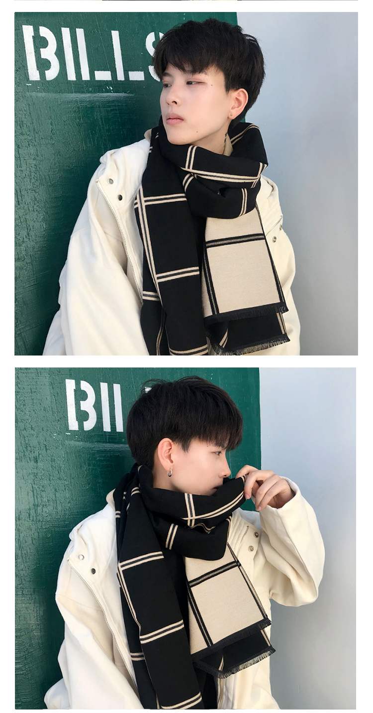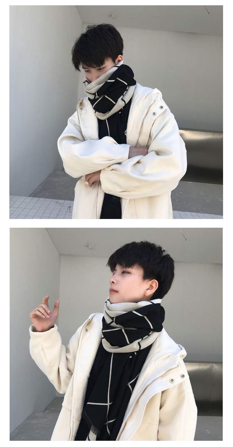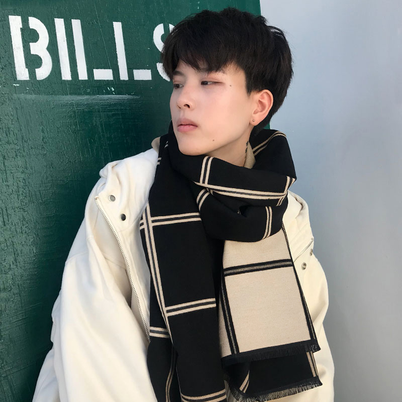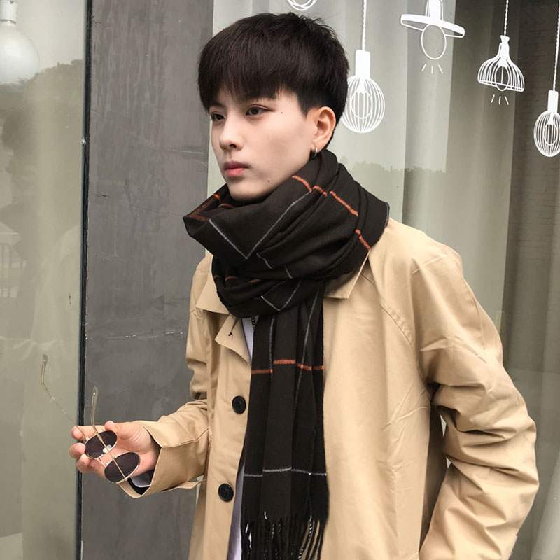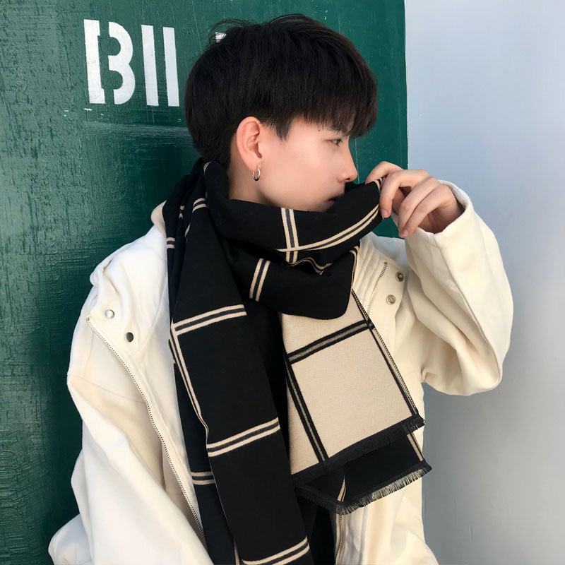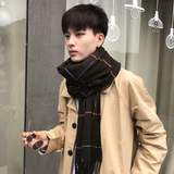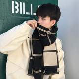 Демисезонный универсальный трикотажный утепленный мужской длинный шарф, в корейском стиле