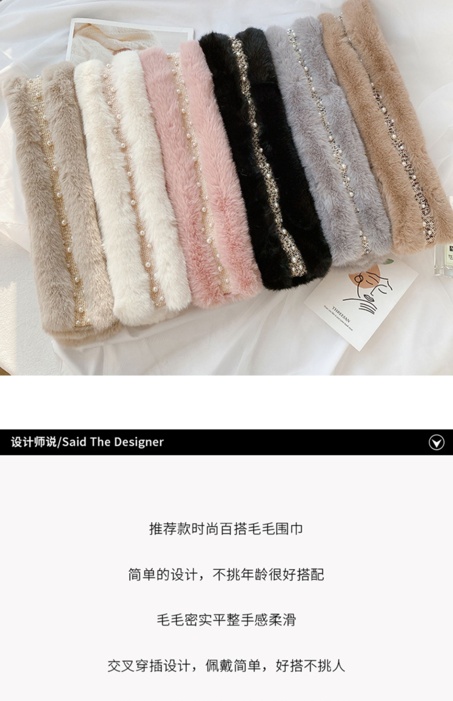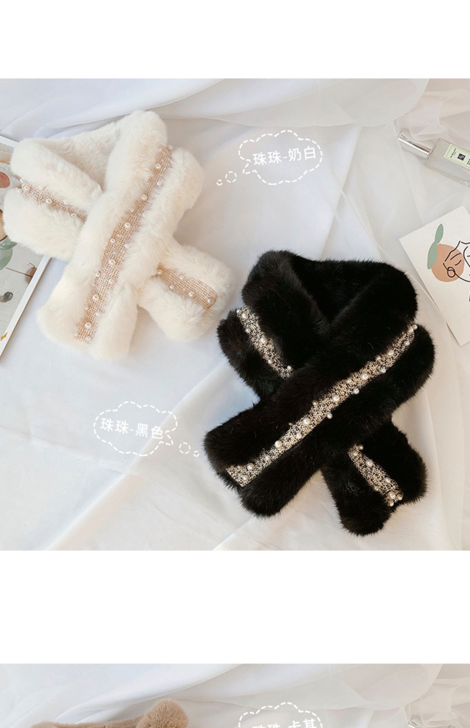 Демисезонный воротник из жемчуга, брендовый универсальный шарф, в стиле Шанель, в корейском стиле