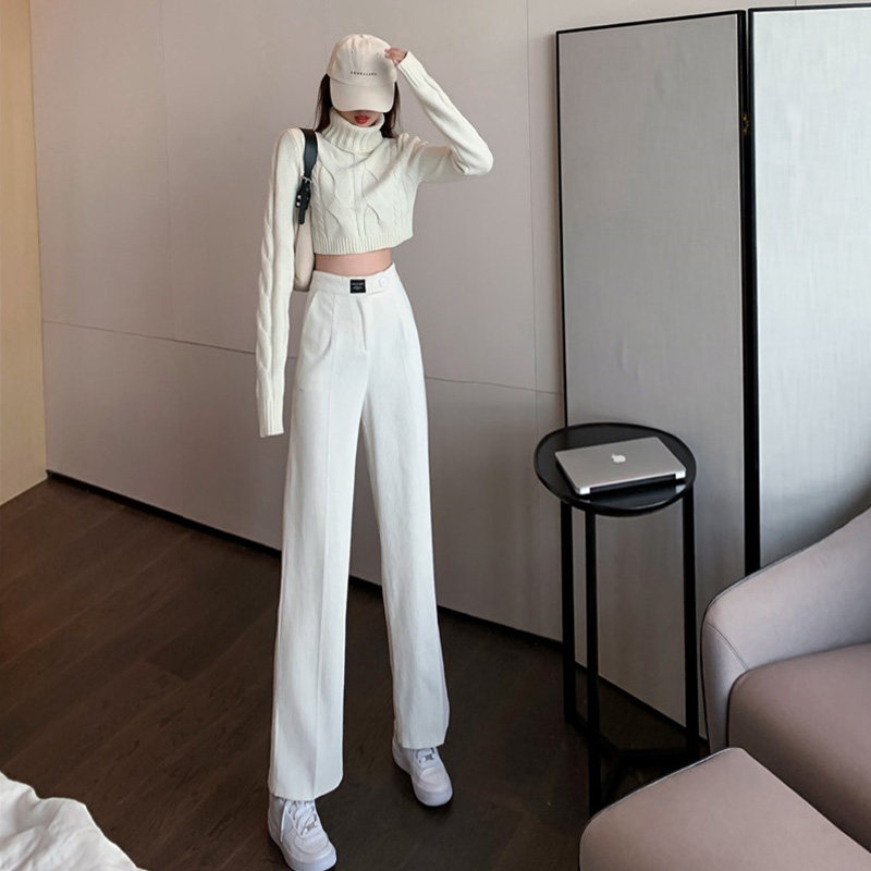 Tide, вельветовые модные белые штаны, высокая талия, свободный прямой крой