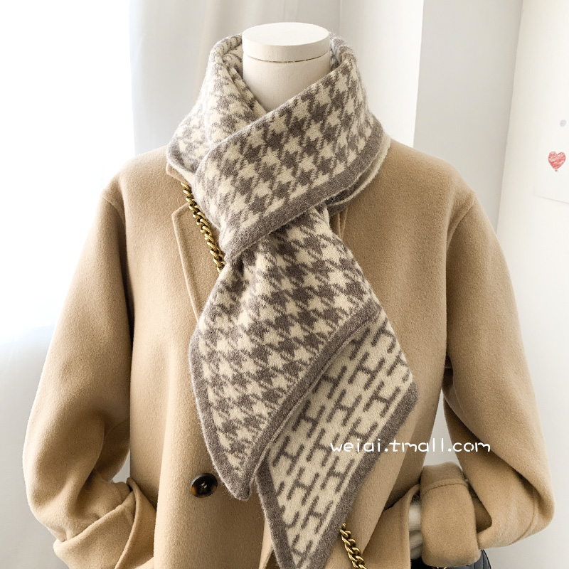 Демисезонный трикотажный короткий милый удерживающий тепло японский универсальный шарф, в корейском стиле, с защитой шеи