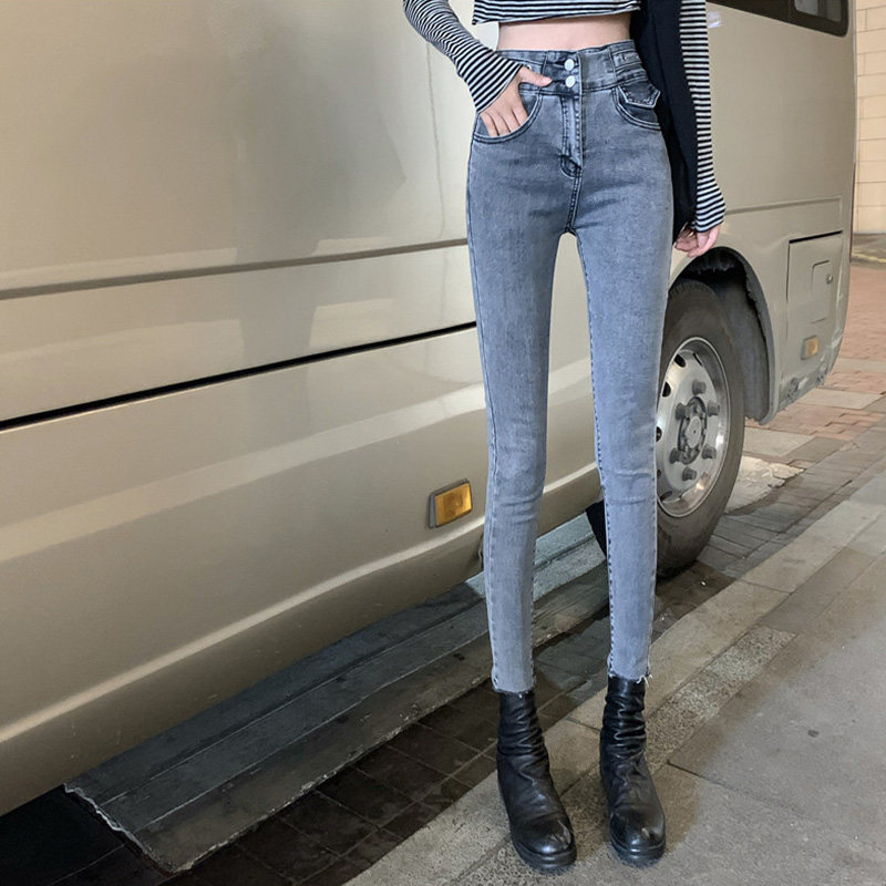 Джинсы, эластичные штаны для отдыха, карандаш, высокая талия, 2021 года, в обтяжку, по фигуре