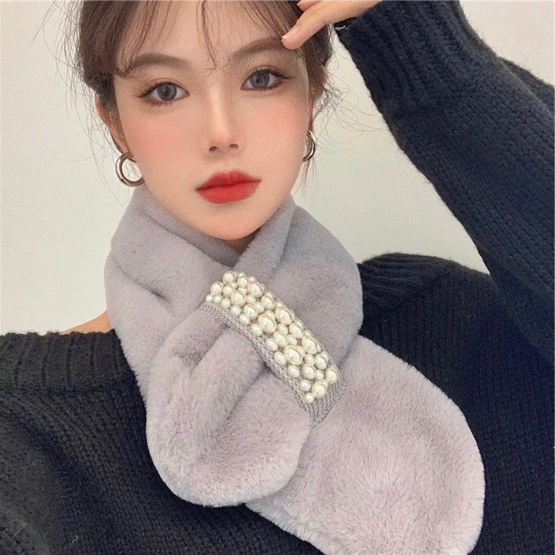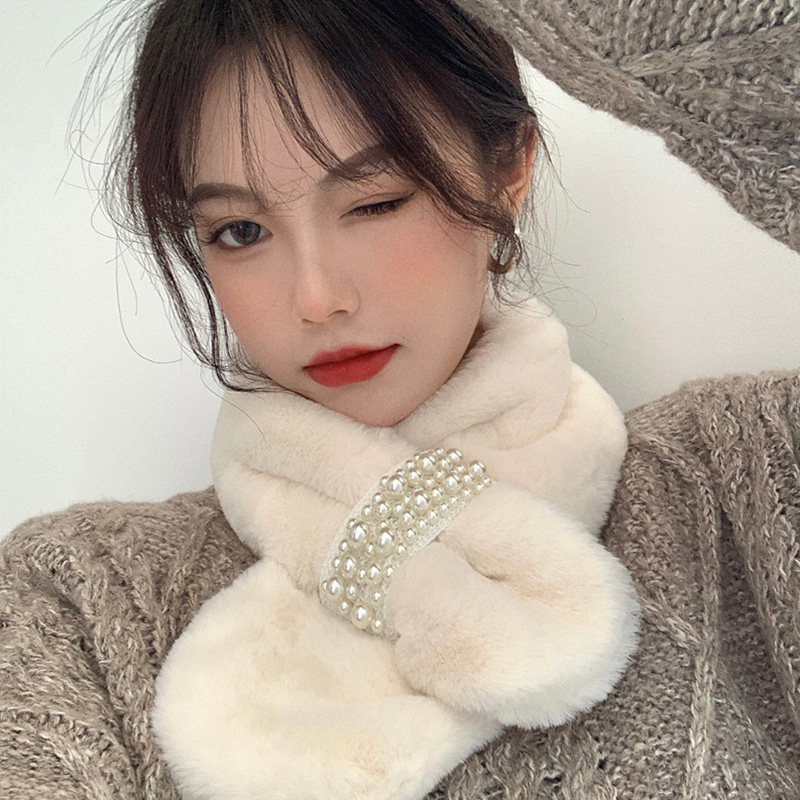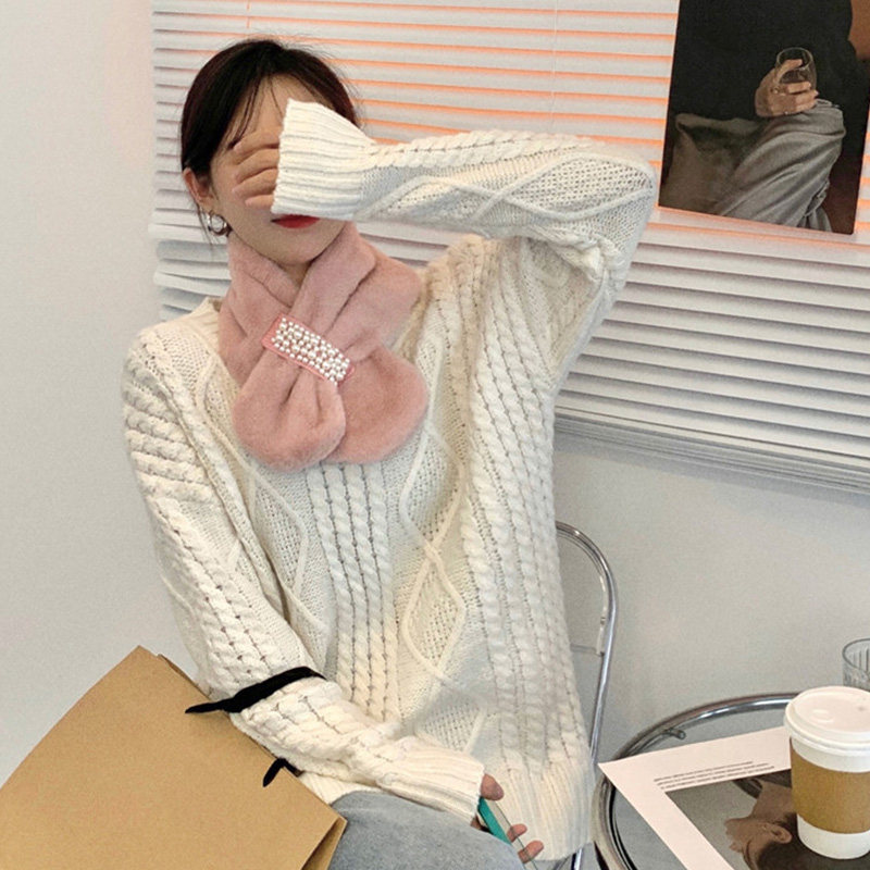 Зимний удерживающий тепло дизайнерский универсальный милый шарф из жемчуга, в корейском стиле, с защитой шеи, тренд сезона, в западном стиле