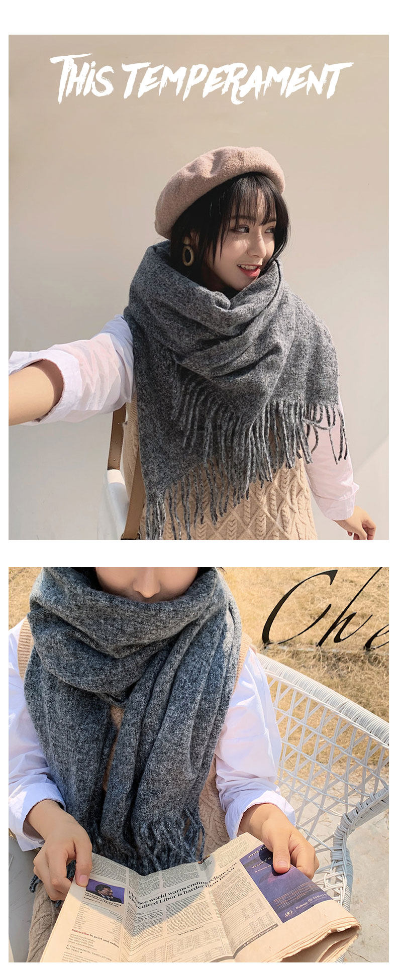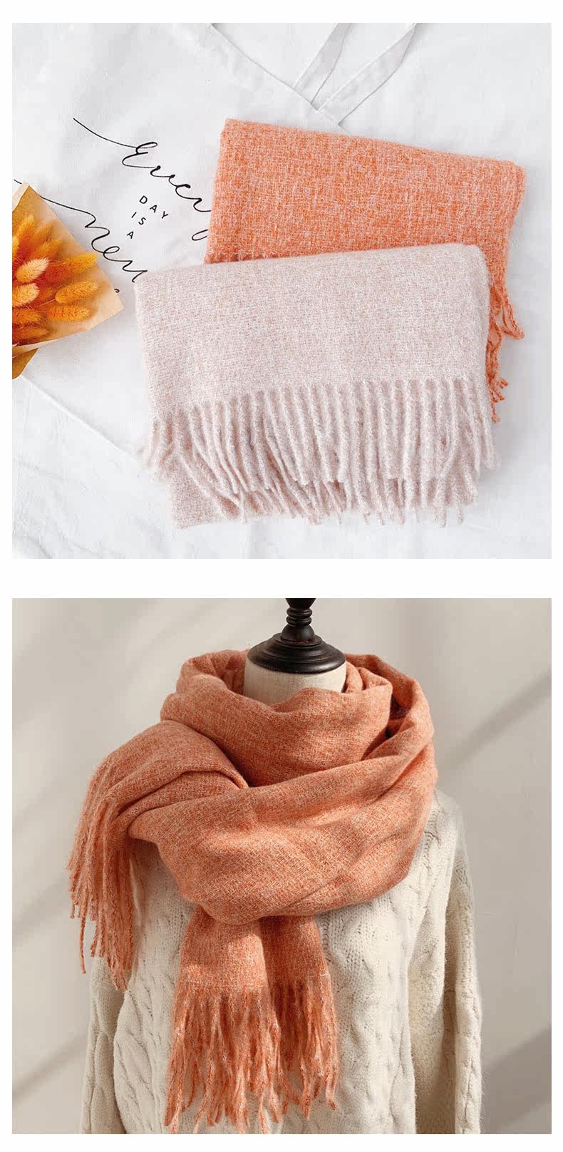 Цветной универсальный шерстяной демисезонный утепленный шарф, накидка для школьников, популярно в интернете, в корейском стиле