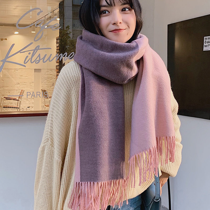 Двусторонний цветной шарф, зимний бархатный товар из искусственного меха, универсальная накидка для школьников, увеличенная толщина