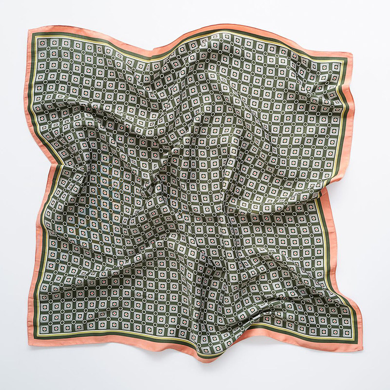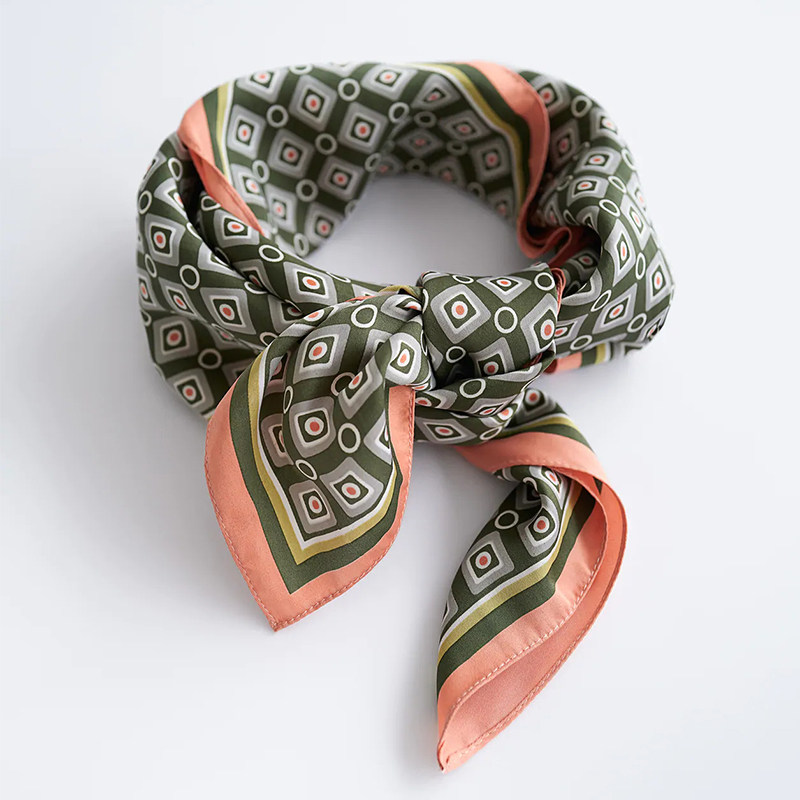 Блоггер Sanmu с тем же шелковым шарфом женского атласного атласного проникновения с печатной модой Универсальный декоративная плавающая лента Маленький квадратный шарф 7070