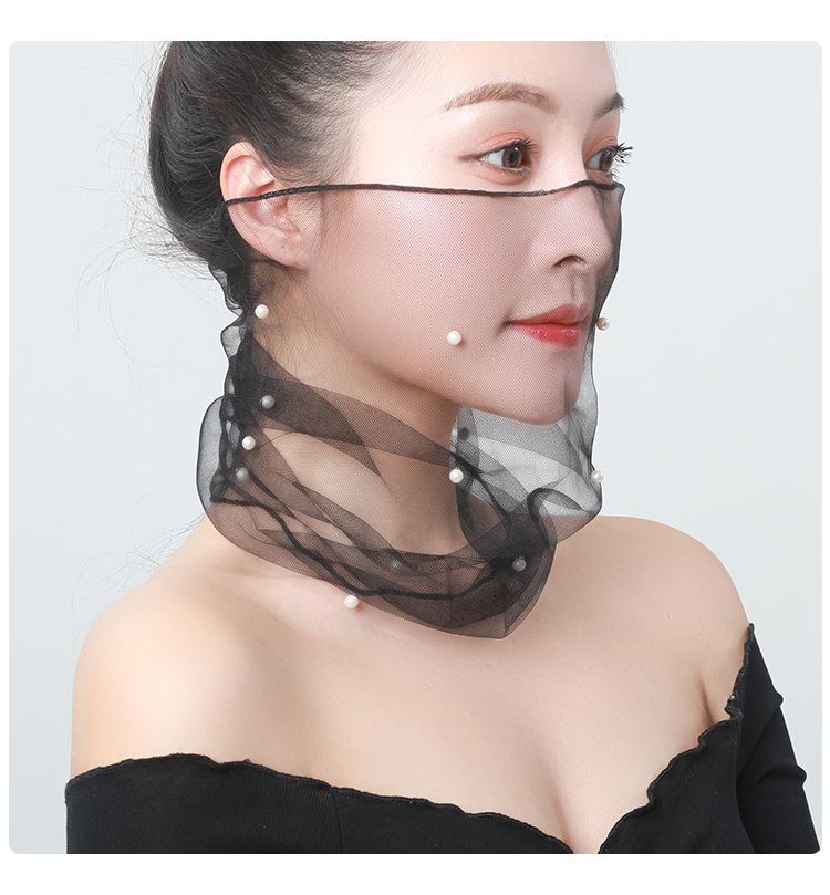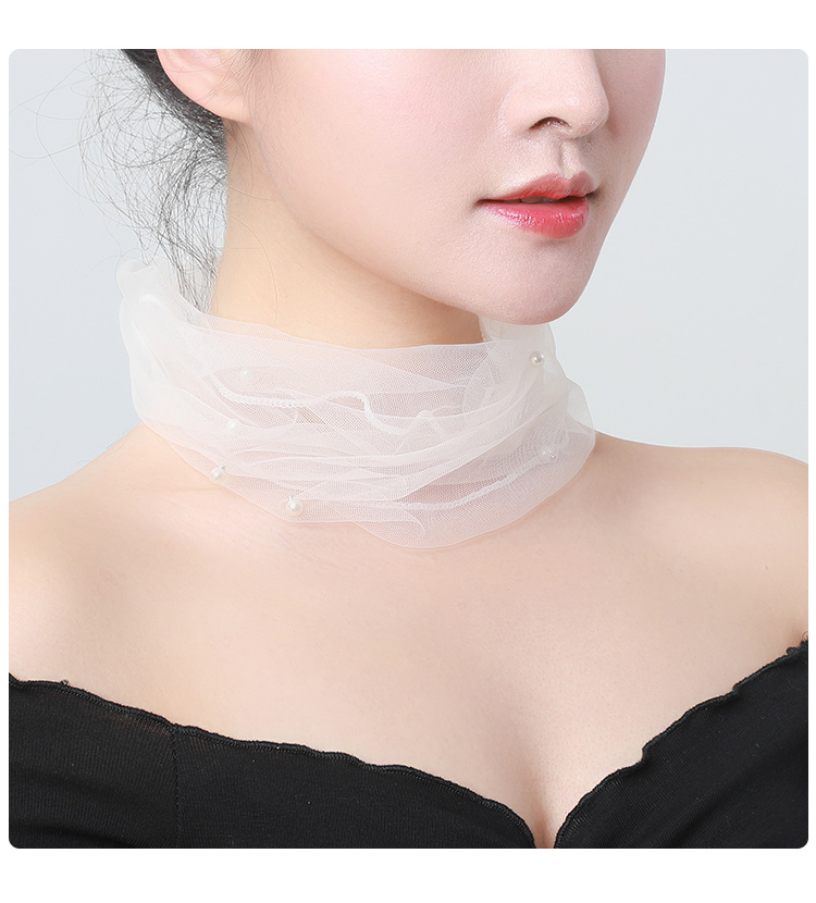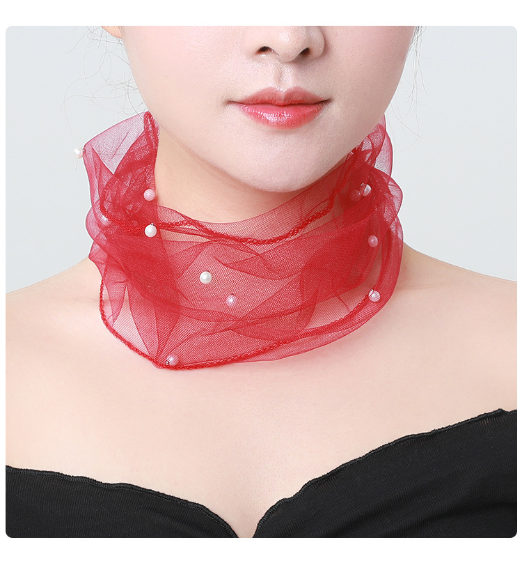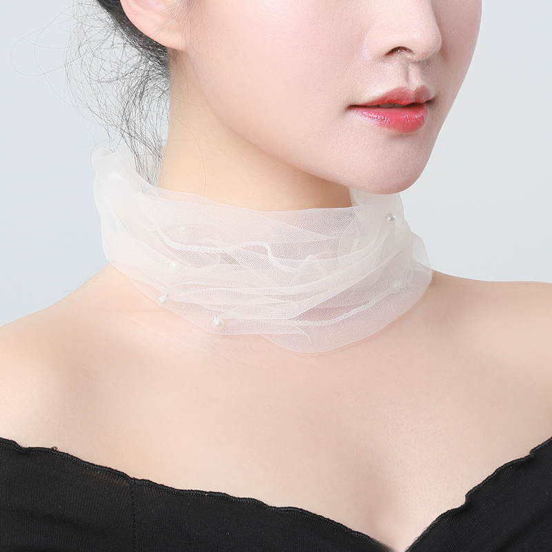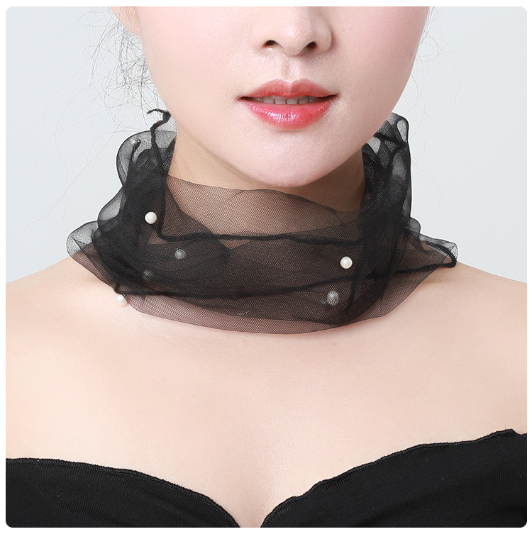 Демисезонный кружевной шарф, подвеска из жемчуга, шарф-платок, в корейском стиле, с защитой шеи