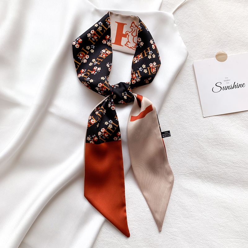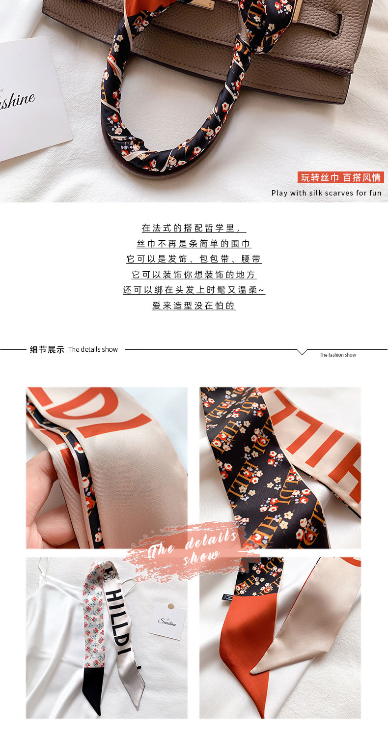 Шикарный шелковый шарф маленький длинная полоса весна и осенние декоративные волосы корейский иностранный стиль дикий галстук с дрейфующим профессиональным шарфом