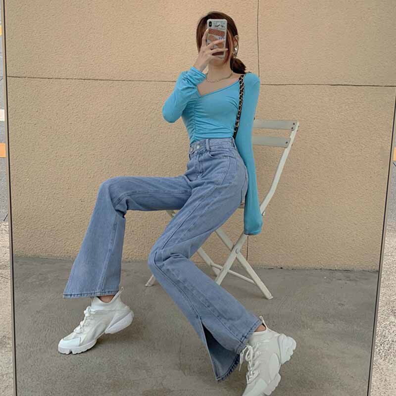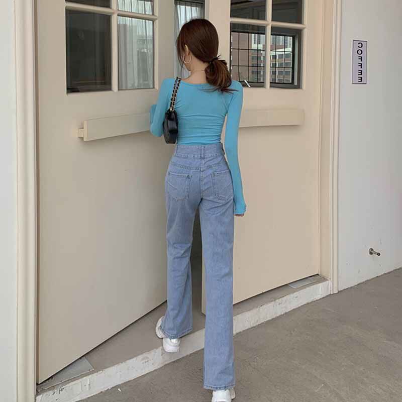 Ретро джинсы, брендовые штаны, высокая талия, популярно в интернете, свободный прямой крой