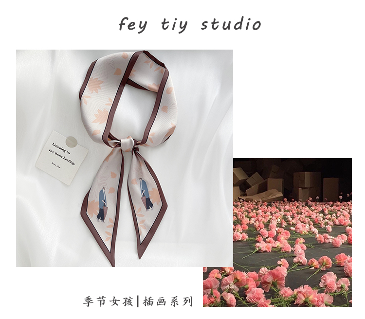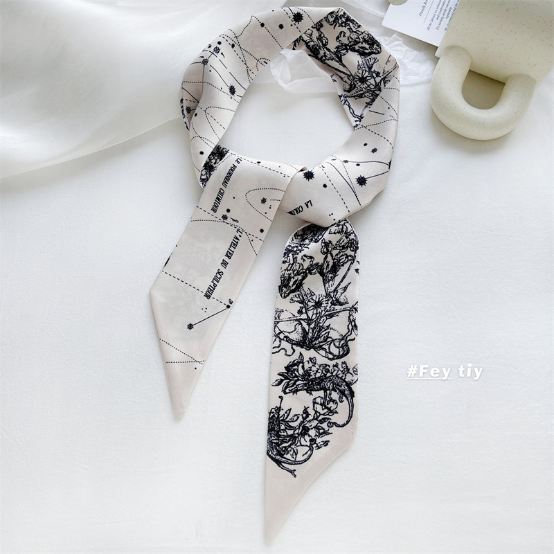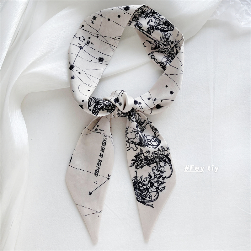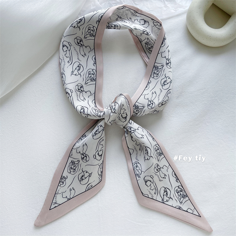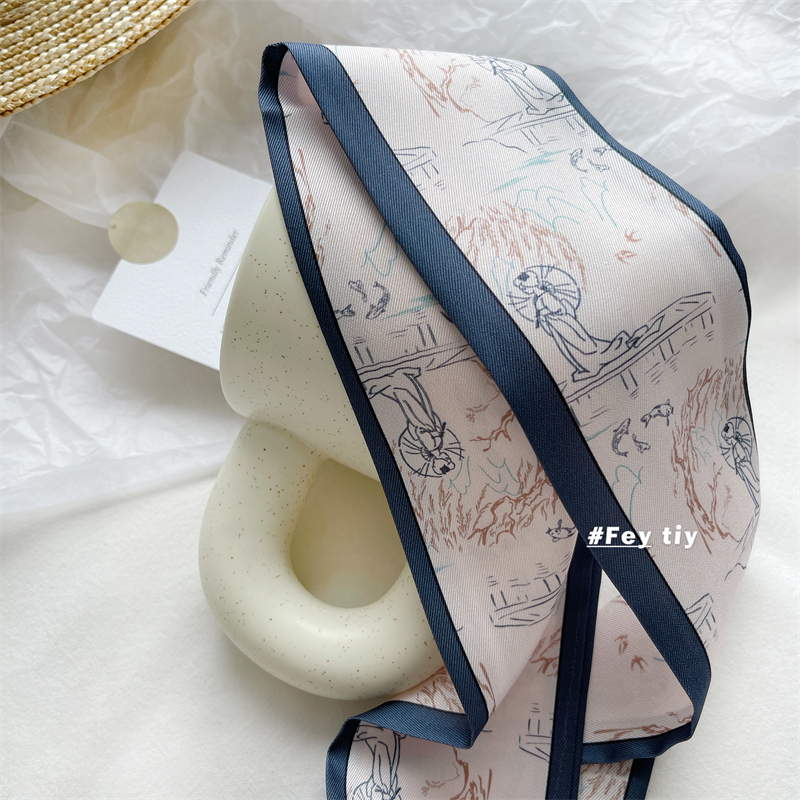Оптимистично любит создать костюм шелковой шарф ретро -модели французский и осенний моды, дикая длинная лента женская шелковая шарф
