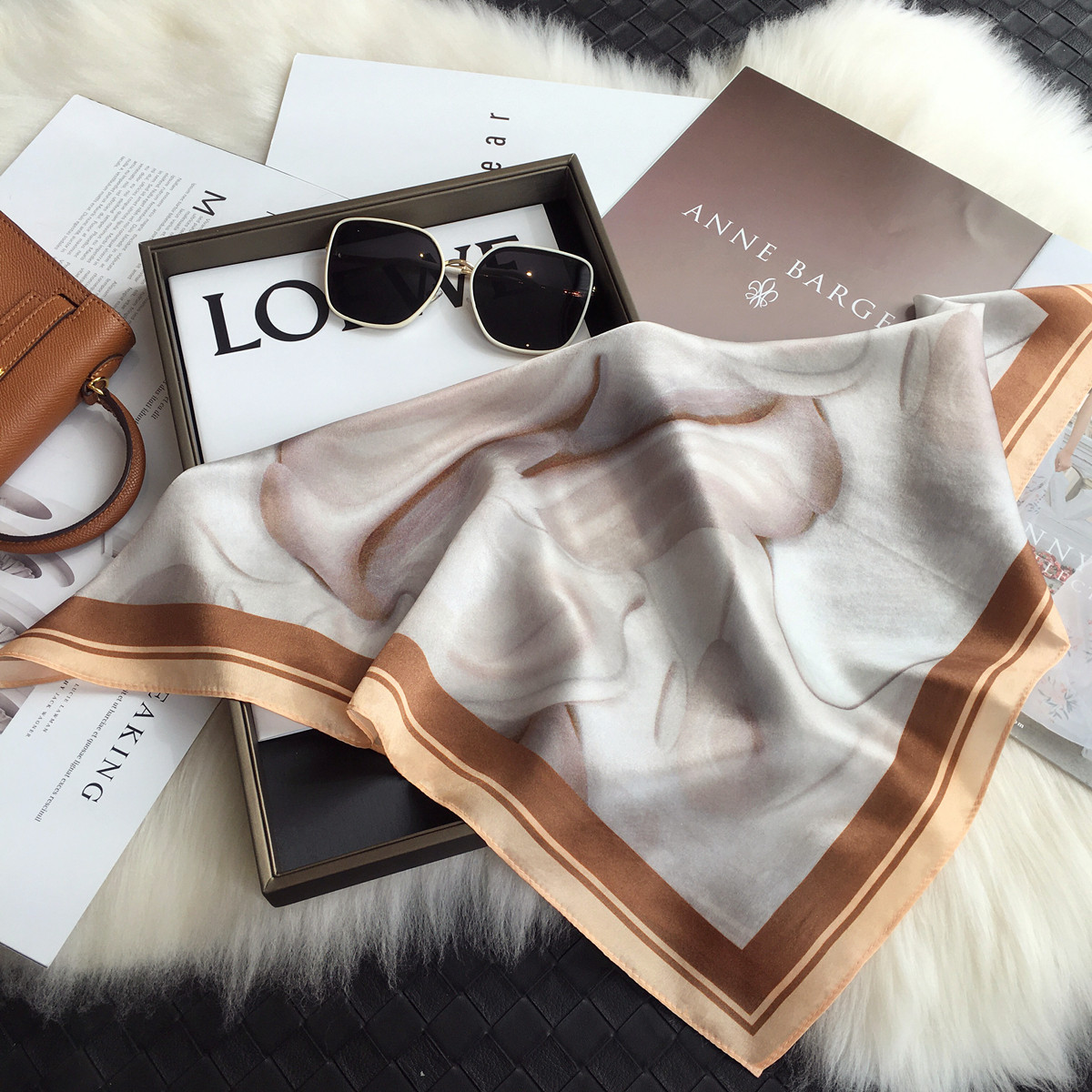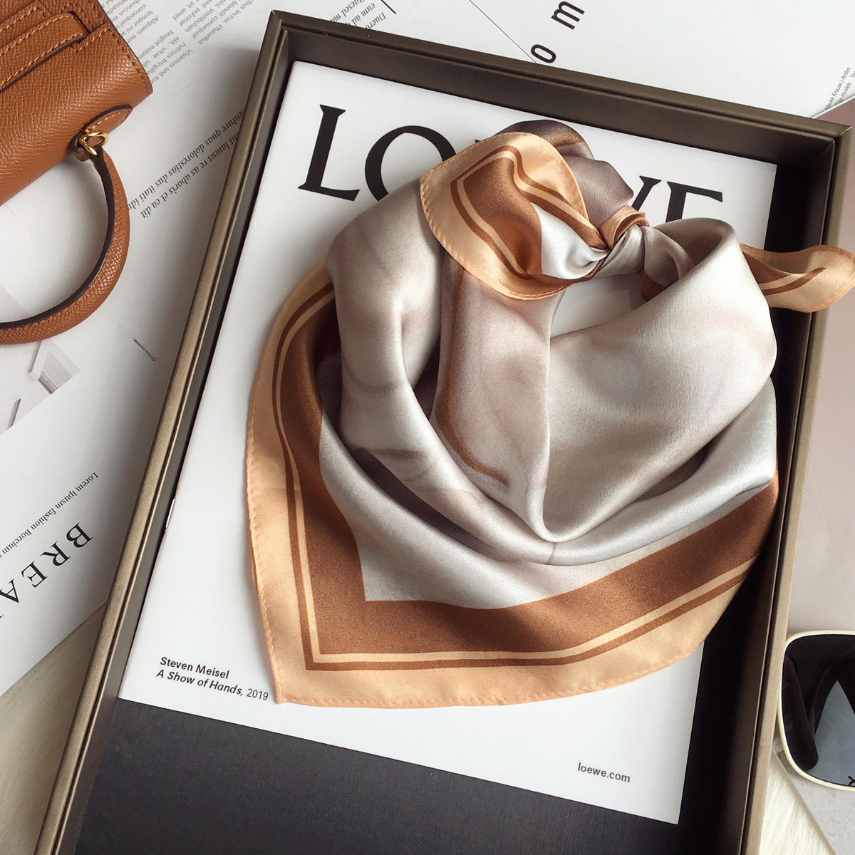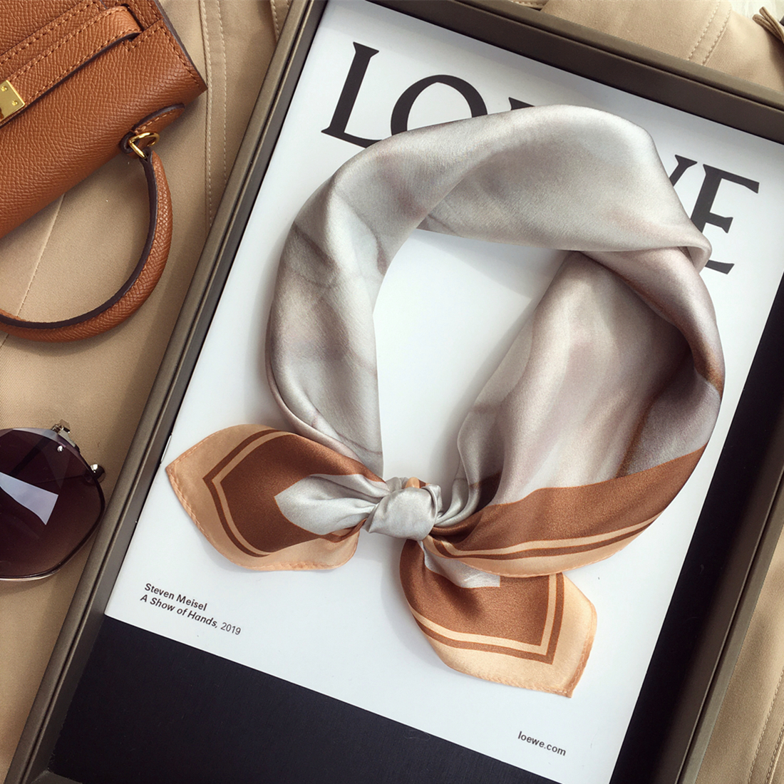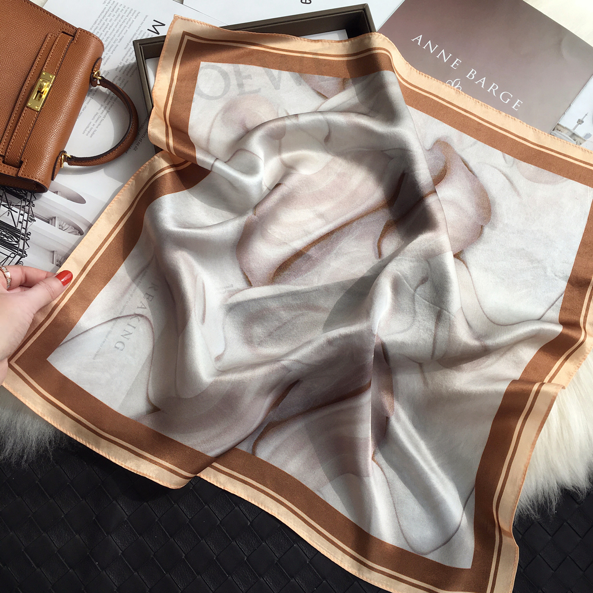 Чай с молоком, шелковый носовой платок, универсальный шарф, шелковое украшение для ногтей, шейный платок, Южная Корея