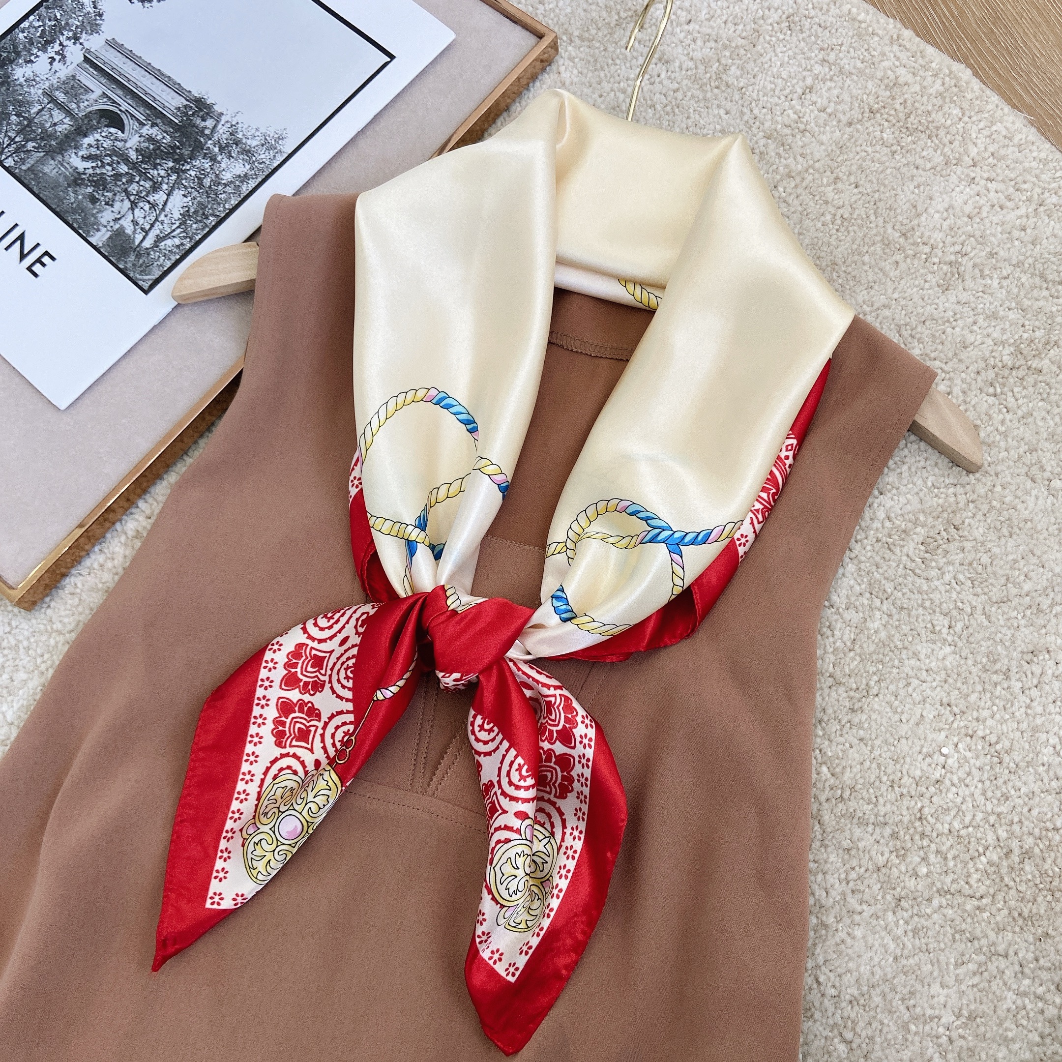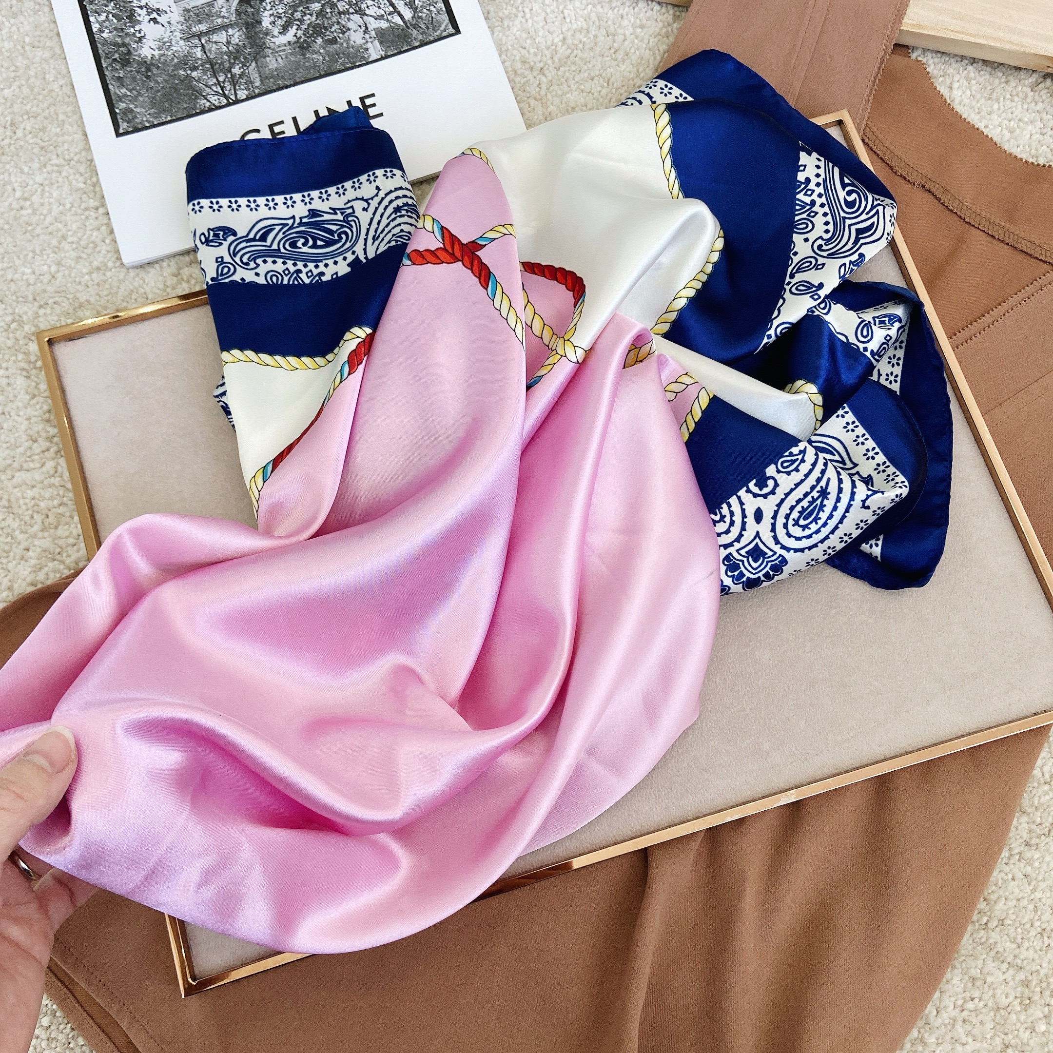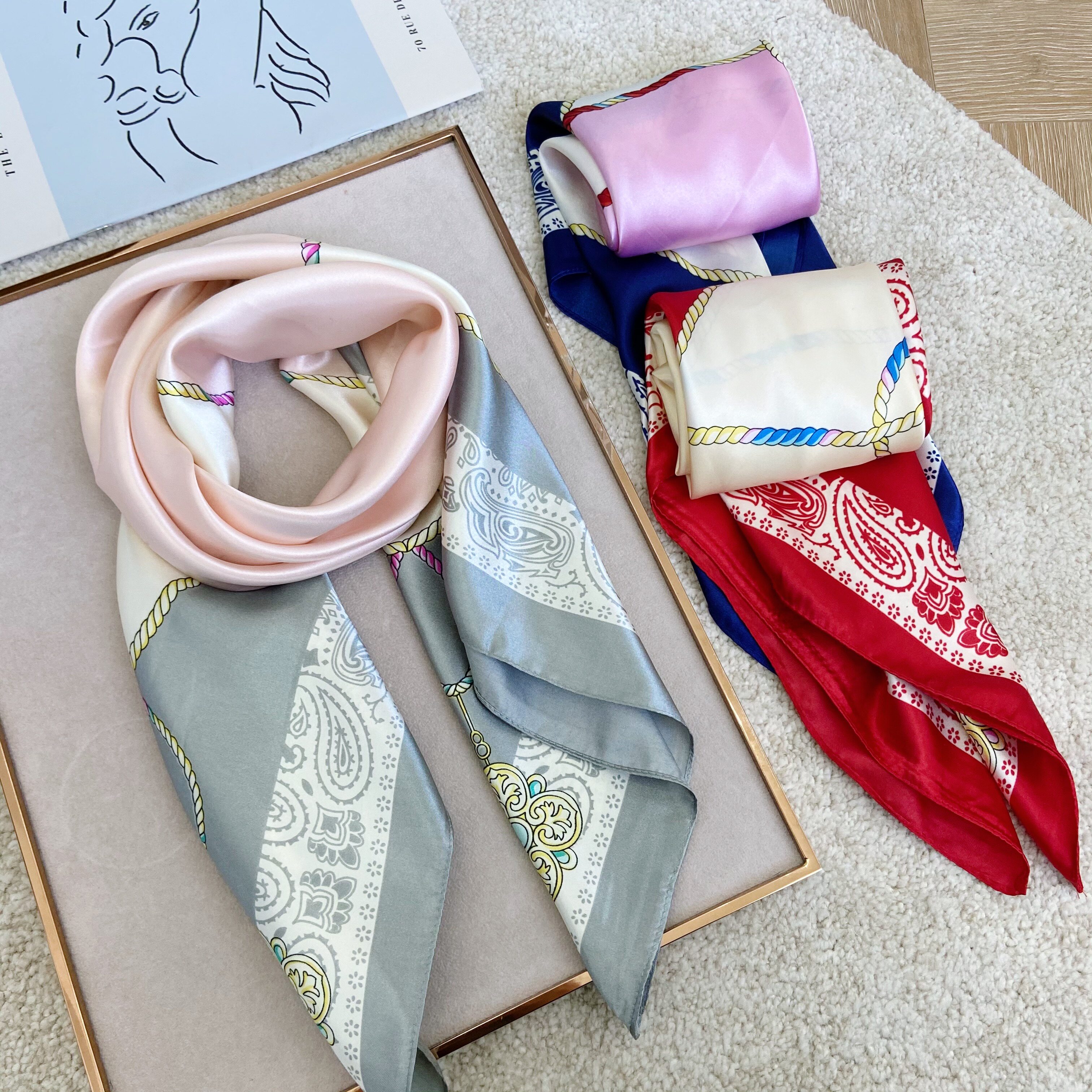 Шелковистый шарф, осенний костюм, шейный платок, зимняя накидка