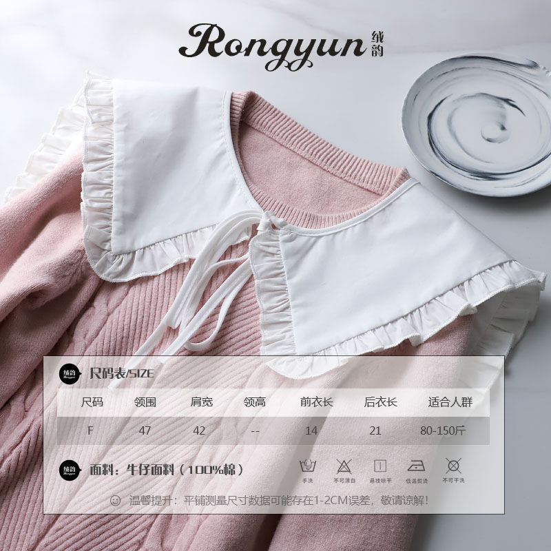 绒韵 Хлопковая осенняя накидка, фальшивый воротник, платье, футболка, декор, в корейском стиле