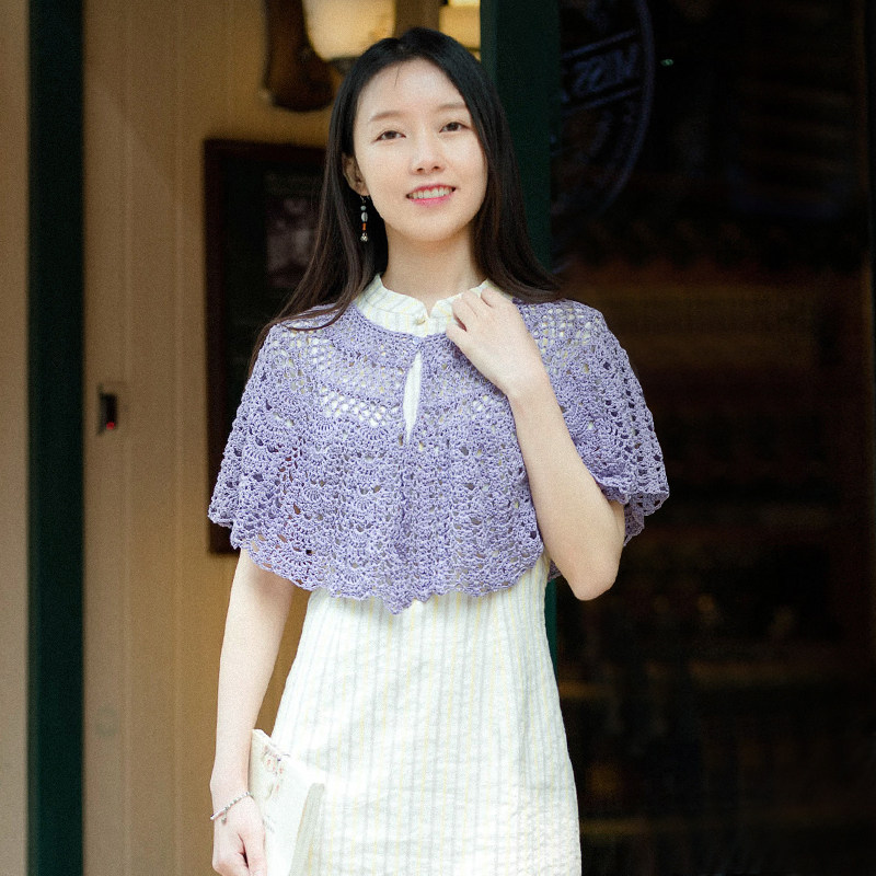 [Pinglang yi] Ретро и арт -крюк вязаный мягкий полый круговой шаль в прошлом и сегодняшний летний ретро и вязаный крючок Art Hook