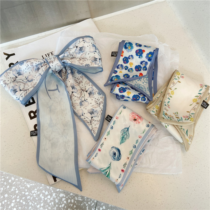 Синяя ретро сумка, упаковка, универсальная лента, повязка на голову, в цветочек, французский стиль