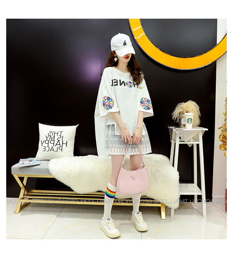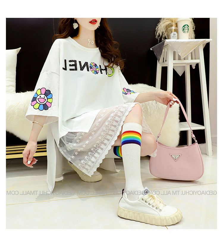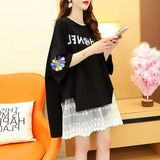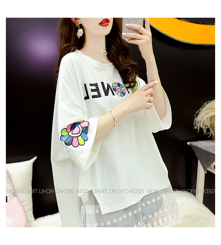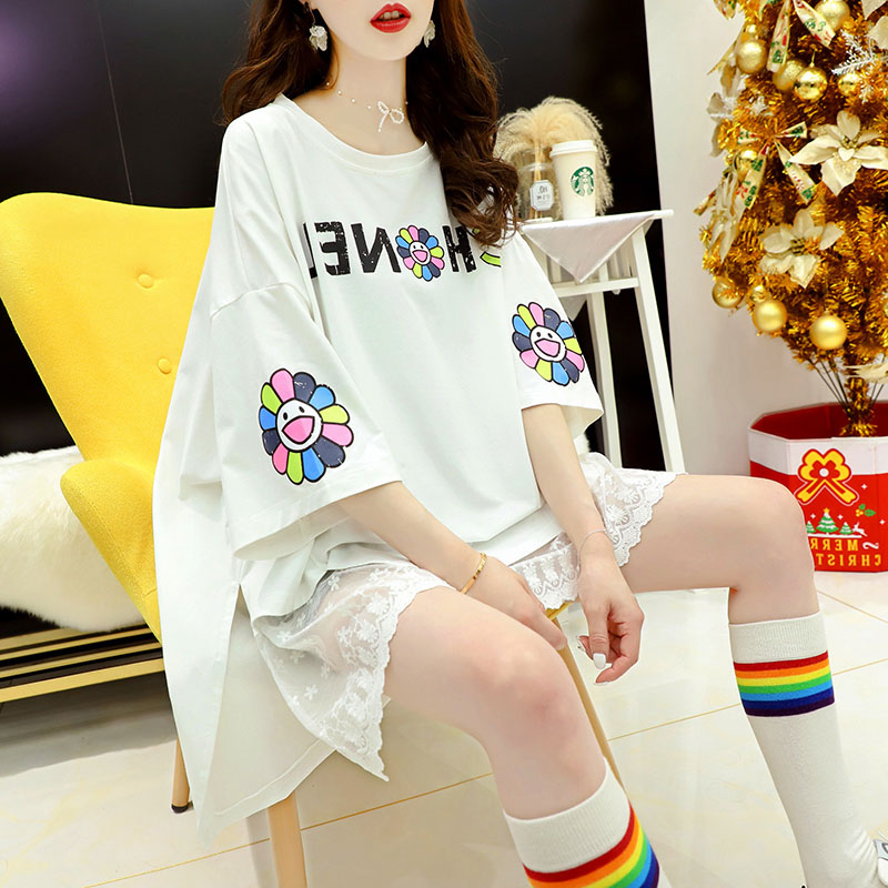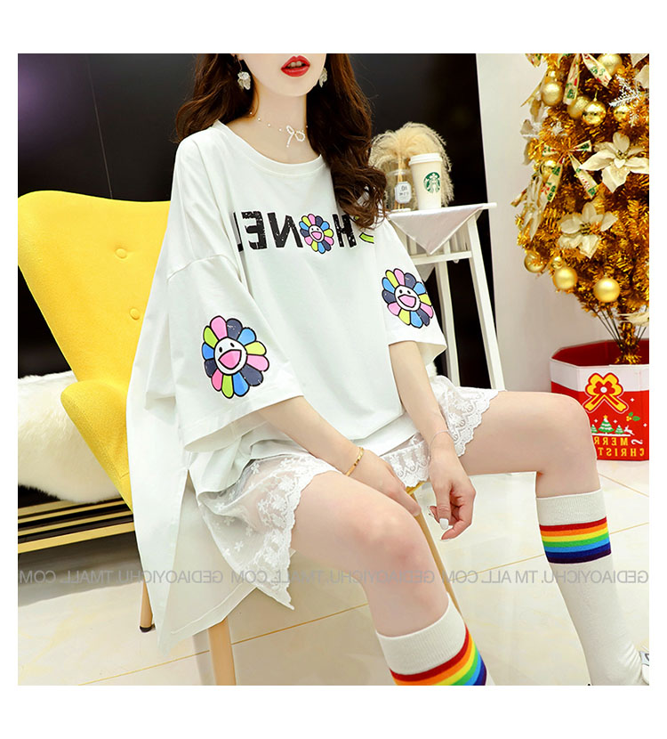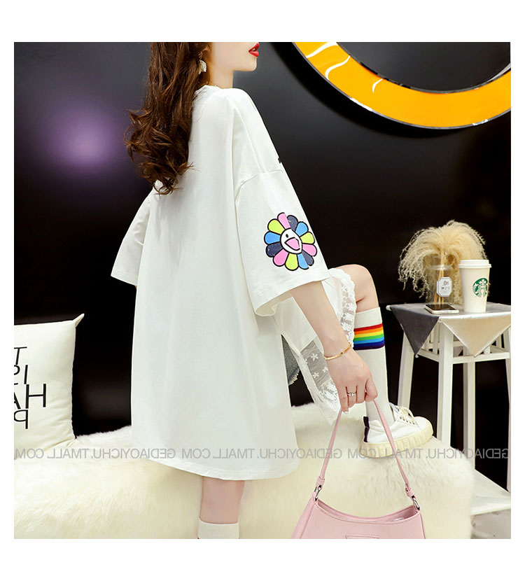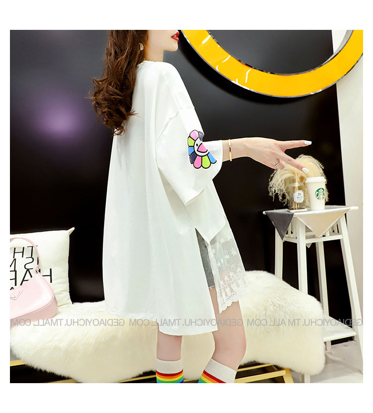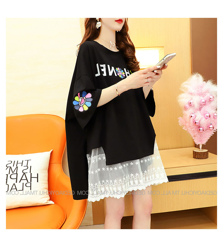 Кружевная длинная летняя дизайнерская футболка с коротким рукавом, средней длины, свободный крой, тренд сезона, большой размер