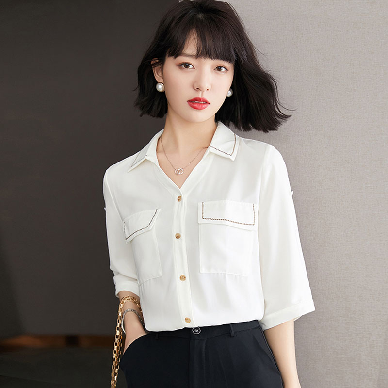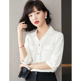 Белая шелковая ретро дизайнерская шифоновая рубашка, французский ретро стиль, тренд сезона, оверсайз