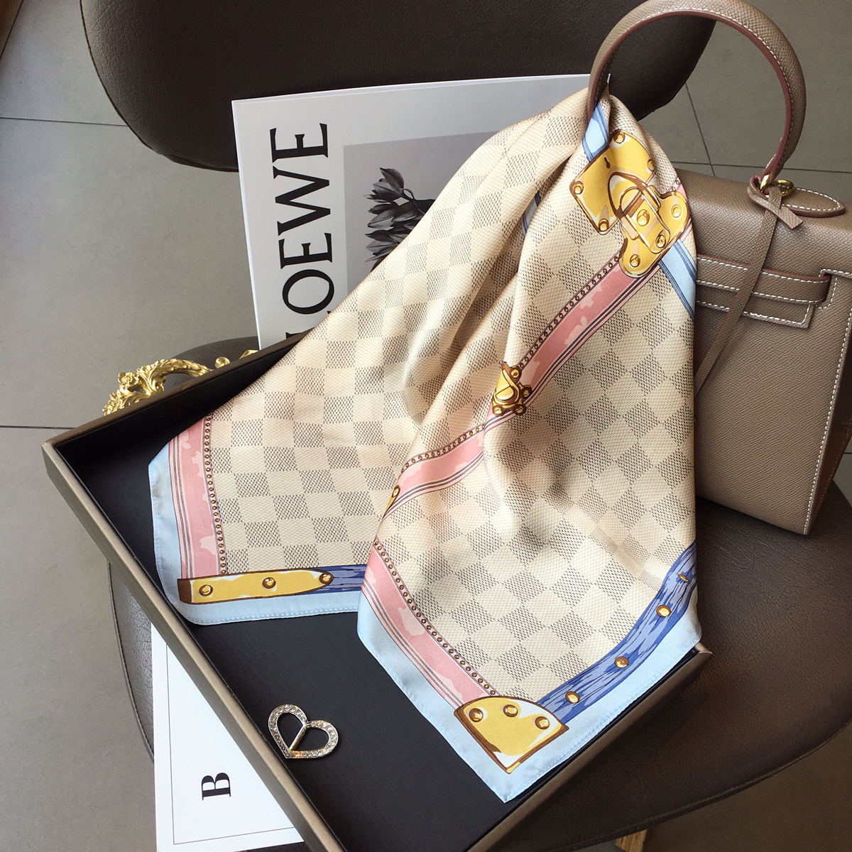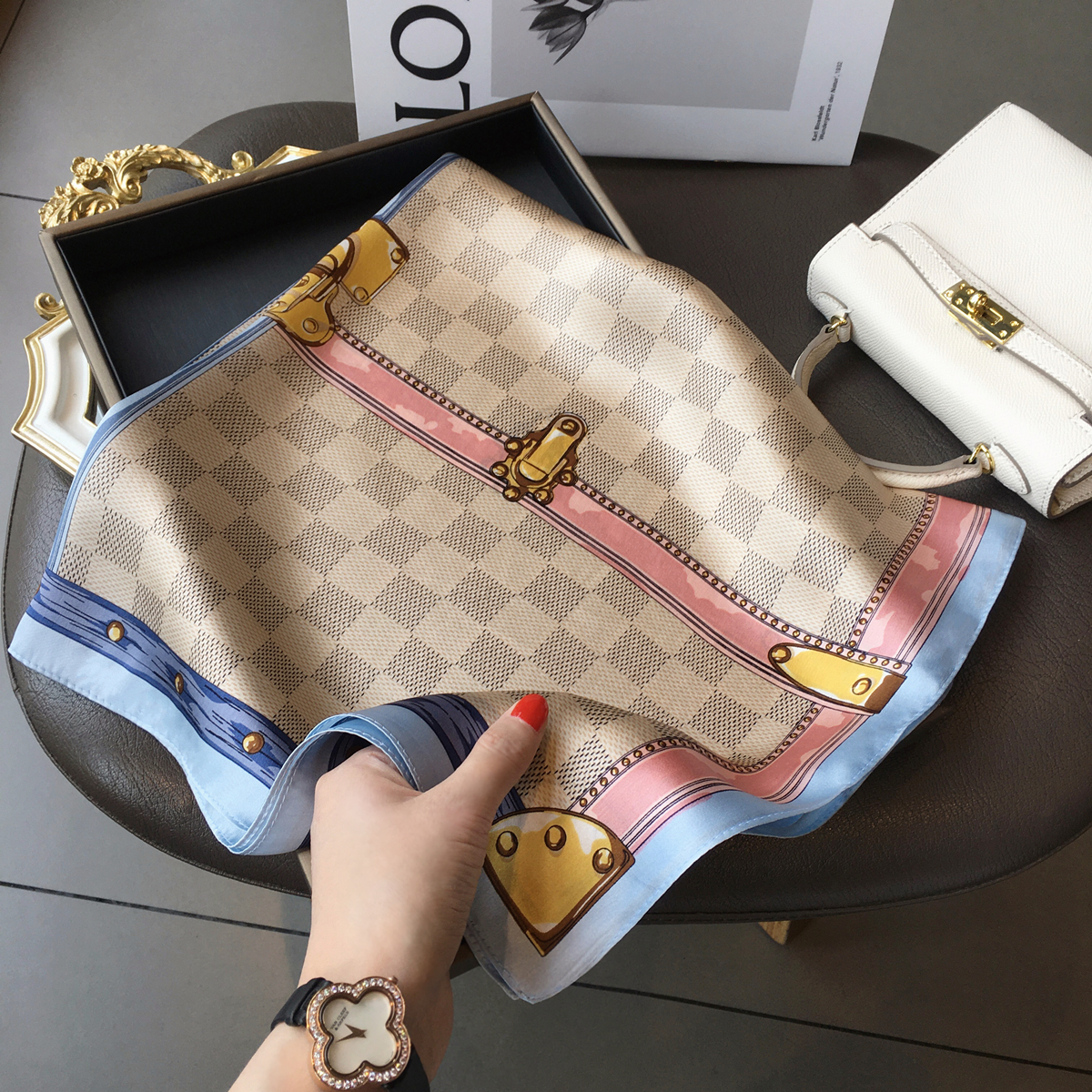 Шелковые шахматы, шелковый шарф, шейный платок, накидка, в корейском стиле, 70см