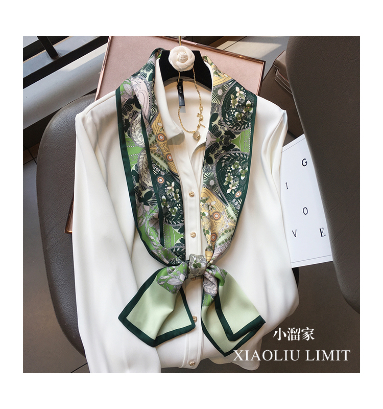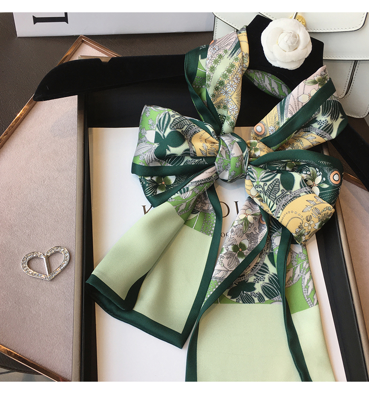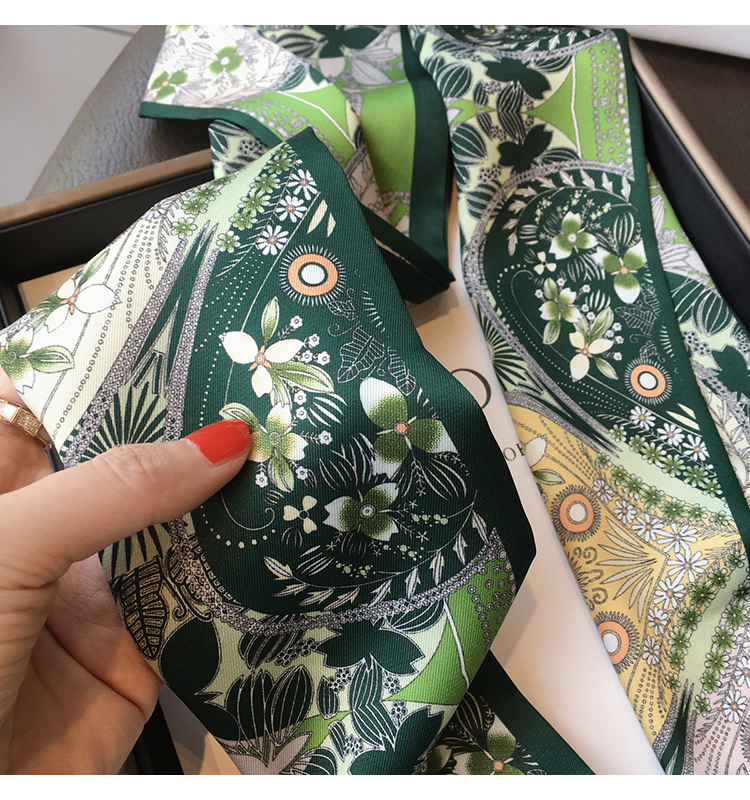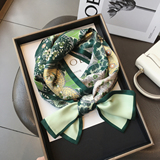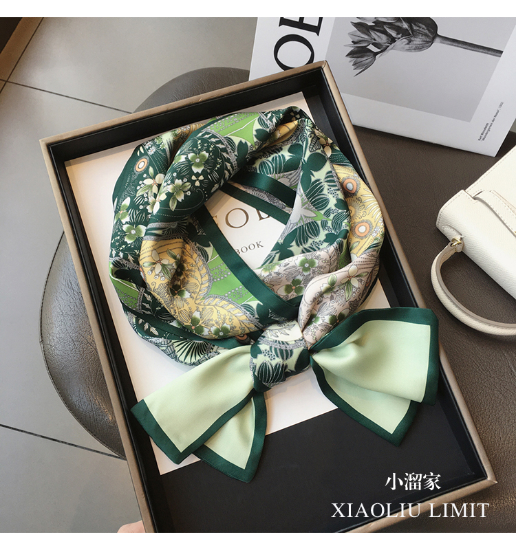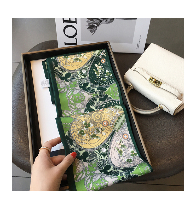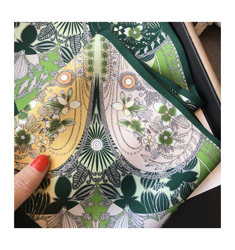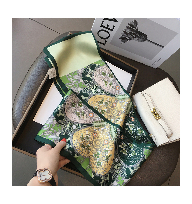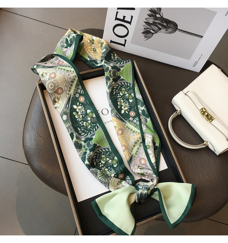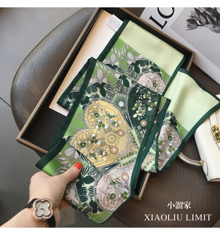 Универсальный зеленый шелковый шейный платок, сумка, шарф