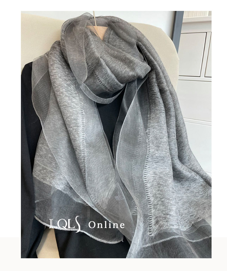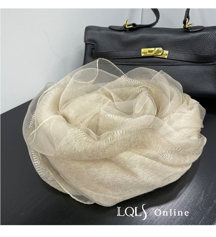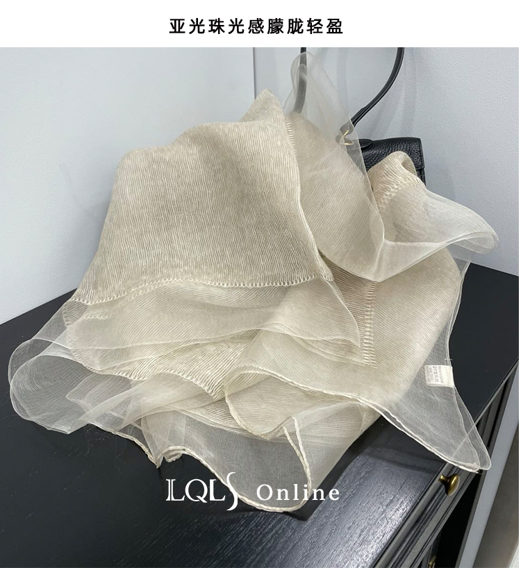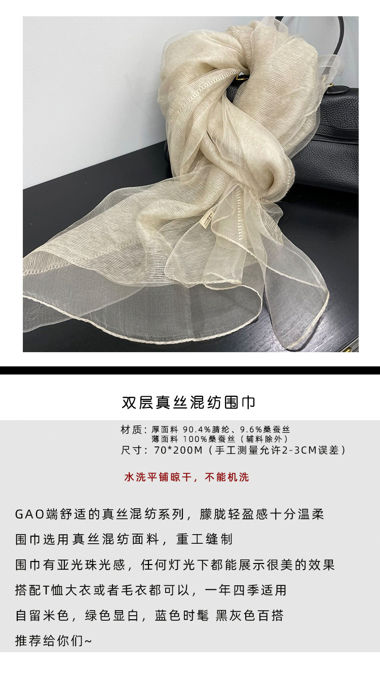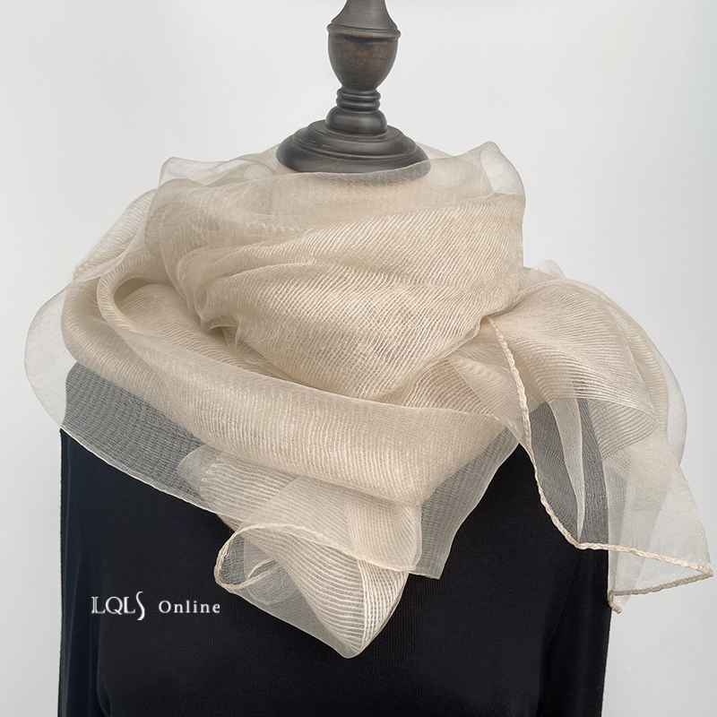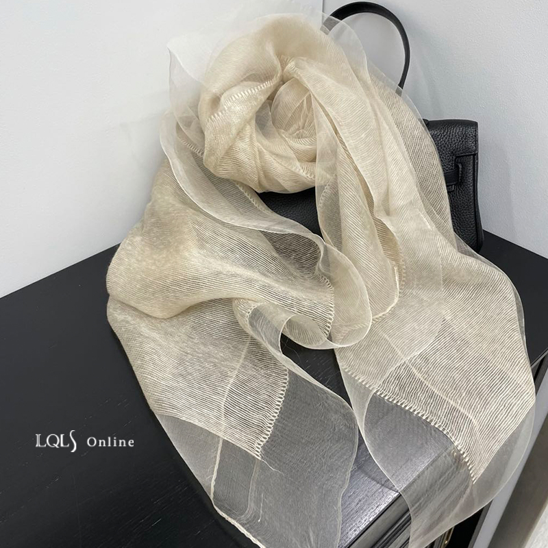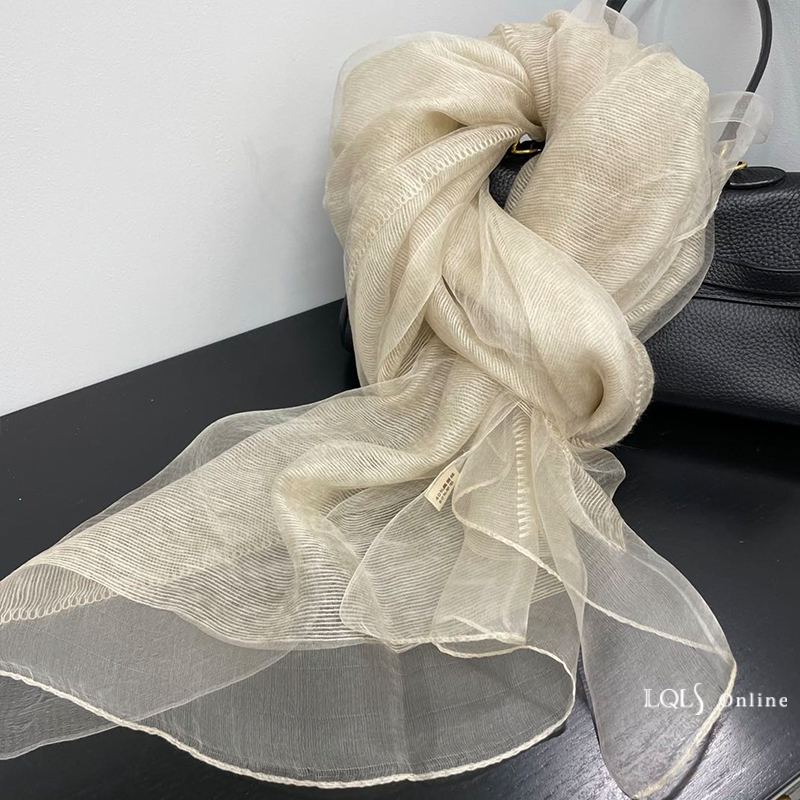Тонкий шелковый бежевый шарф, осенняя модная шелковая накидка