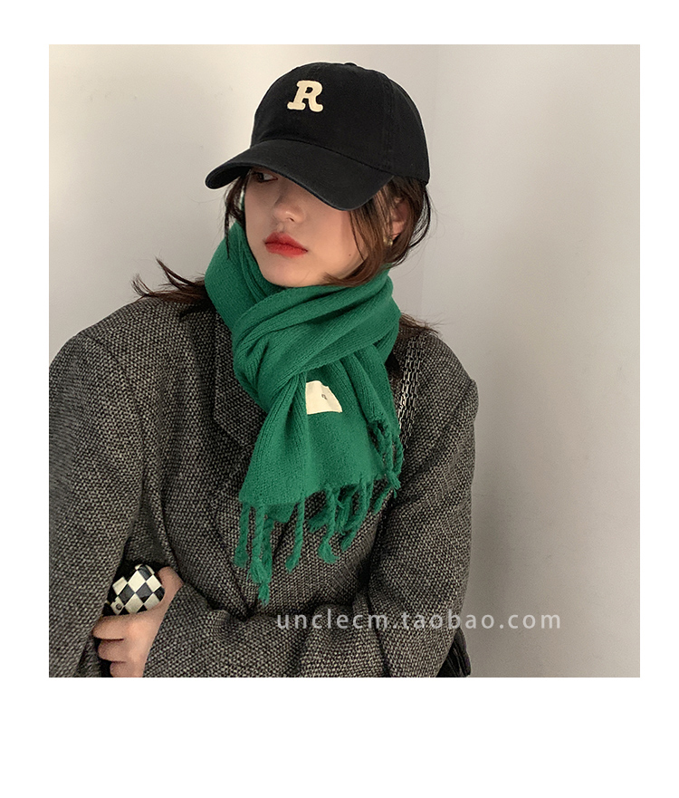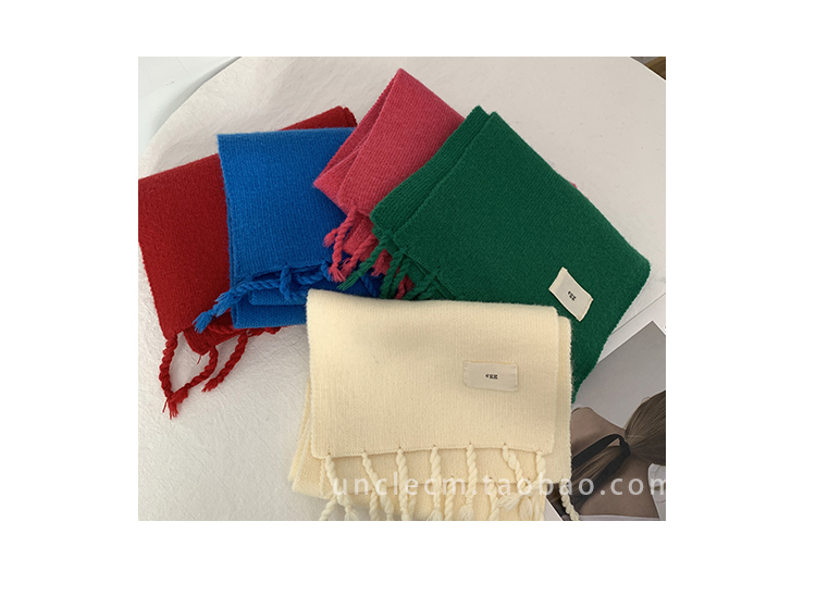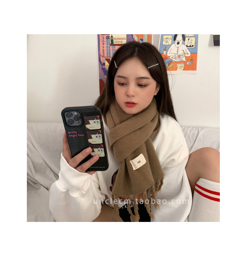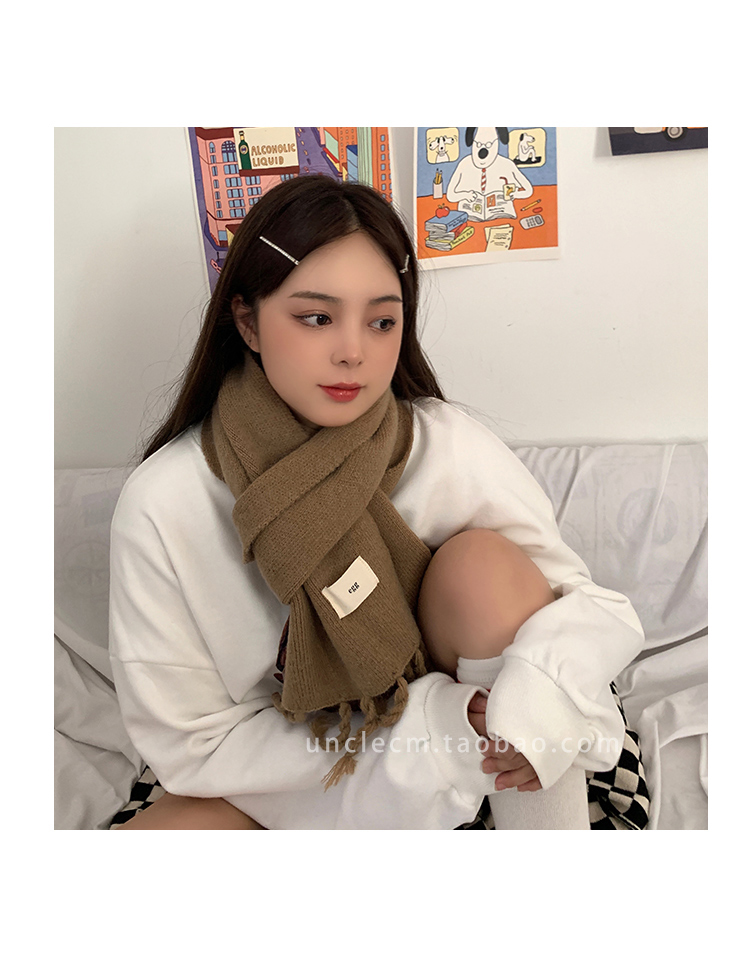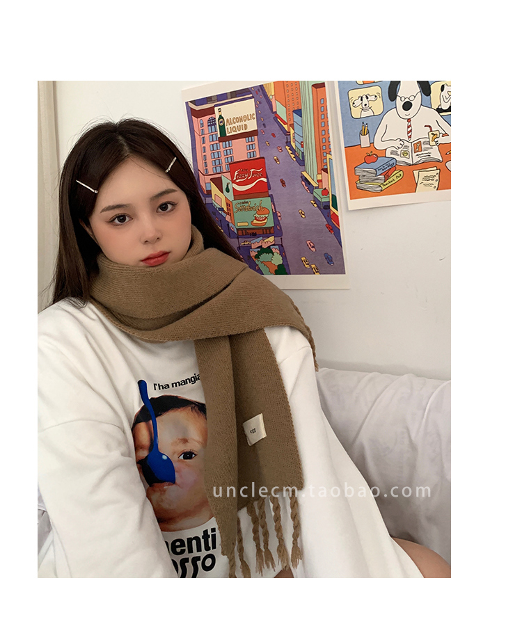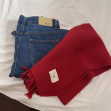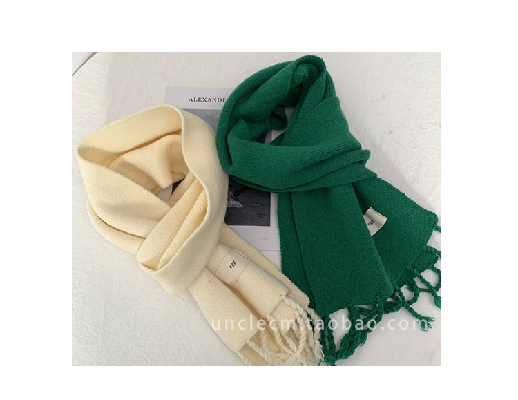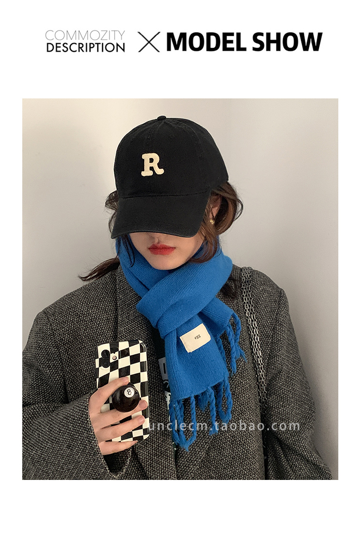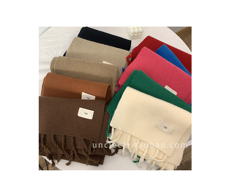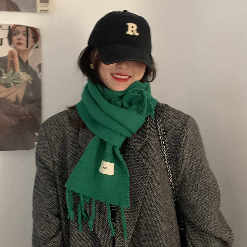 Трикотажный демисезонный утепленный универсальный синий шарф с кисточками, в корейском стиле