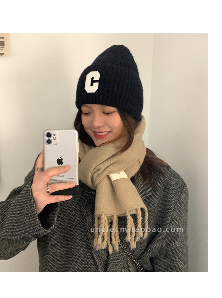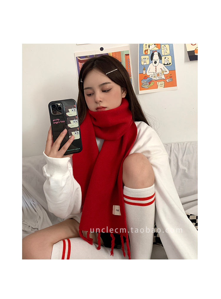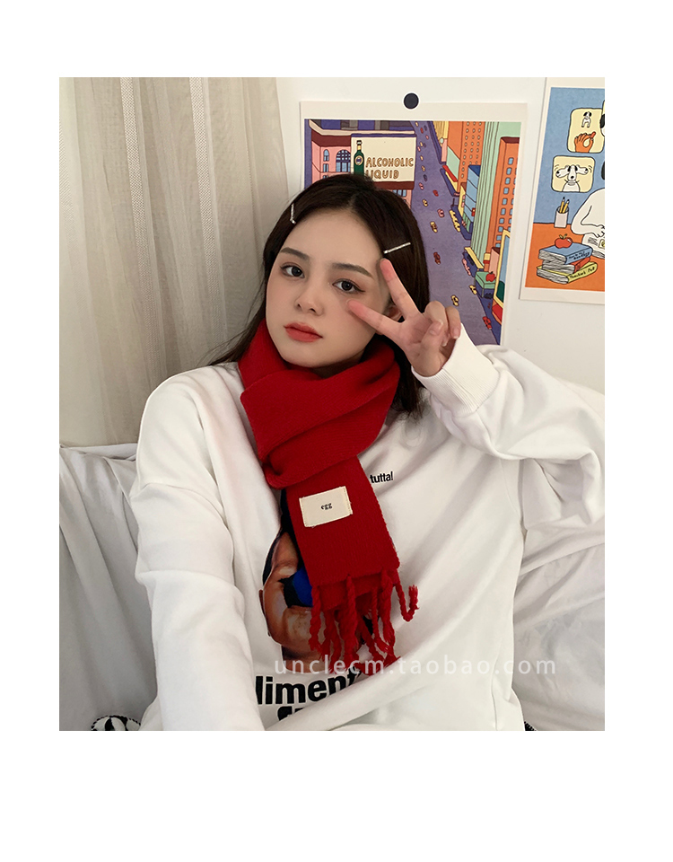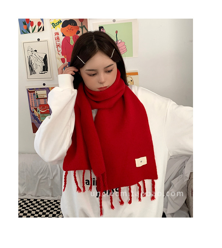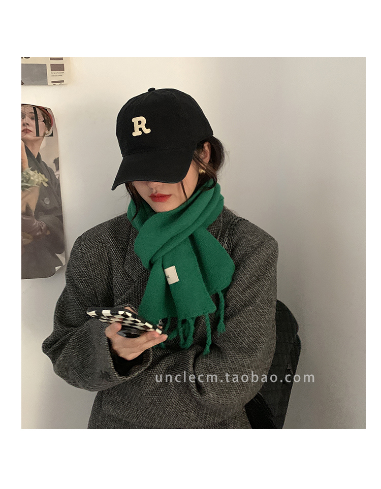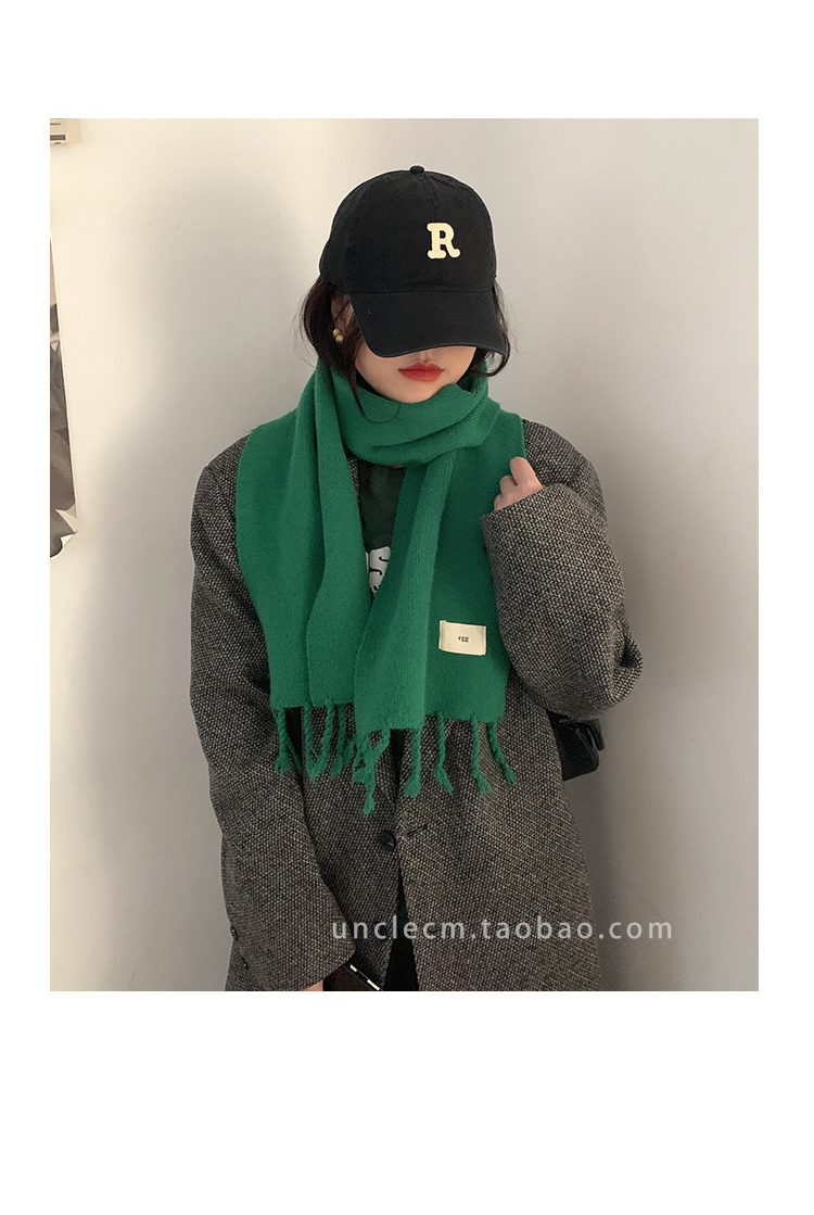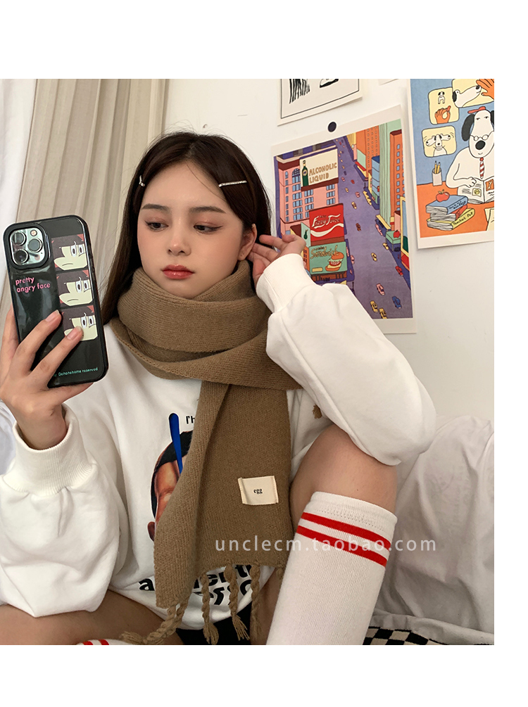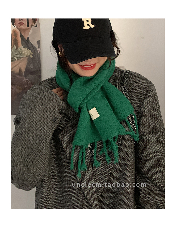 Трикотажный демисезонный утепленный универсальный синий шарф с кисточками, в корейском стиле